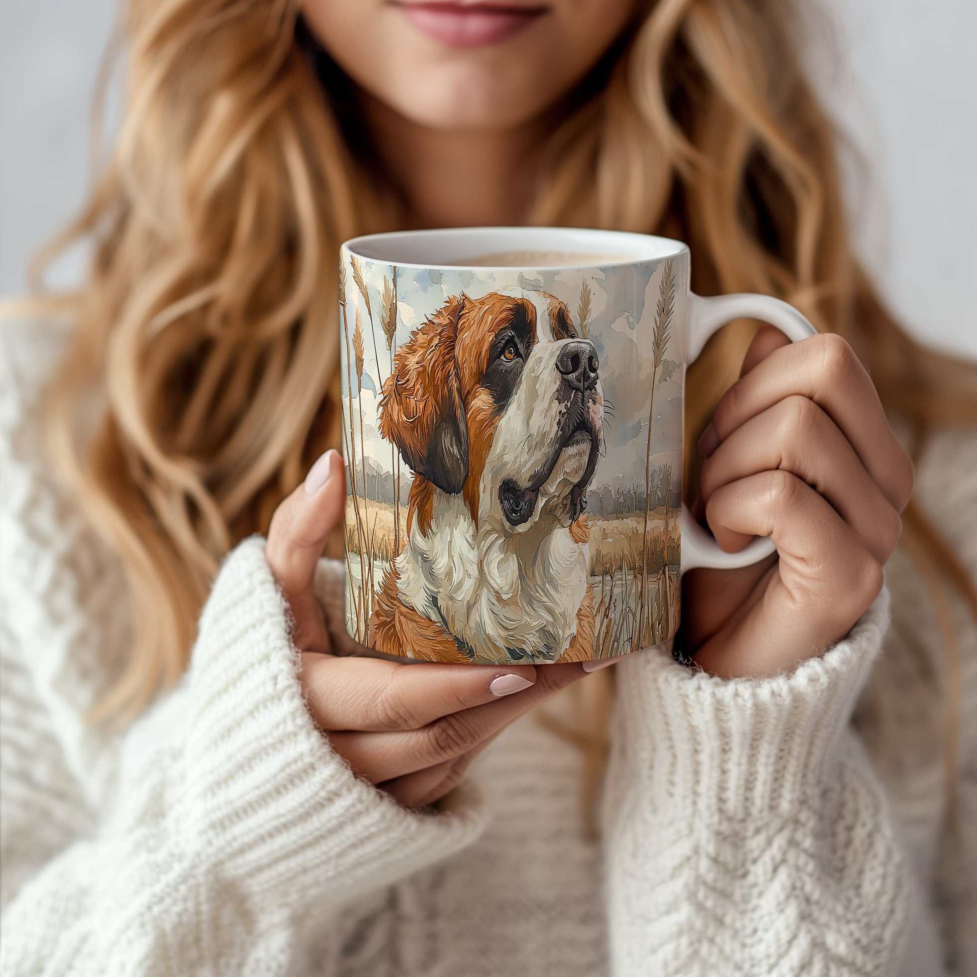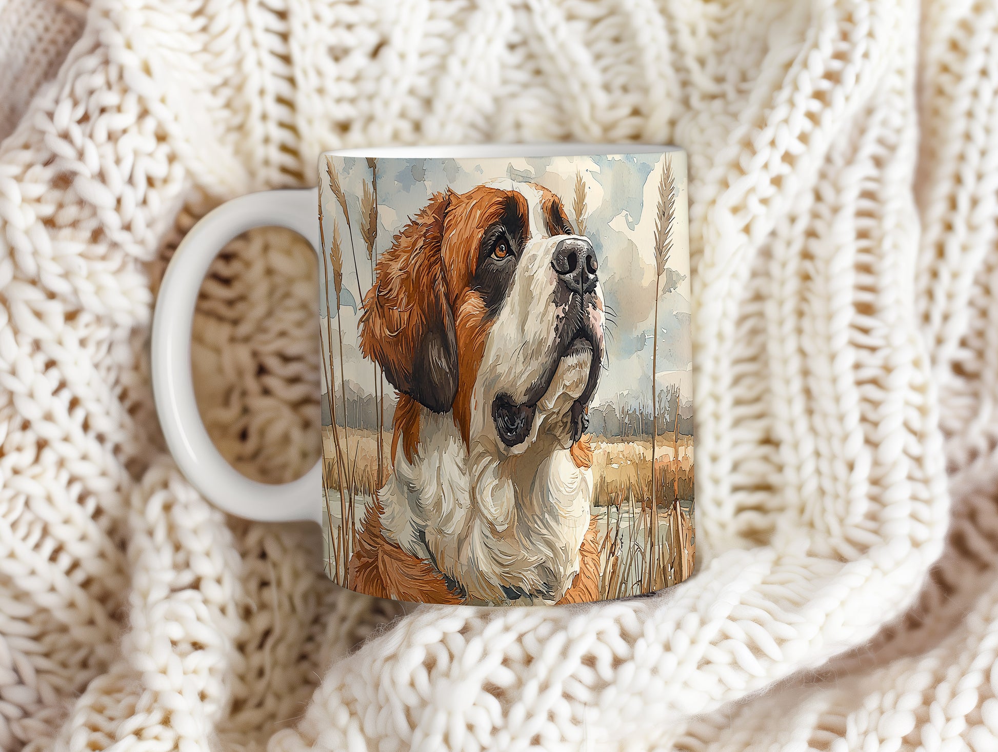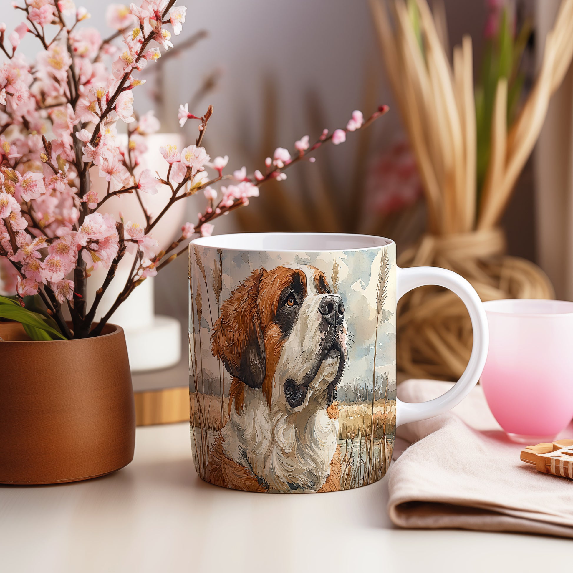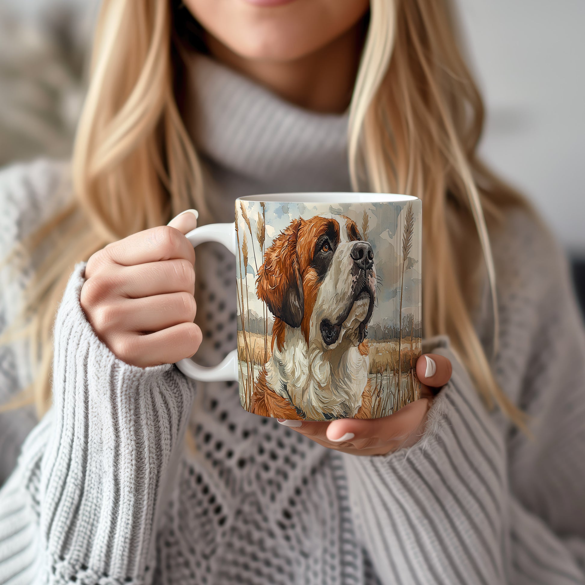Tento keramický hrnek s realistickým motivem svatobernardského psa potěší každého milovníka psů a domácí pohody. Je skvělým dárkem pro přátele nebo rodinu, kteří ocení útulnost a lásku ke zvířatům. Materiál: keramika. Objem: 330 ml. Vhodné do myčky i mikrovlnky. Používáním tohoto hrnku si užijete každodenní chvíle s oblíbeným nápojem.