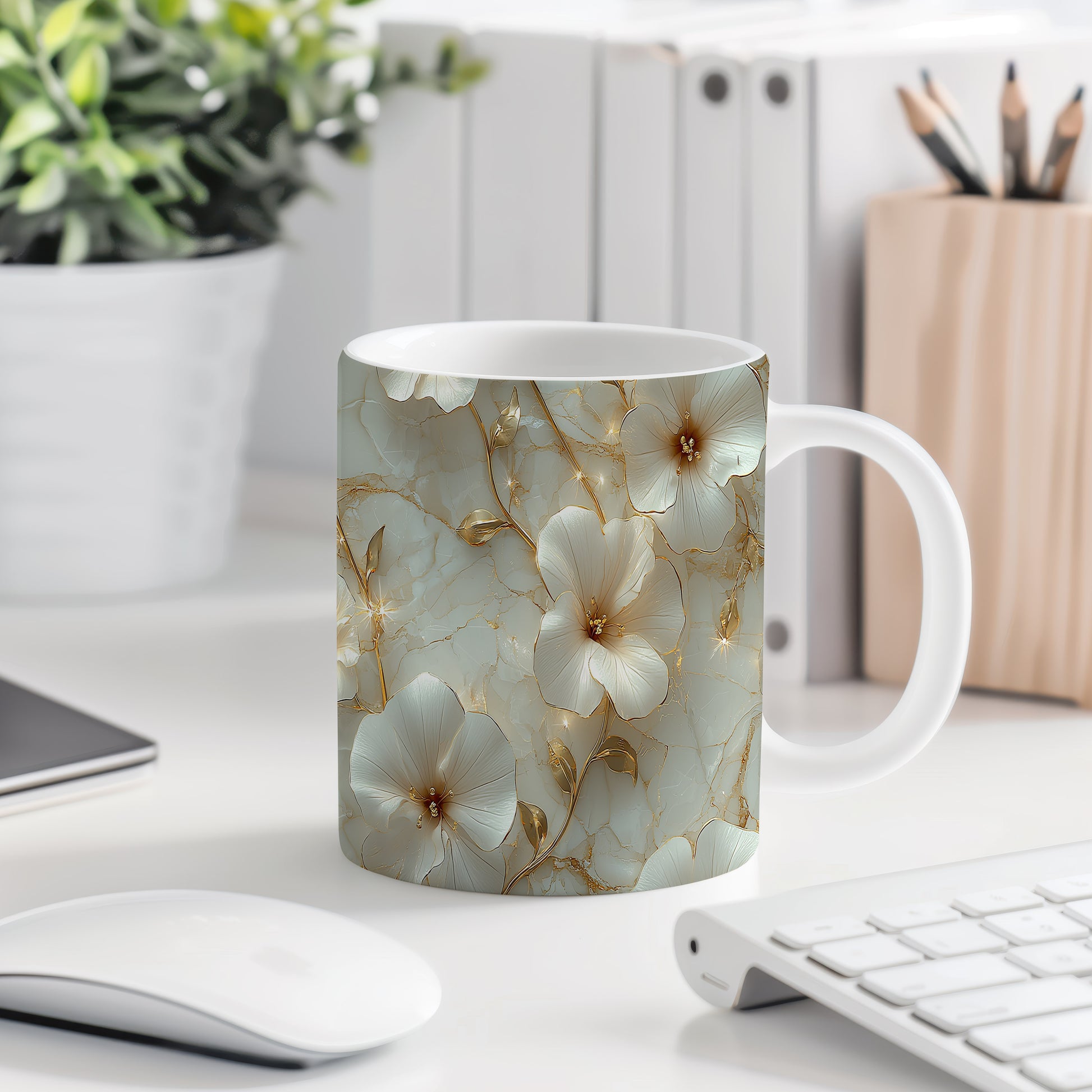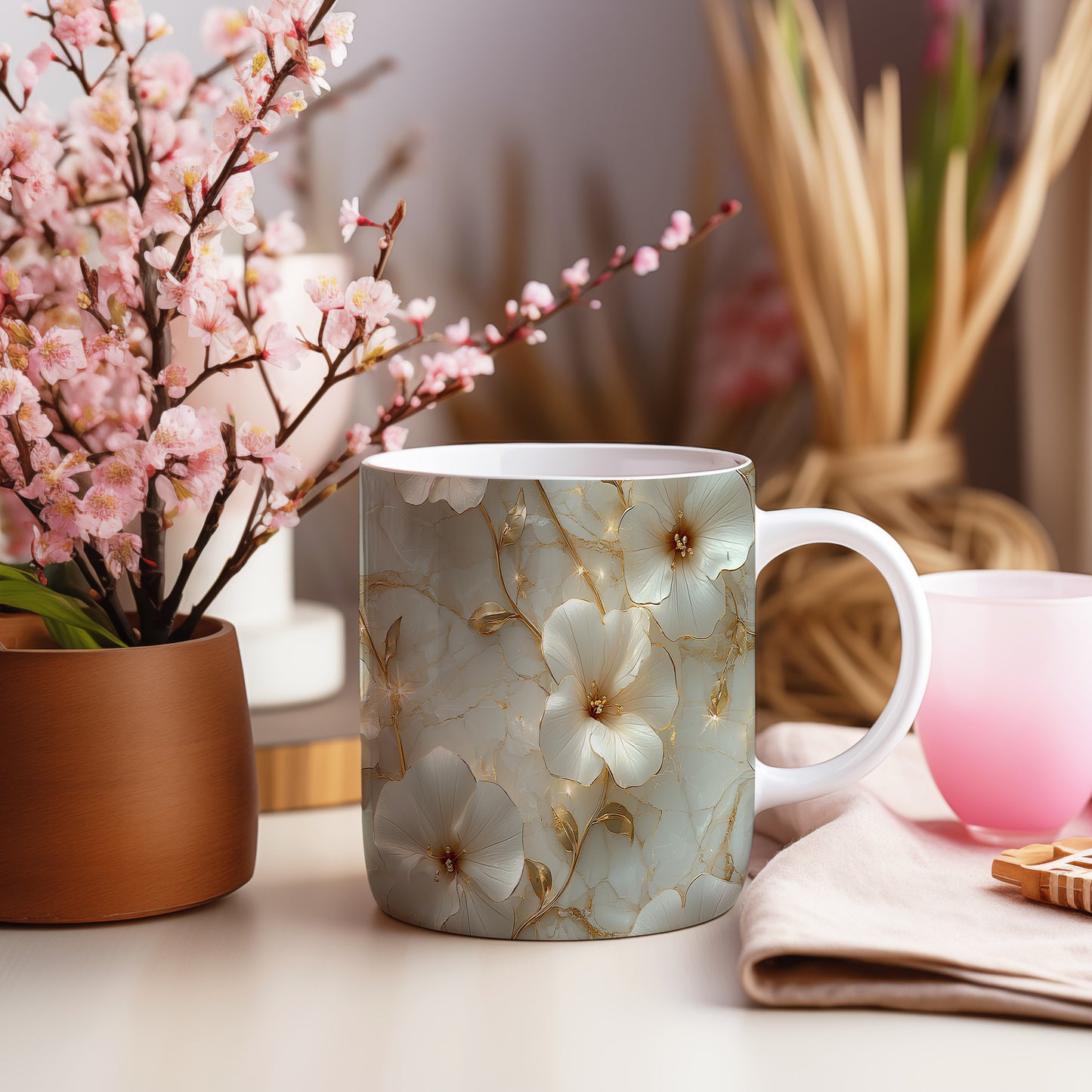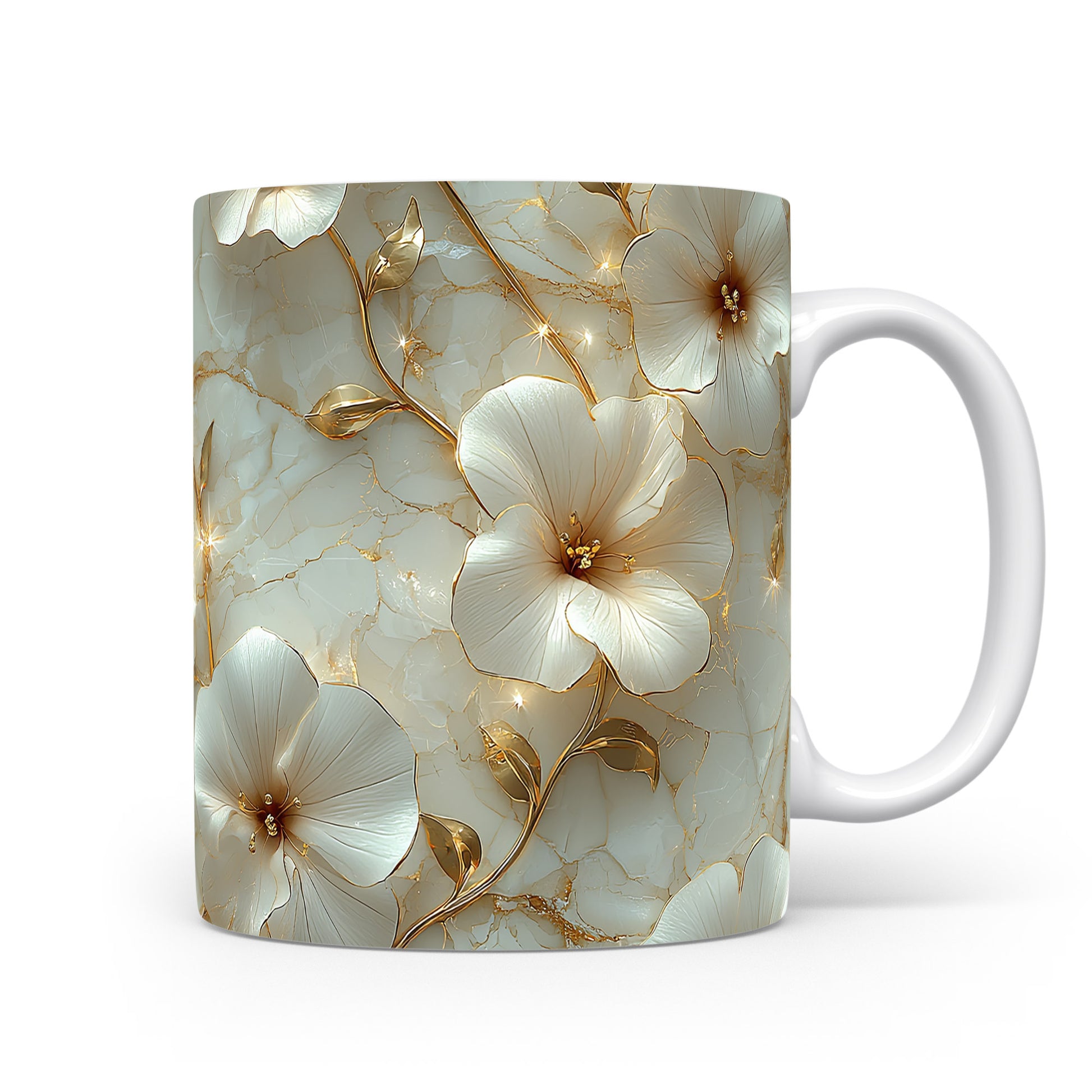 Tento keramický hrnek je zdoben jemnými květinami a elegantními zlatými detaily. Je ideální pro milovníky kávy a čaje, skvěle se hodí jako dárek pro blízké. Materiál: keramika. Objem: 330 ml. Vhodné do myčky i mikrovlnky. Díky svému designu přináší do každodenního pití radost a styl.