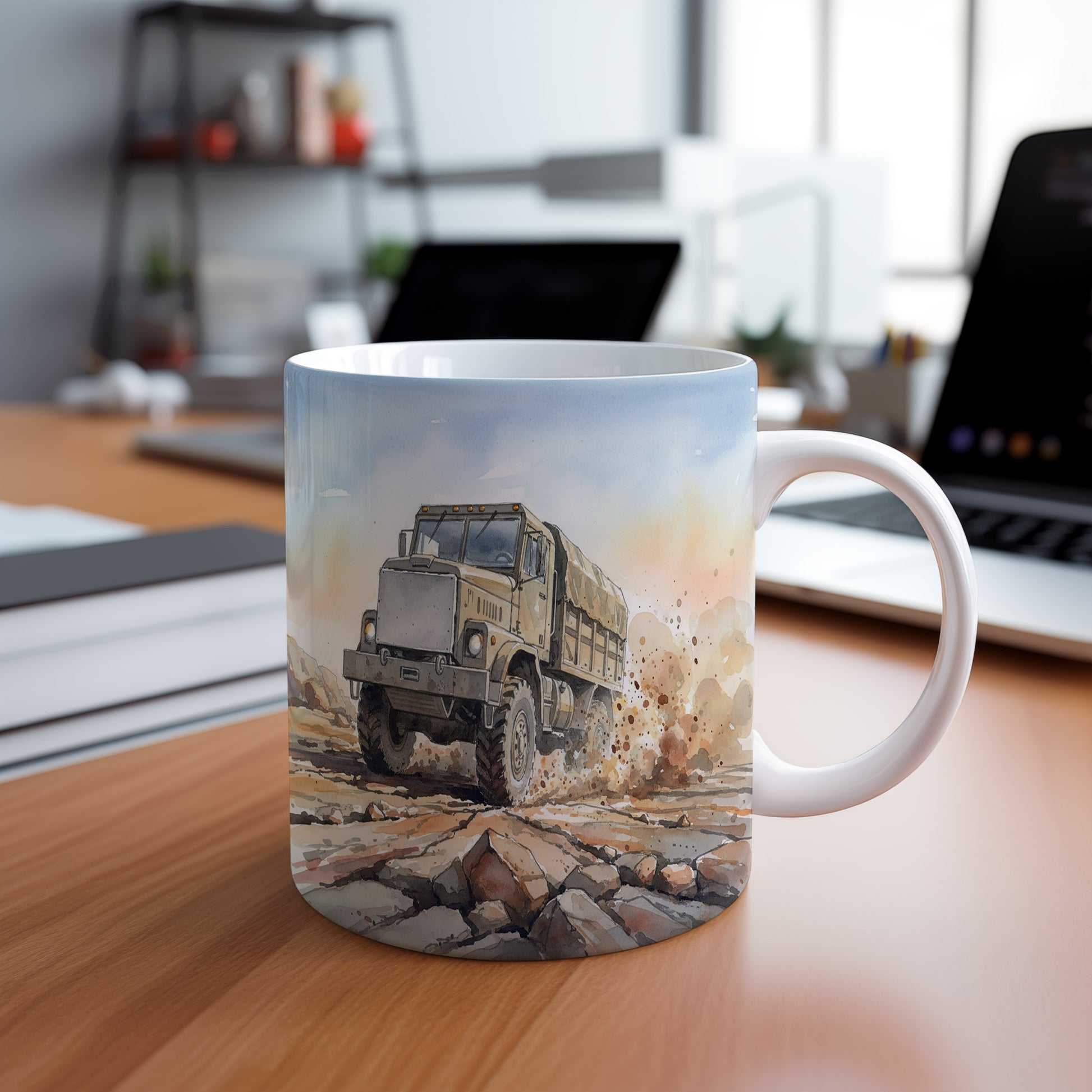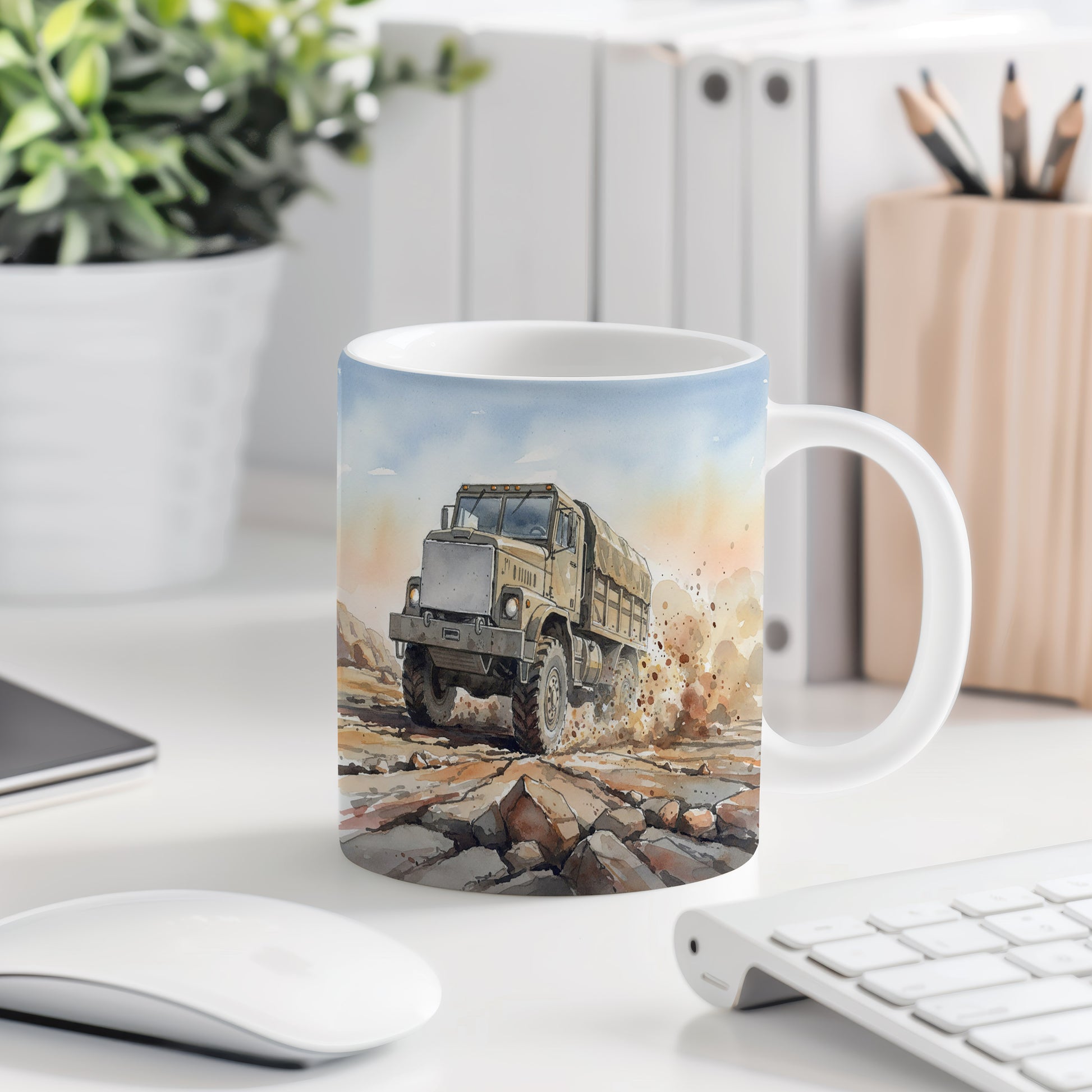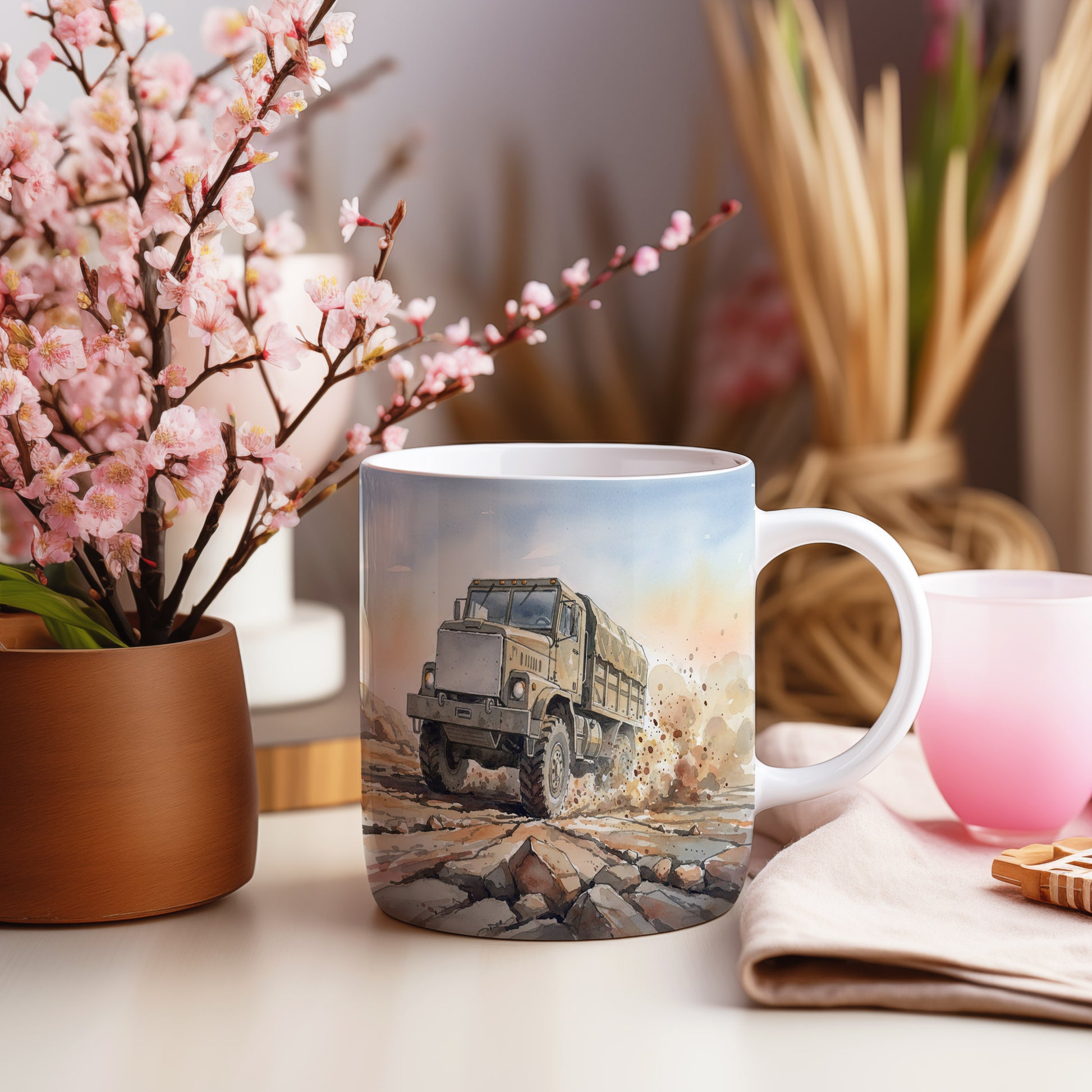 Objevte kouzlo dobrodružství s hrnkem, na kterém je akvarelový motiv náklaďáku projíždějícího kamenitou krajinou. Ideální pro milovníky silných strojů. Hrnek 330 ml – vhodný do myčky i mikrovlnky.