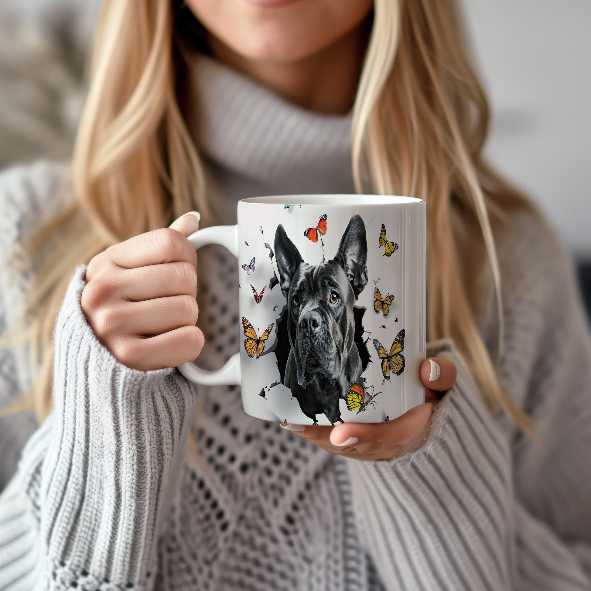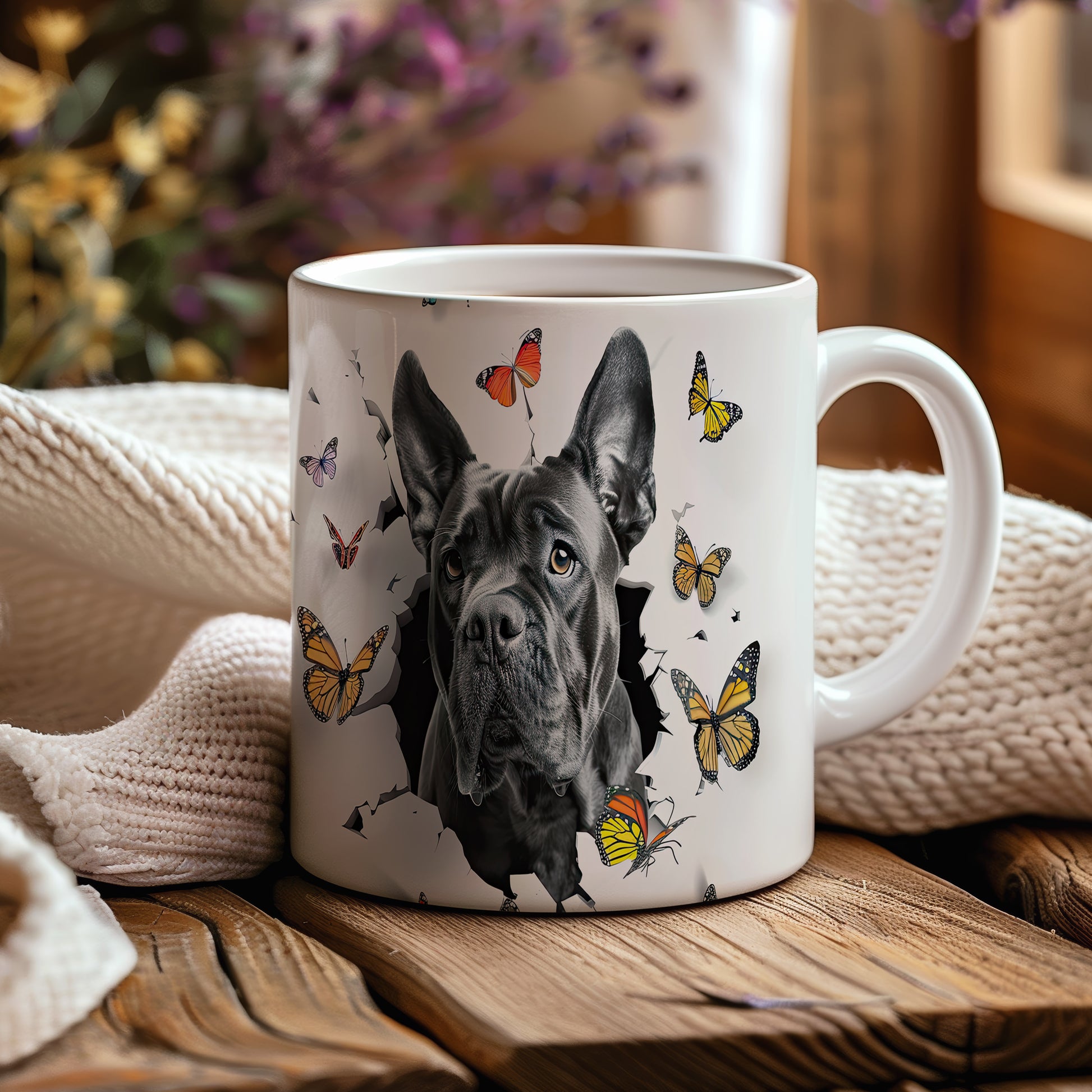 Tento hrnek s motivem psa a barevných motýlů přináší do vašeho dne radost a hravost. Je ideální pro milovníky zvířat a přírody, skvělý tip na dárek pro přátele nebo rodinu. Materiál: keramika. Objem: 330 ml. Vhodné do myčky i mikrovlnky. Užijte si kávu nebo čaj s tímto jedinečným designem, který vám vždy zlepší náladu.