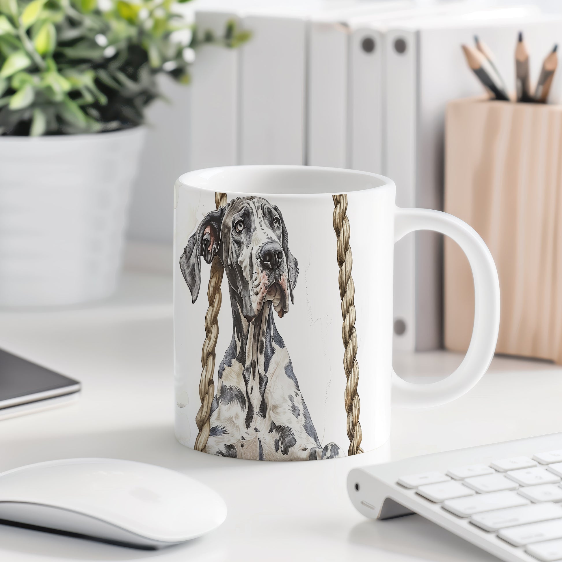 Hrnek s motivem velkého psa na houpačce je ideální pro milovníky čtyřnohých přátel. Tento hrnek potěší každého, kdo má rád psy, a skvěle se hodí jako dárek pro přátele nebo rodinu. Materiál: keramika. Objem: 330 ml. Vhodné do myčky i mikrovlnky. Používání tohoto hrnku přináší radost a pohodlí při každém doušku.