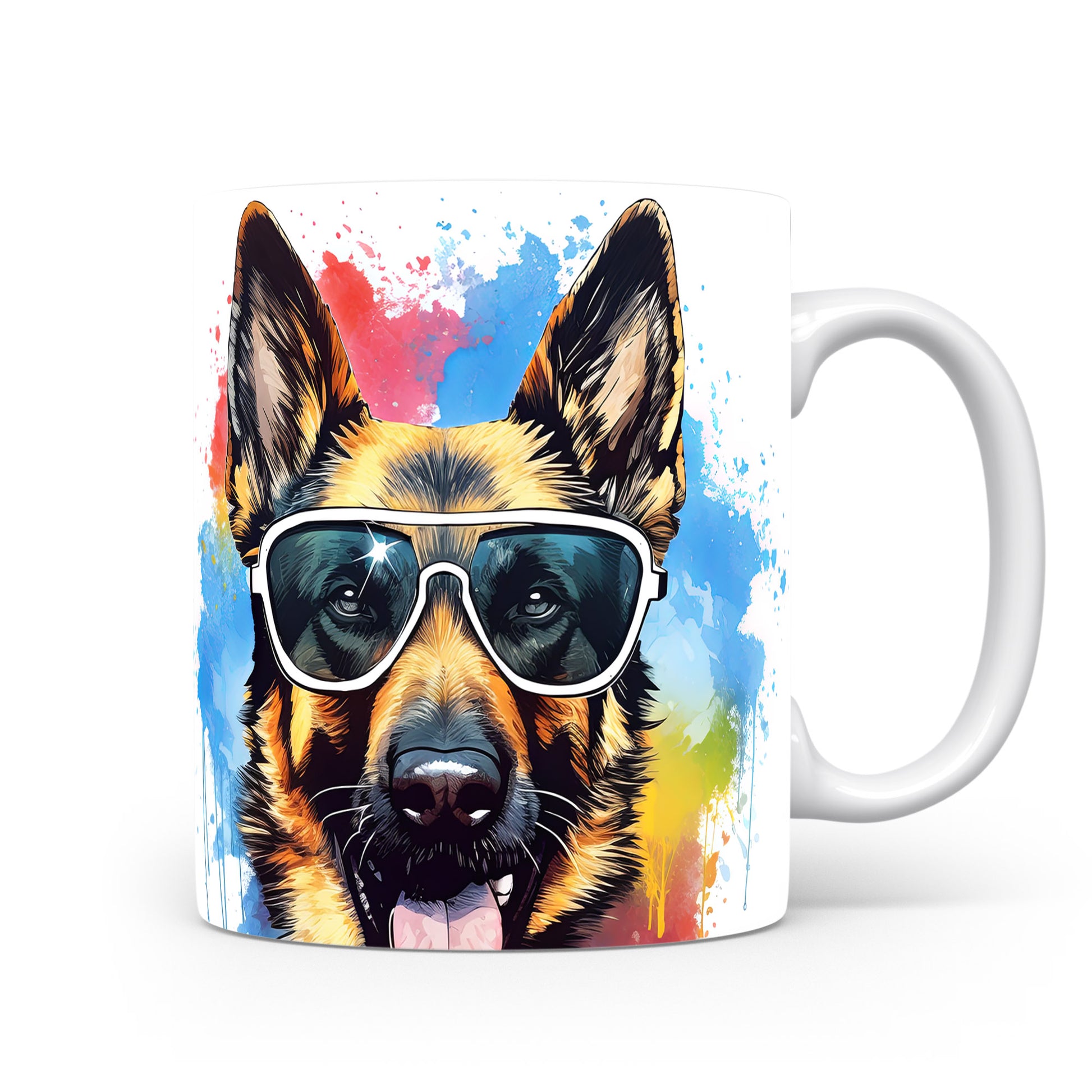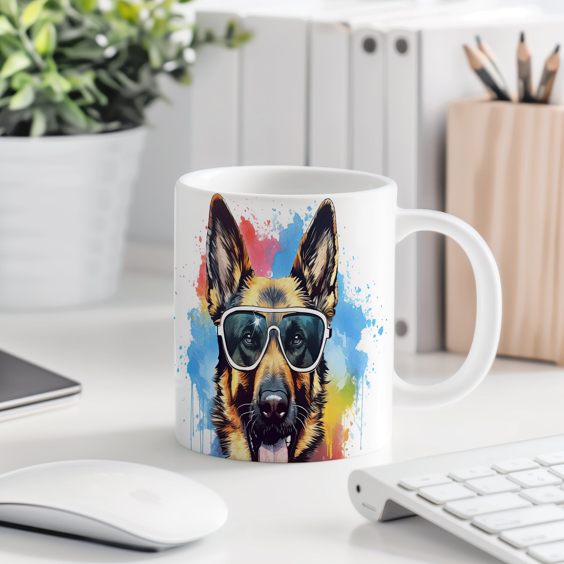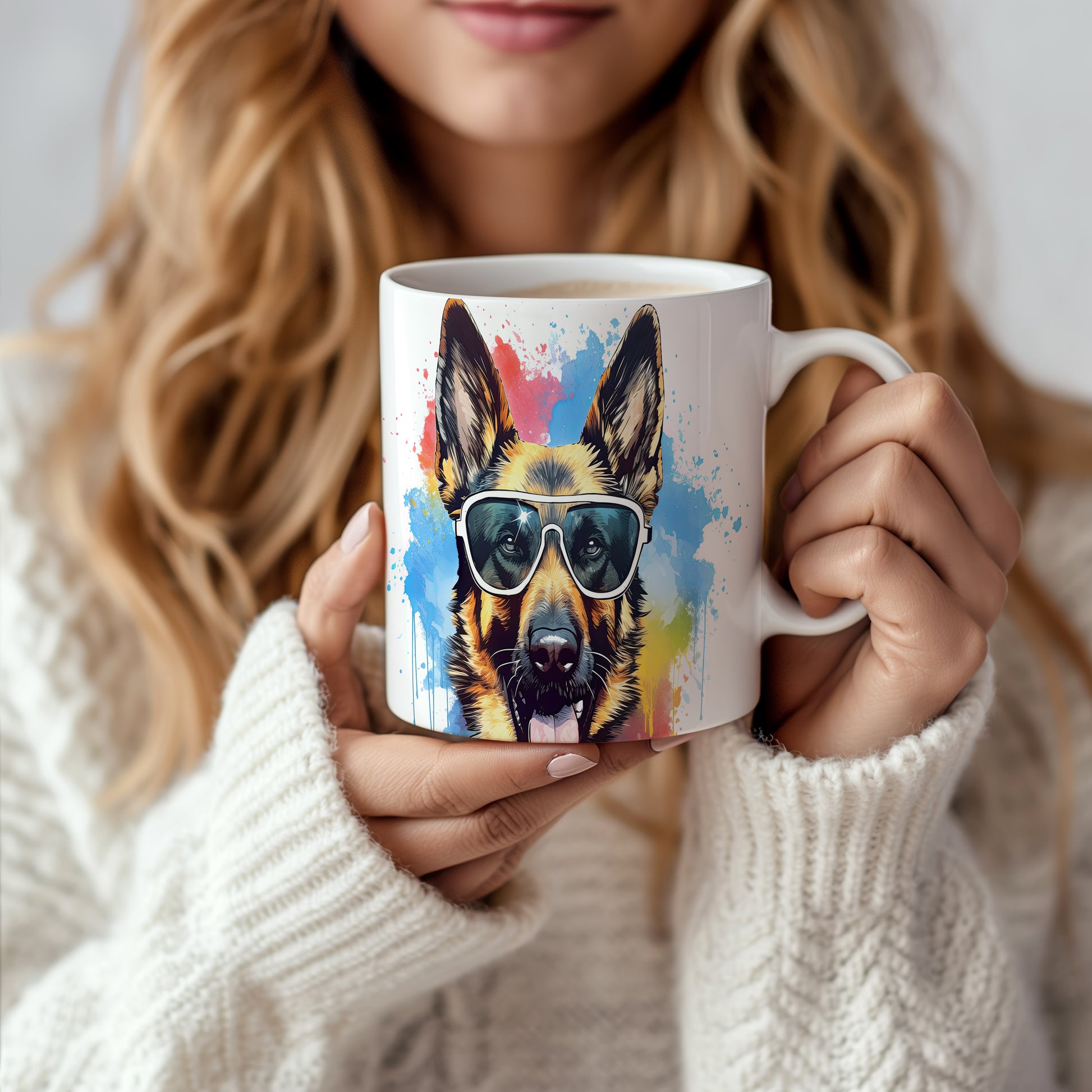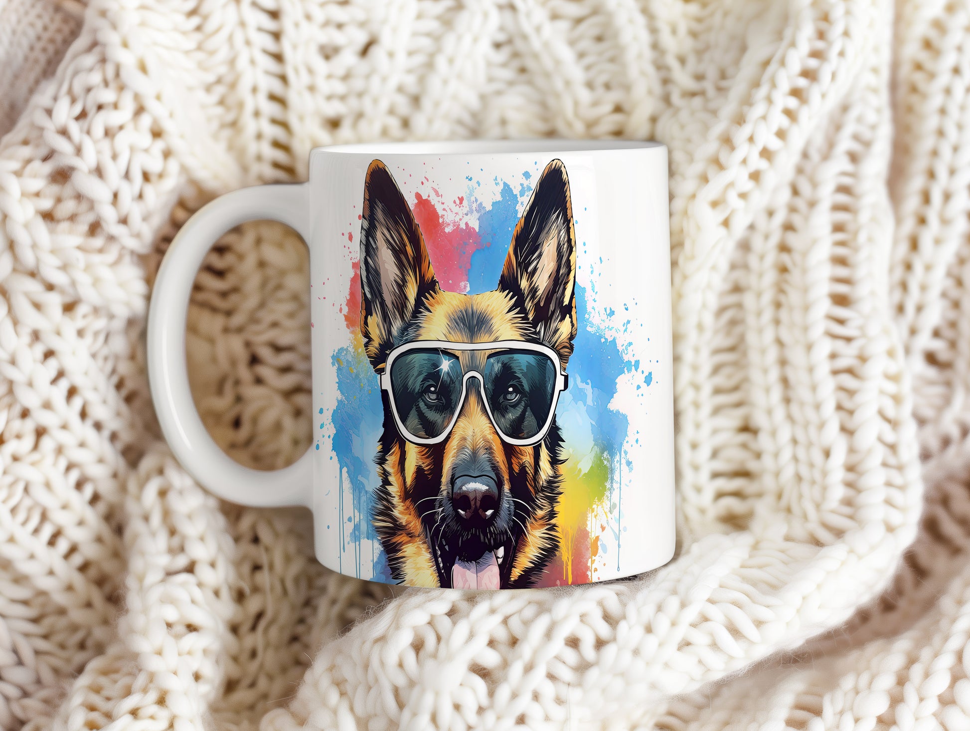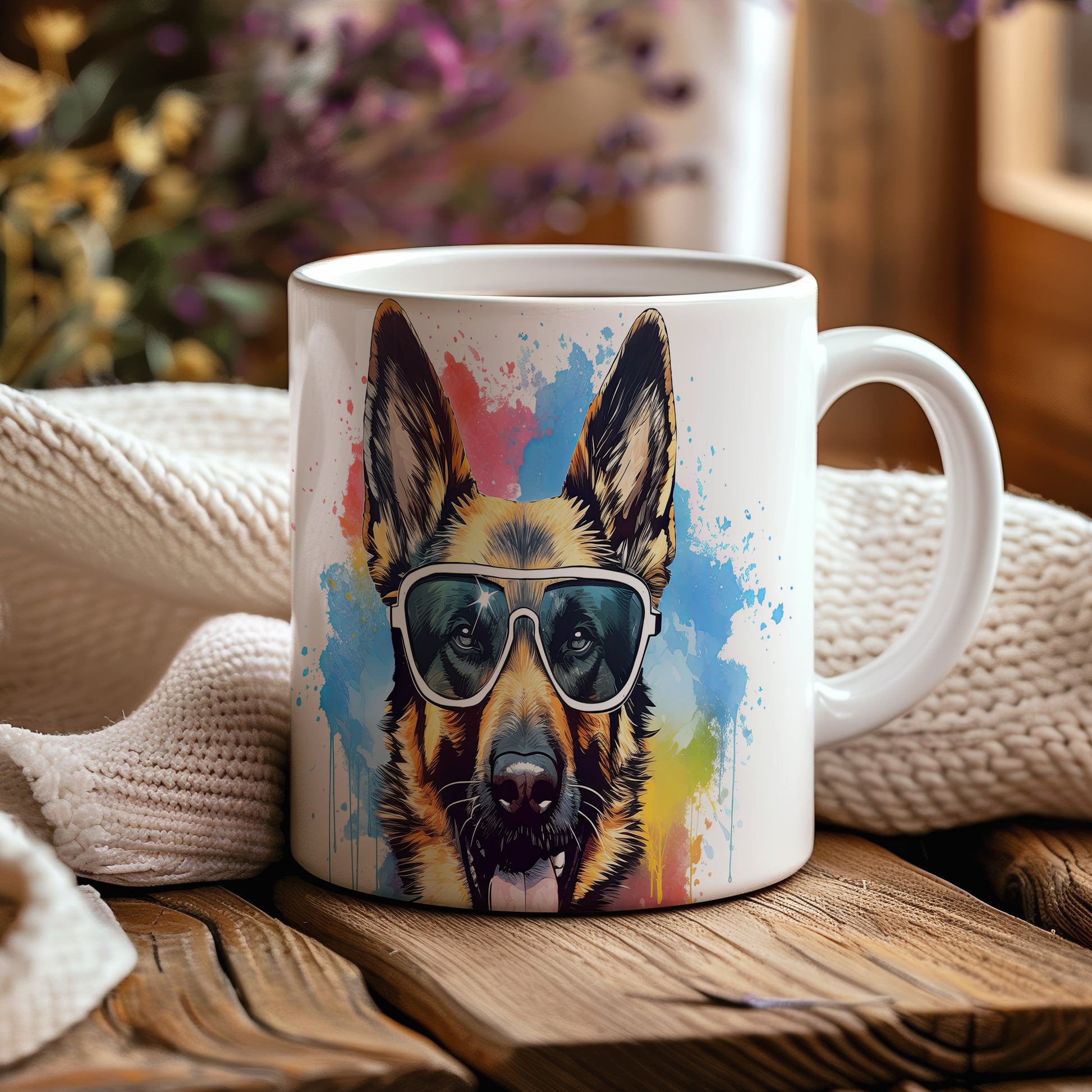 Hrnek s německým ovčákem v brýlích – roztomilý styl