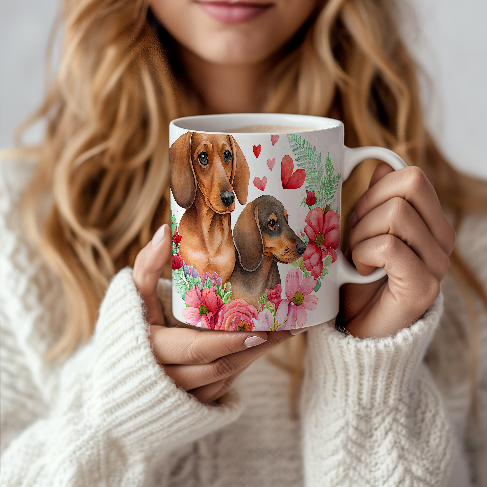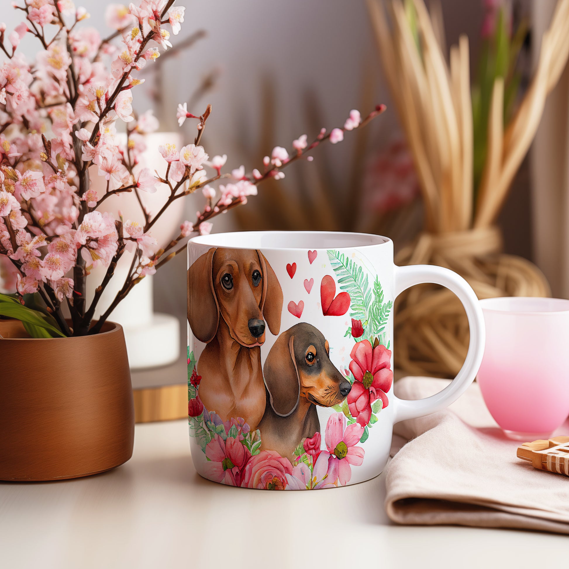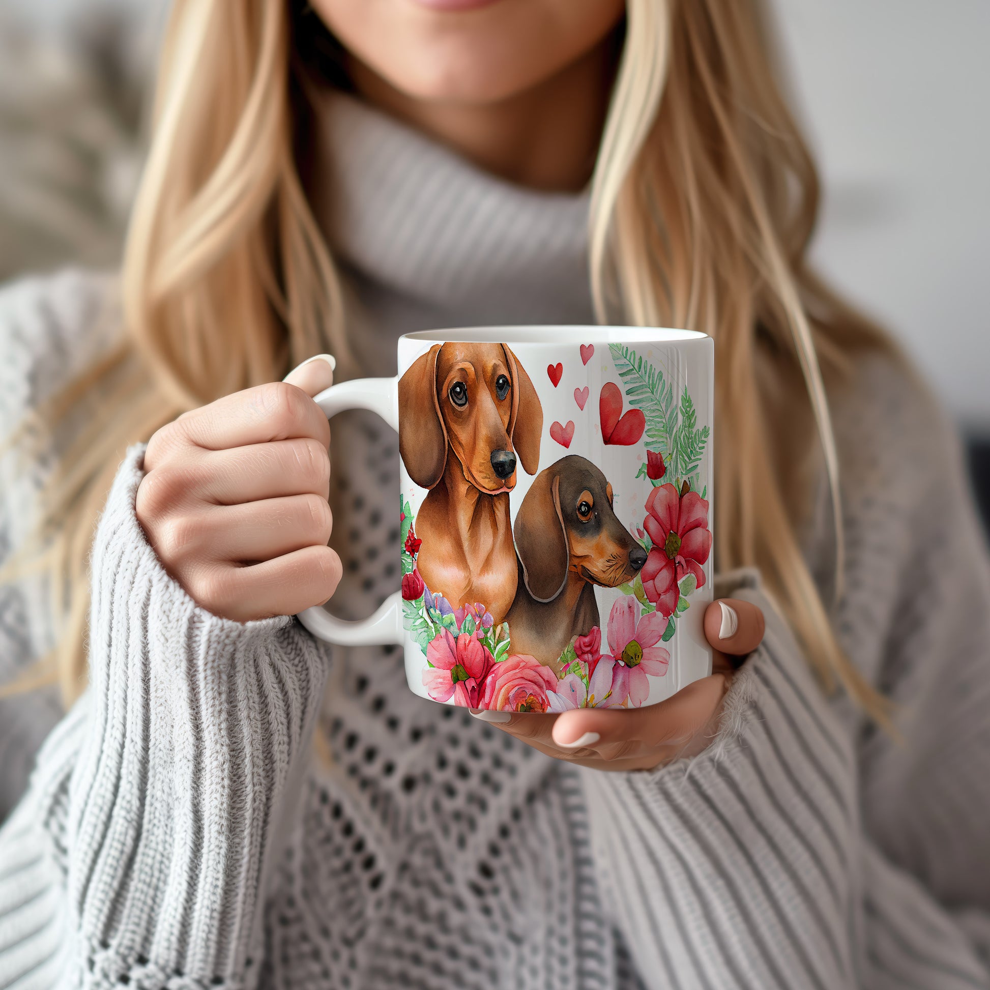 Tento keramický hrnek s motivem jezevčíků je skvělou volbou pro milovníky psů. Je ideální jako dárek pro přátele nebo rodinu, kteří mají rádi tyto věrné společníky. Materiál: keramika. Objem: 330 ml. Vhodné do myčky i mikrovlnky. Užijte si kávu nebo čaj s tímto stylovým hrnkem a potěšte se jeho jedinečným designem.