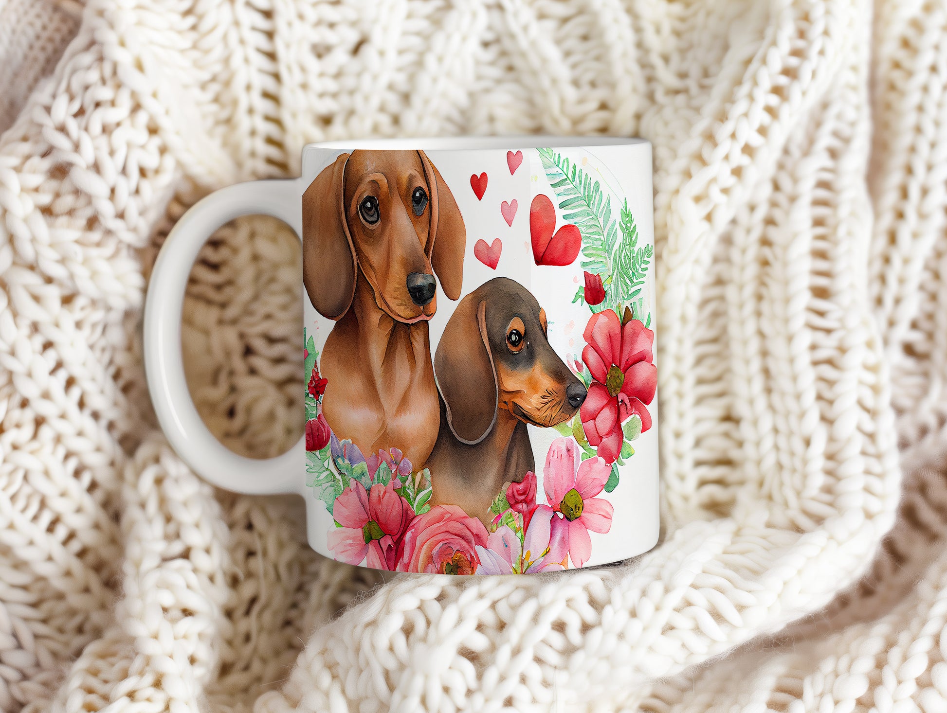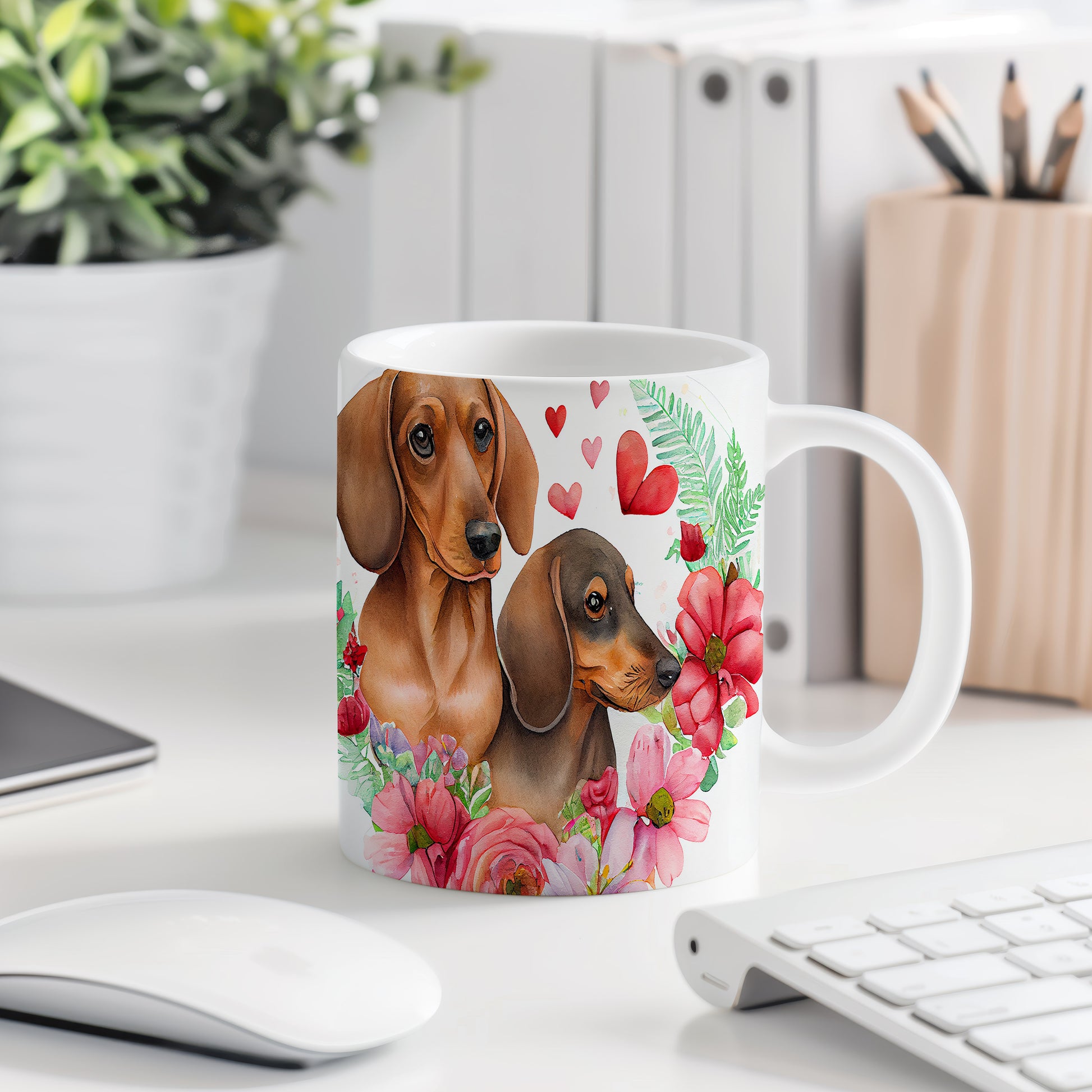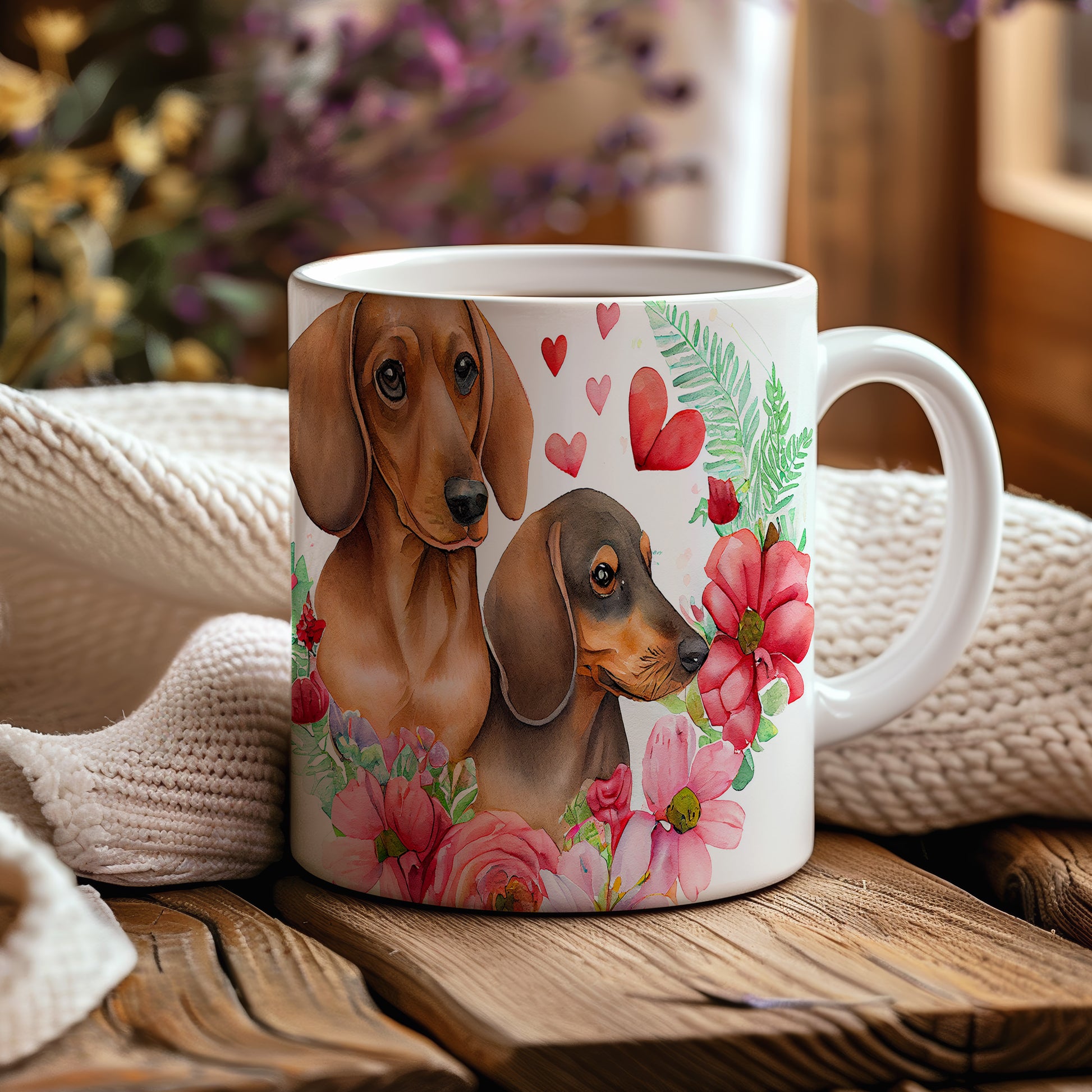 Tento keramický hrnek s motivem jezevčíků je skvělou volbou pro milovníky psů. Je ideální jako dárek pro přátele nebo rodinu, kteří mají rádi tyto věrné společníky. Materiál: keramika. Objem: 330 ml. Vhodné do myčky i mikrovlnky. Užijte si kávu nebo čaj s tímto stylovým hrnkem a potěšte se jeho jedinečným designem.