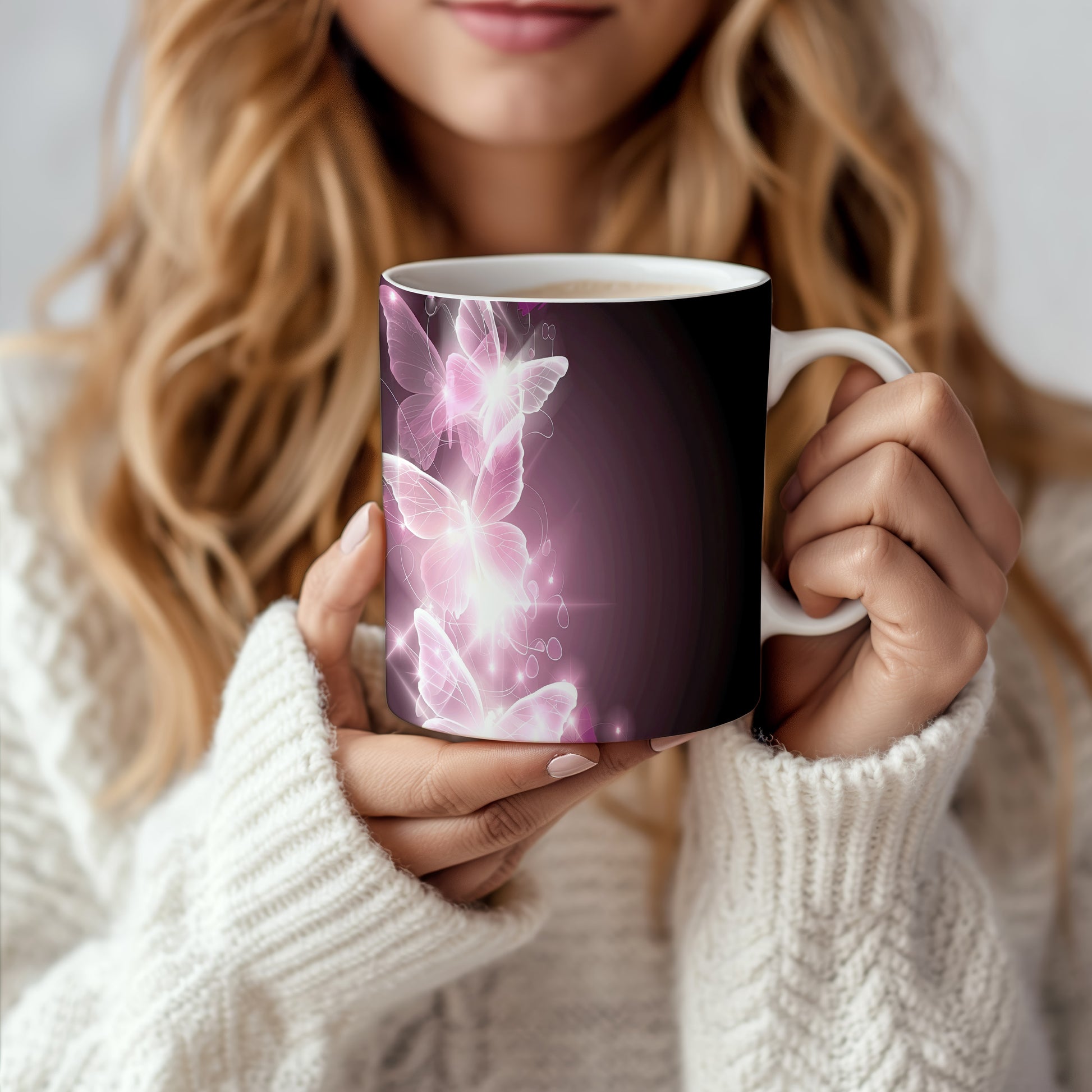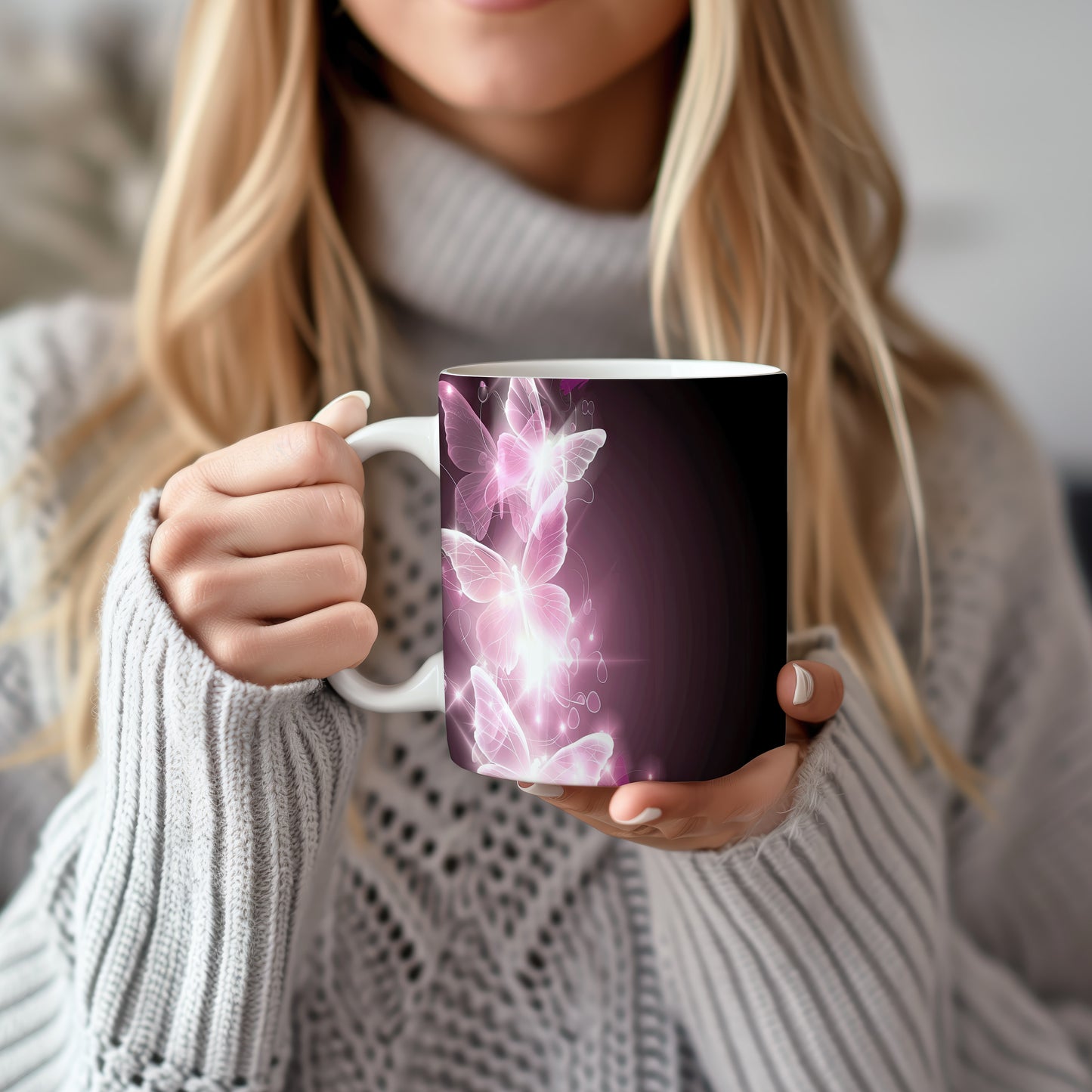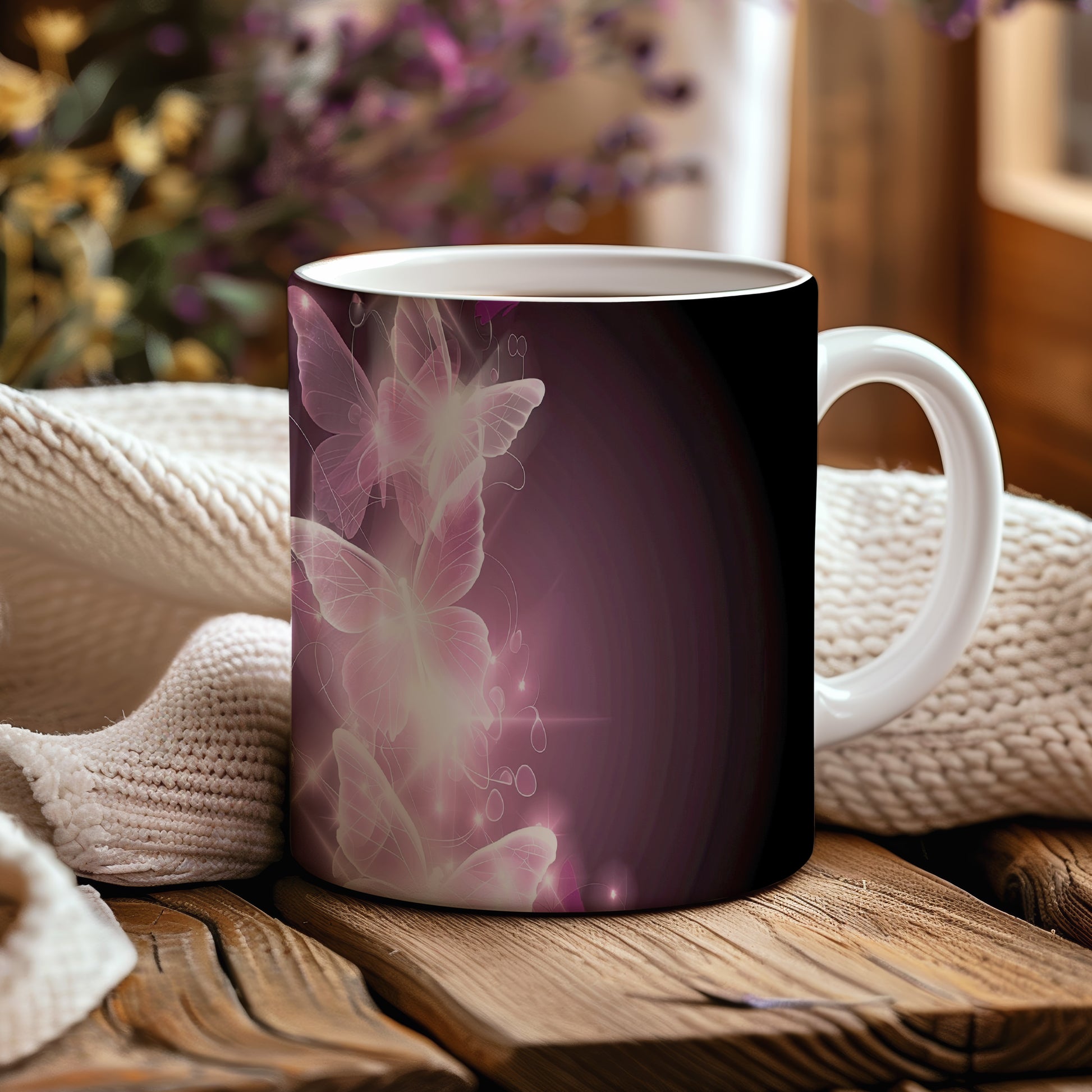 Hrnek s jemnými motýly na tmavém pozadí přináší elegantní a přírodní vzhled. Je ideální pro milovníky přírody a skvělým dárkem pro každého, kdo ocení krásu. Materiál: keramika. Objem: 330 ml. Vhodné do myčky i mikrovlnky. Tento hrnek vám zpříjemní každé ráno a dodá vašemu nápoji osobitý styl.