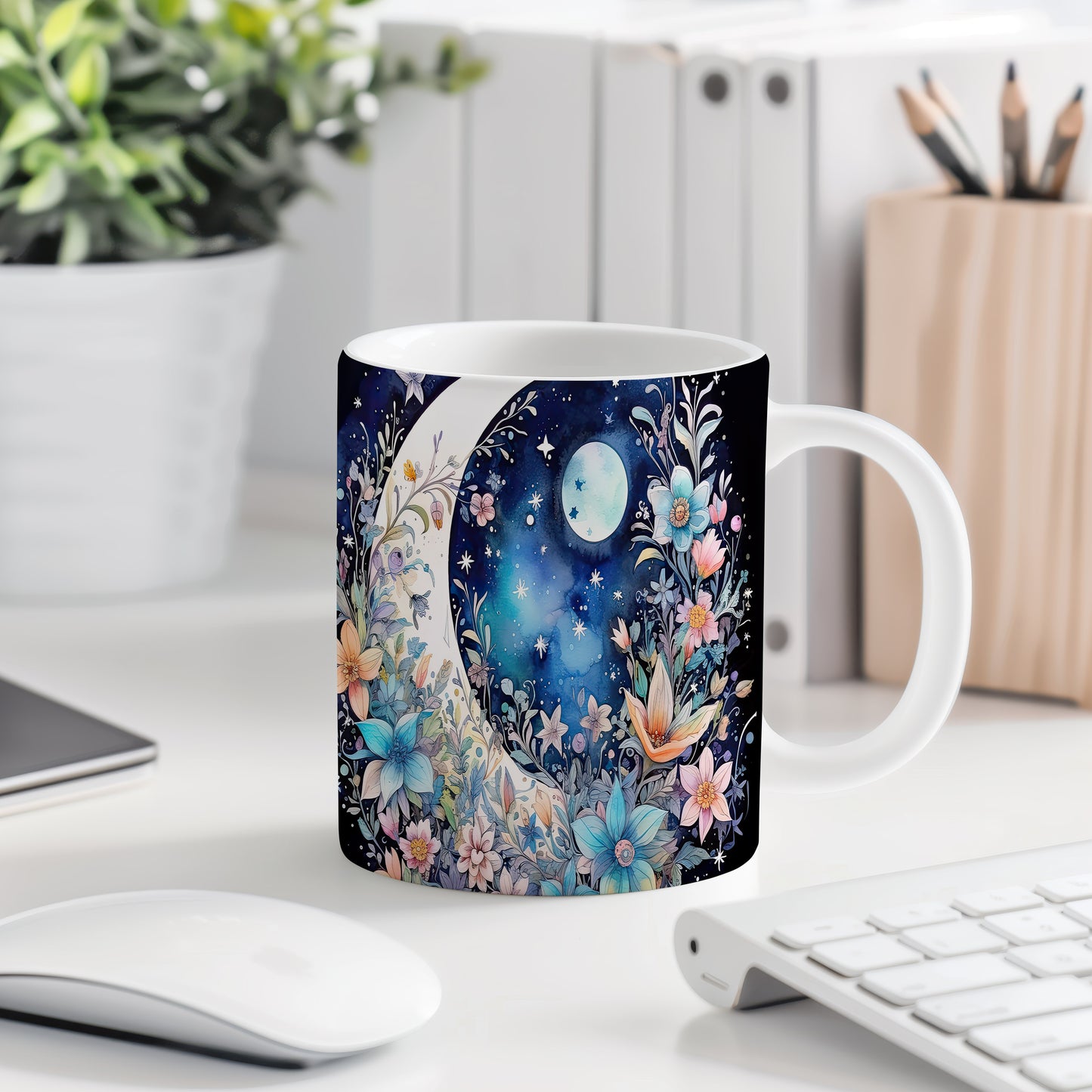 Tento stylový hrnek s motivem noční oblohy a květin je ideální volbou pro milovníky přírody a romantiky. Skvěle se hodí jako dárek pro přátele nebo rodinu, kteří ocení jedinečný design. Materiál: keramika. Objem: 330 ml. Vhodné do myčky i mikrovlnky. Užijte si kávu nebo čaj v krásném hrnku, který přináší klid a pohodu do každého dne.