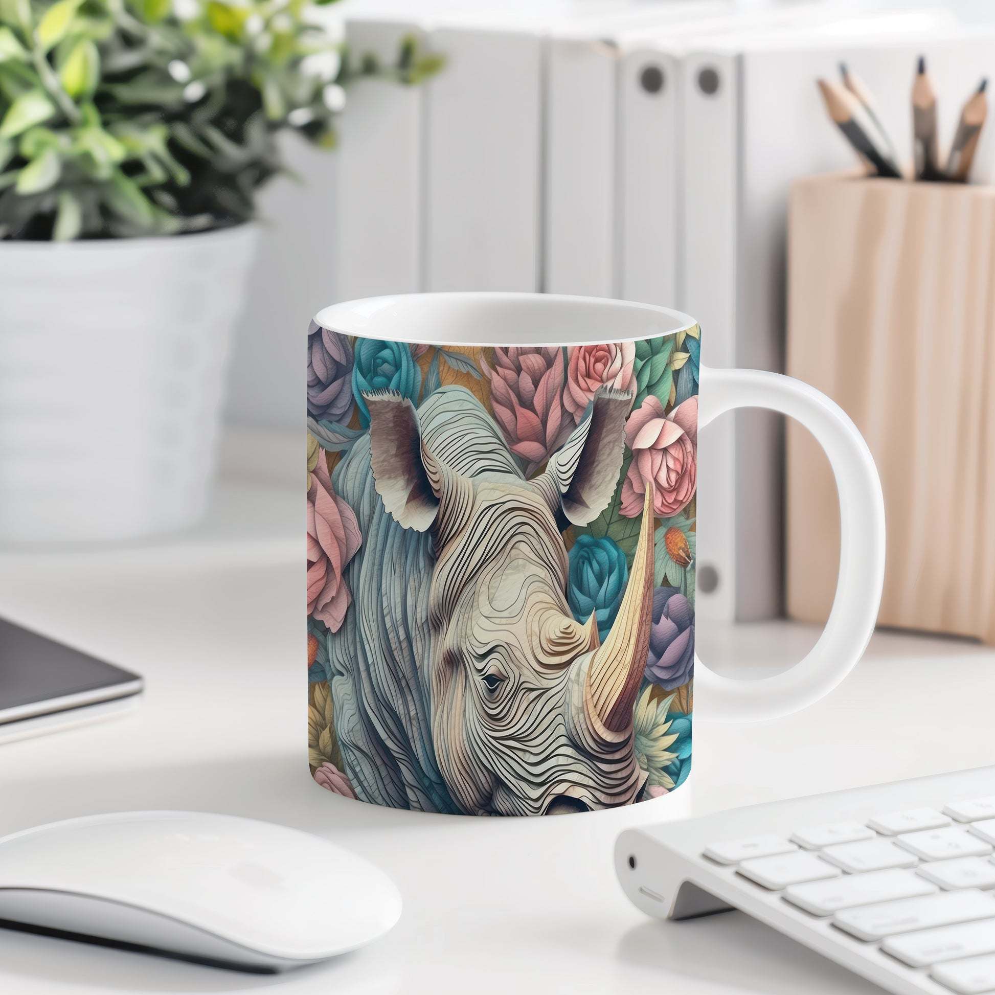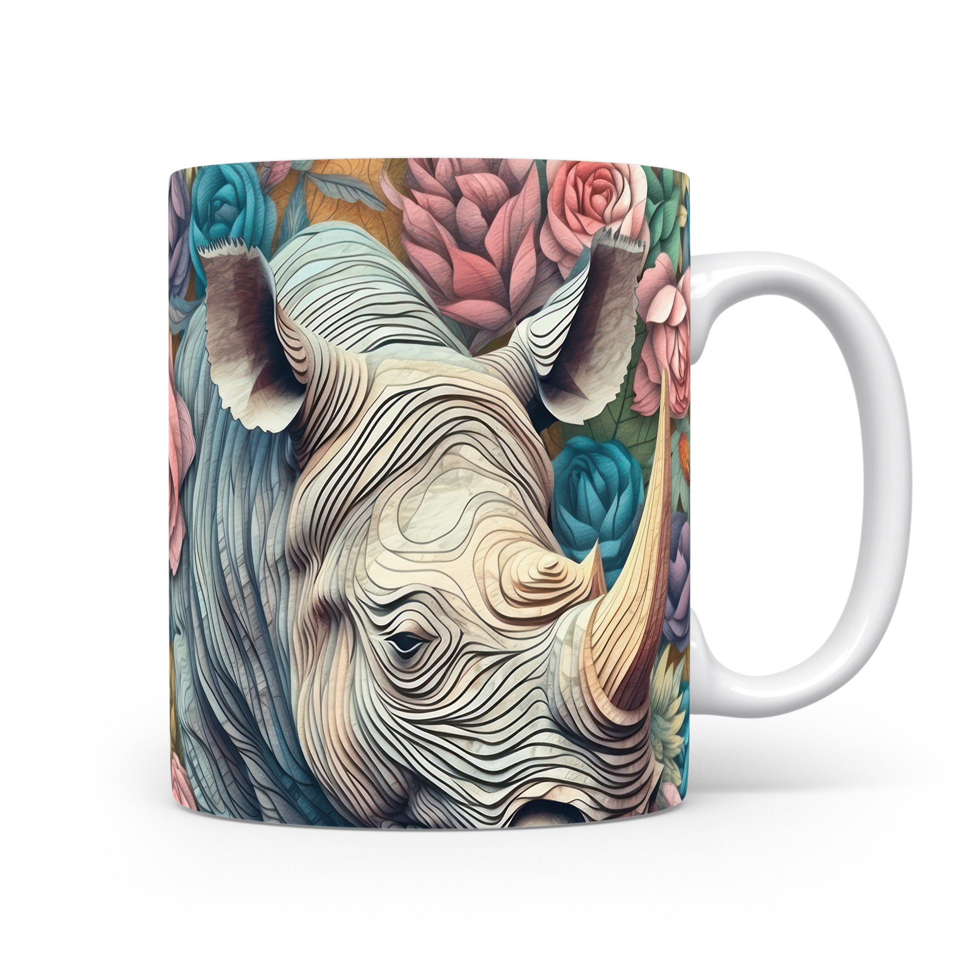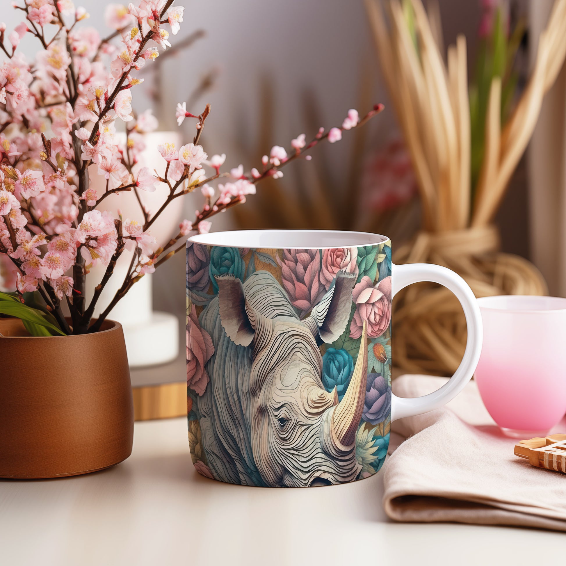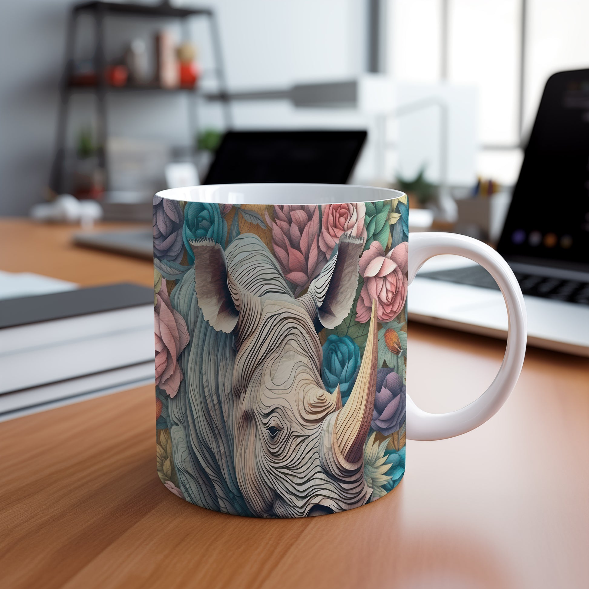 Hrnek s uměleckým motivem nosorožce a květin je skvělým doplňkem pro milovníky přírody a originálního designu. Tento hrnek je ideální jako dárek pro přátele nebo rodinu, kteří ocení jedinečné kousky. Materiál: keramika. Objem: 330 ml. Vhodné do myčky i mikrovlnky. Používáním tohoto hrnku si užijete nejen krásný design, ale i praktické vlastnosti.
