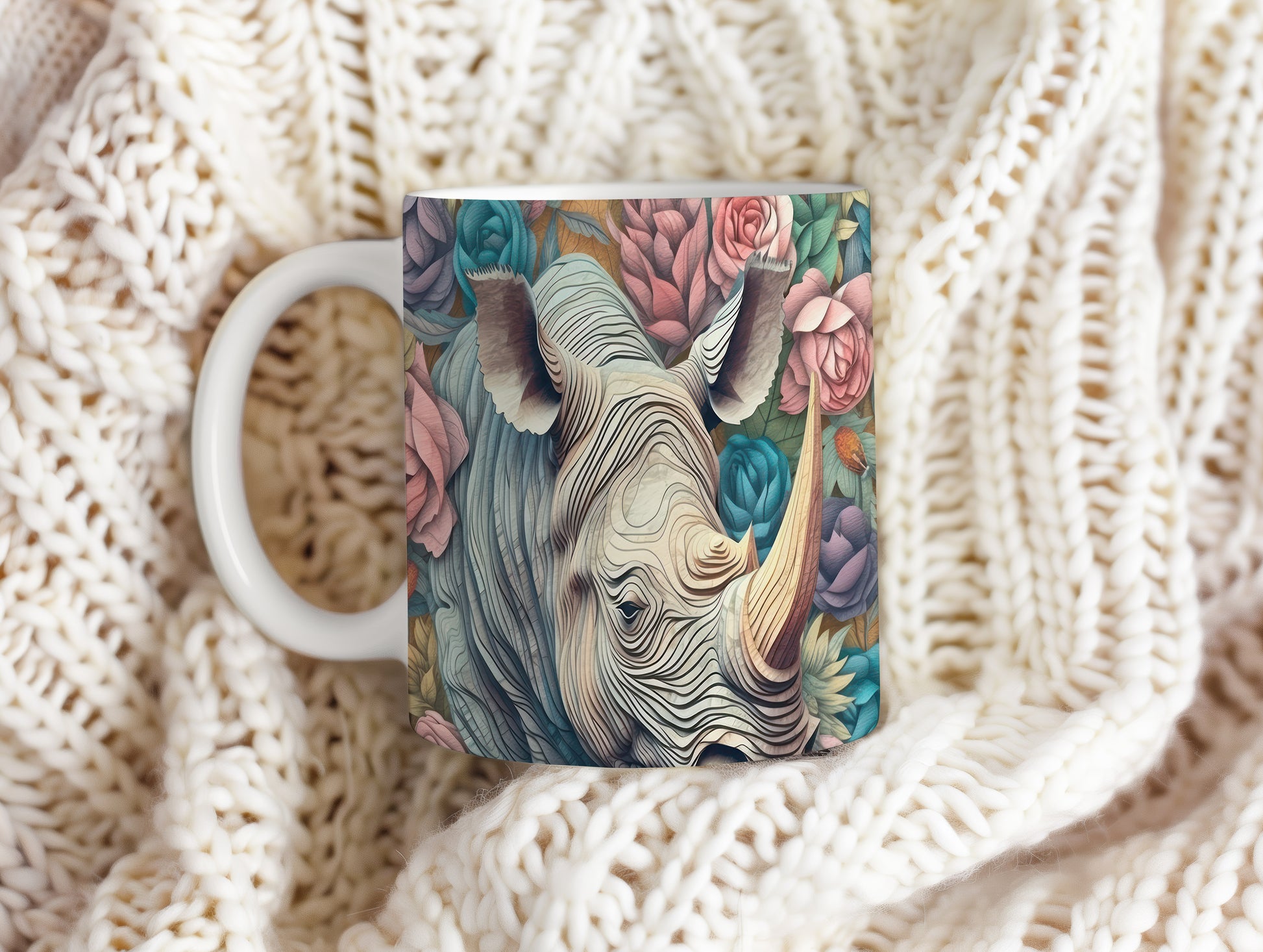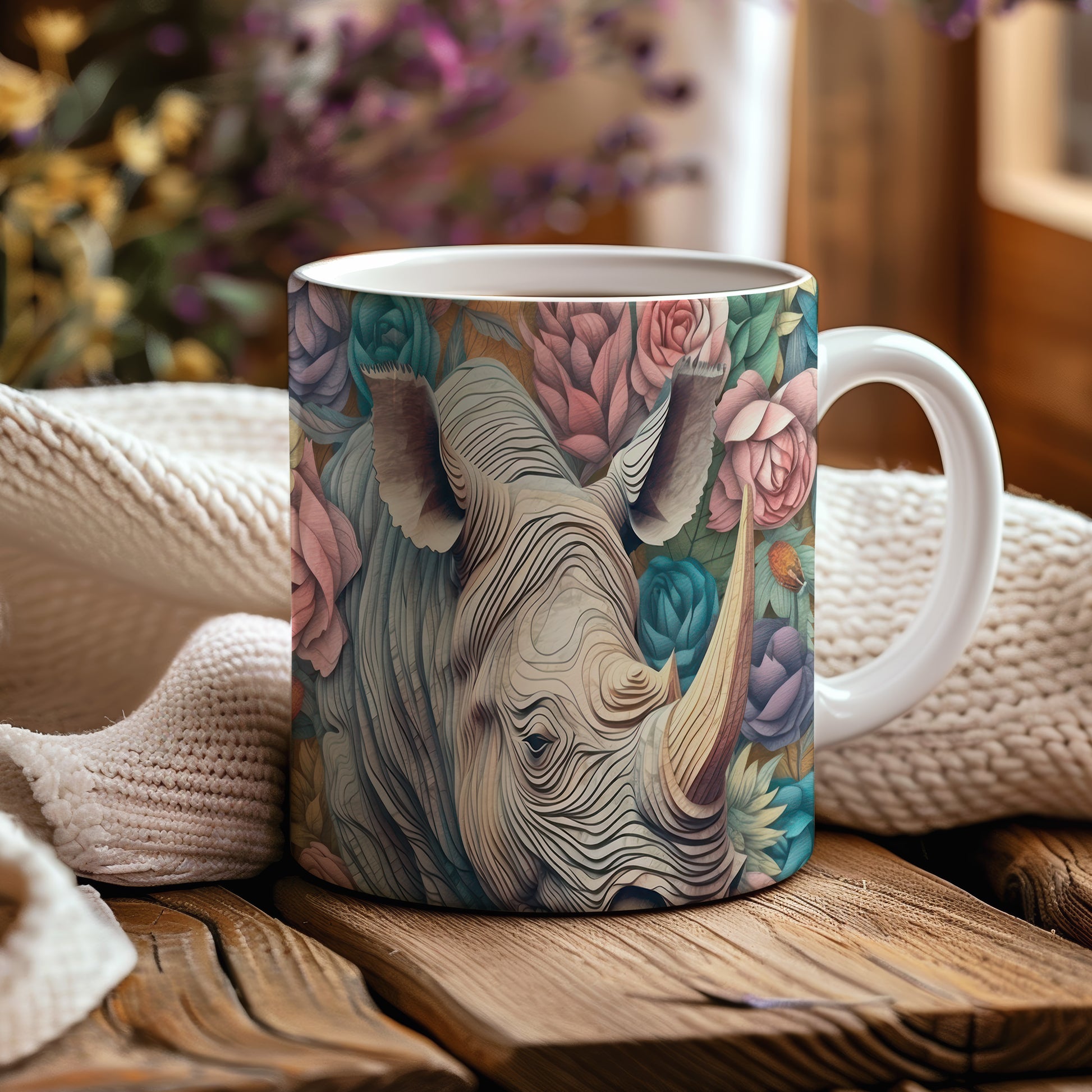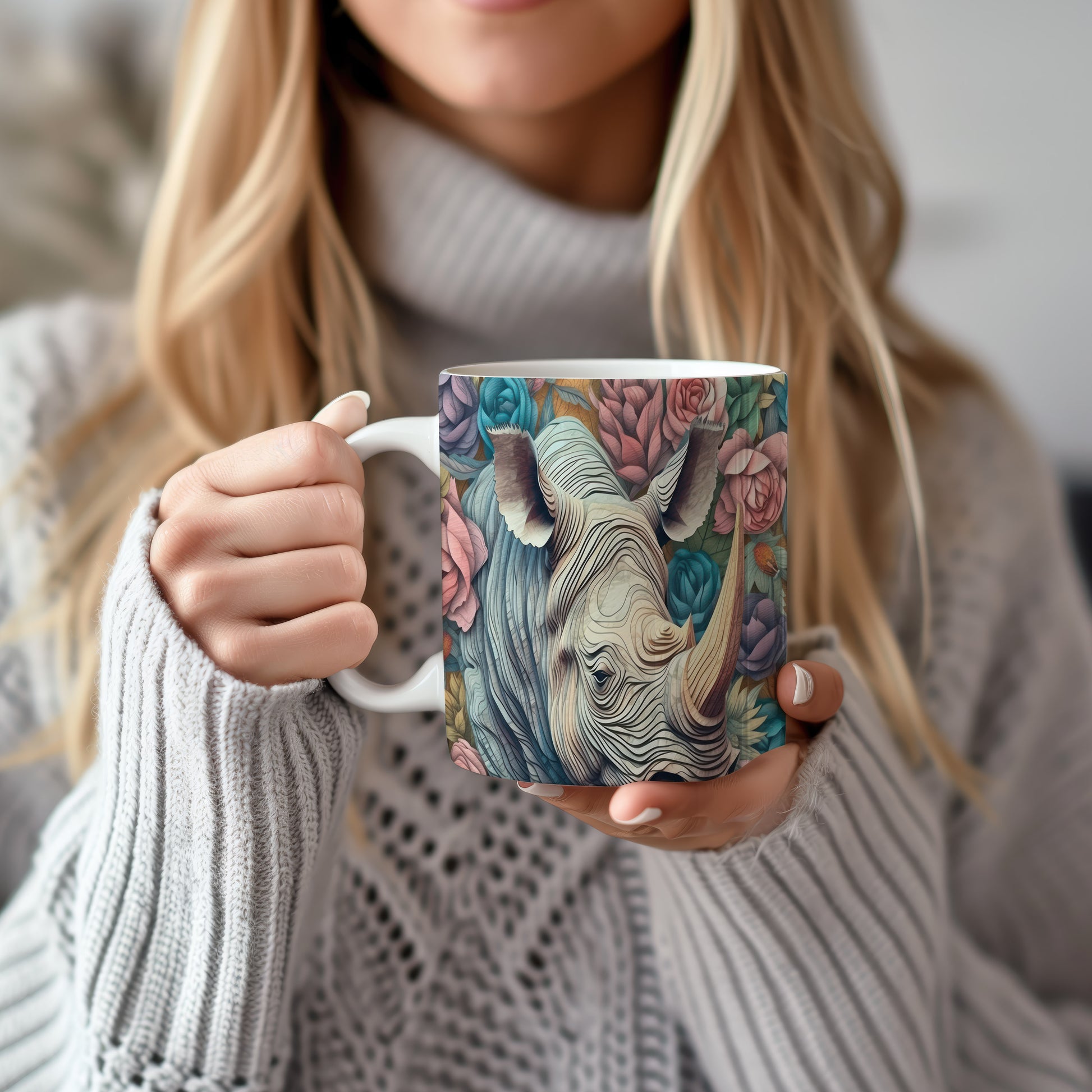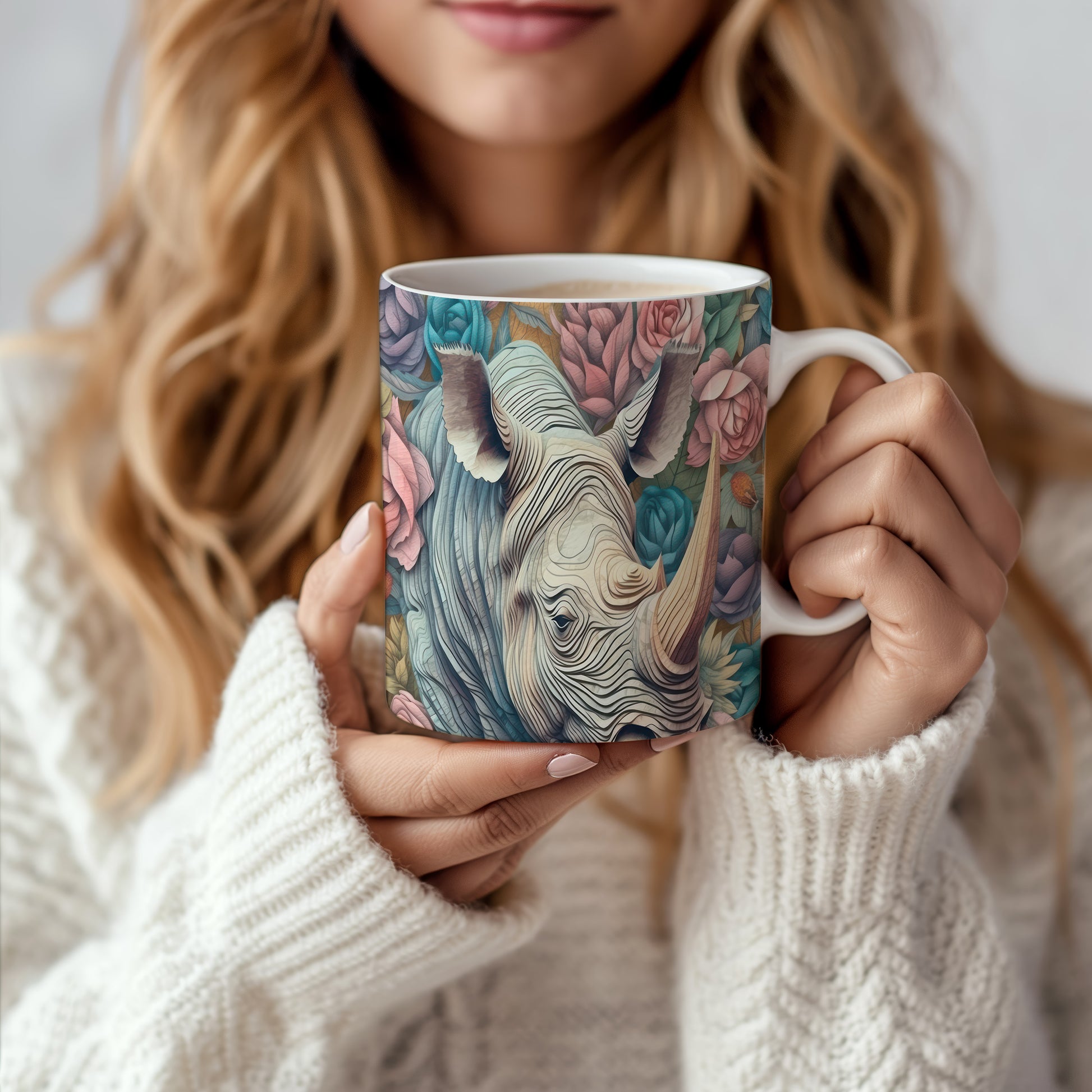 Hrnek s uměleckým motivem nosorožce a květin je skvělým doplňkem pro milovníky přírody a originálního designu. Tento hrnek je ideální jako dárek pro přátele nebo rodinu, kteří ocení jedinečné kousky. Materiál: keramika. Objem: 330 ml. Vhodné do myčky i mikrovlnky. Používáním tohoto hrnku si užijete nejen krásný design, ale i praktické vlastnosti.