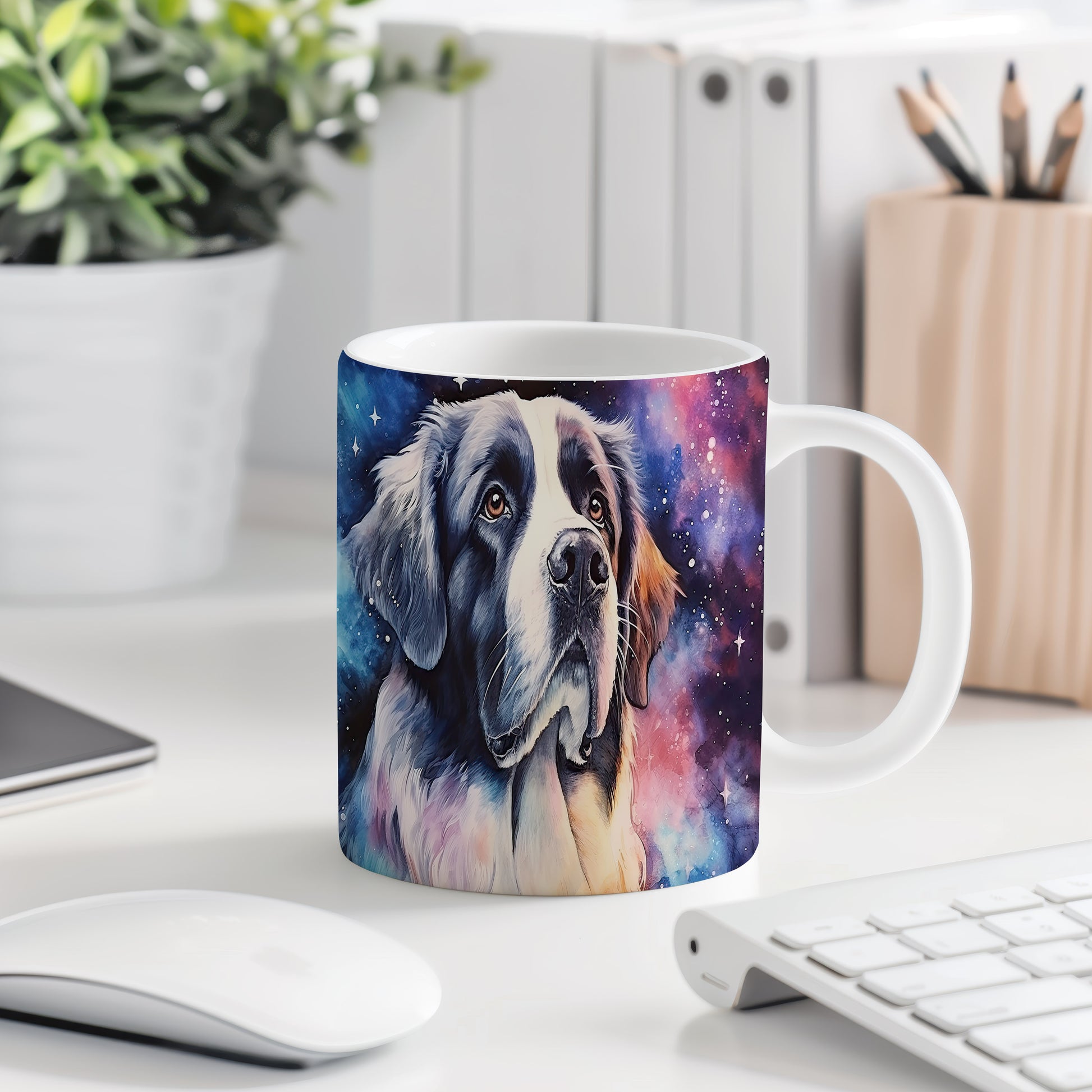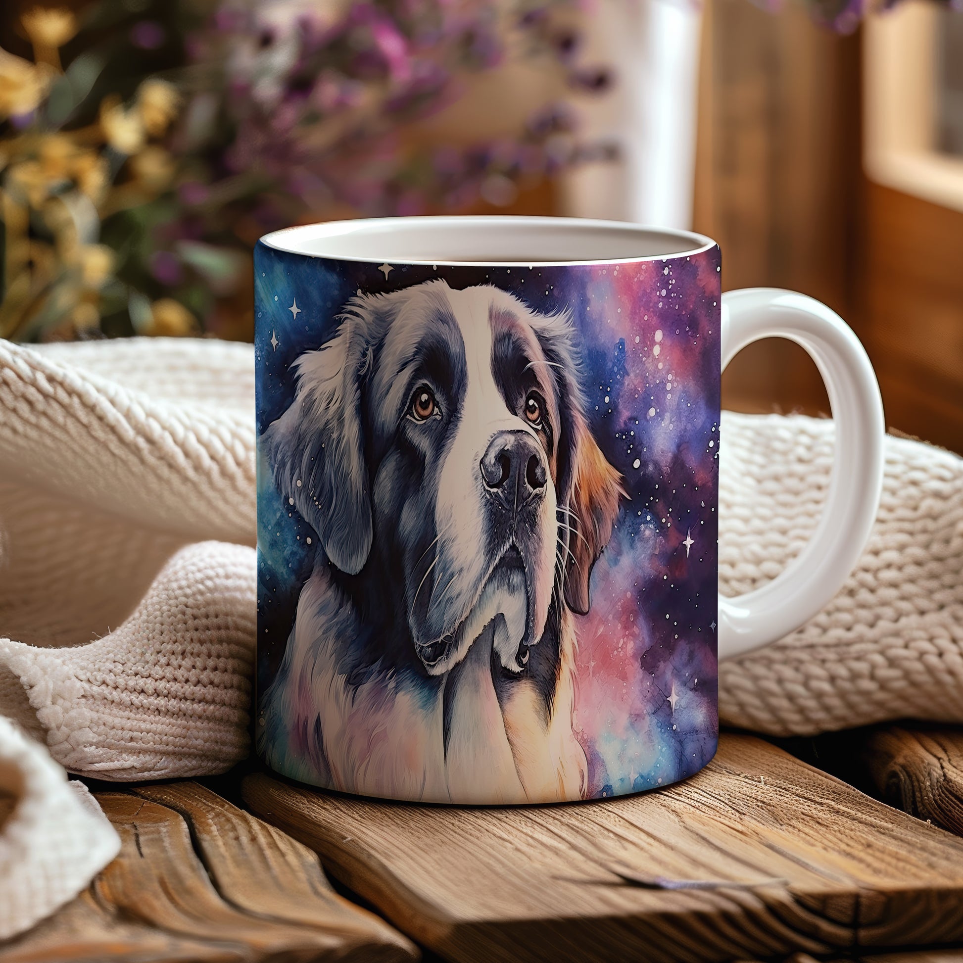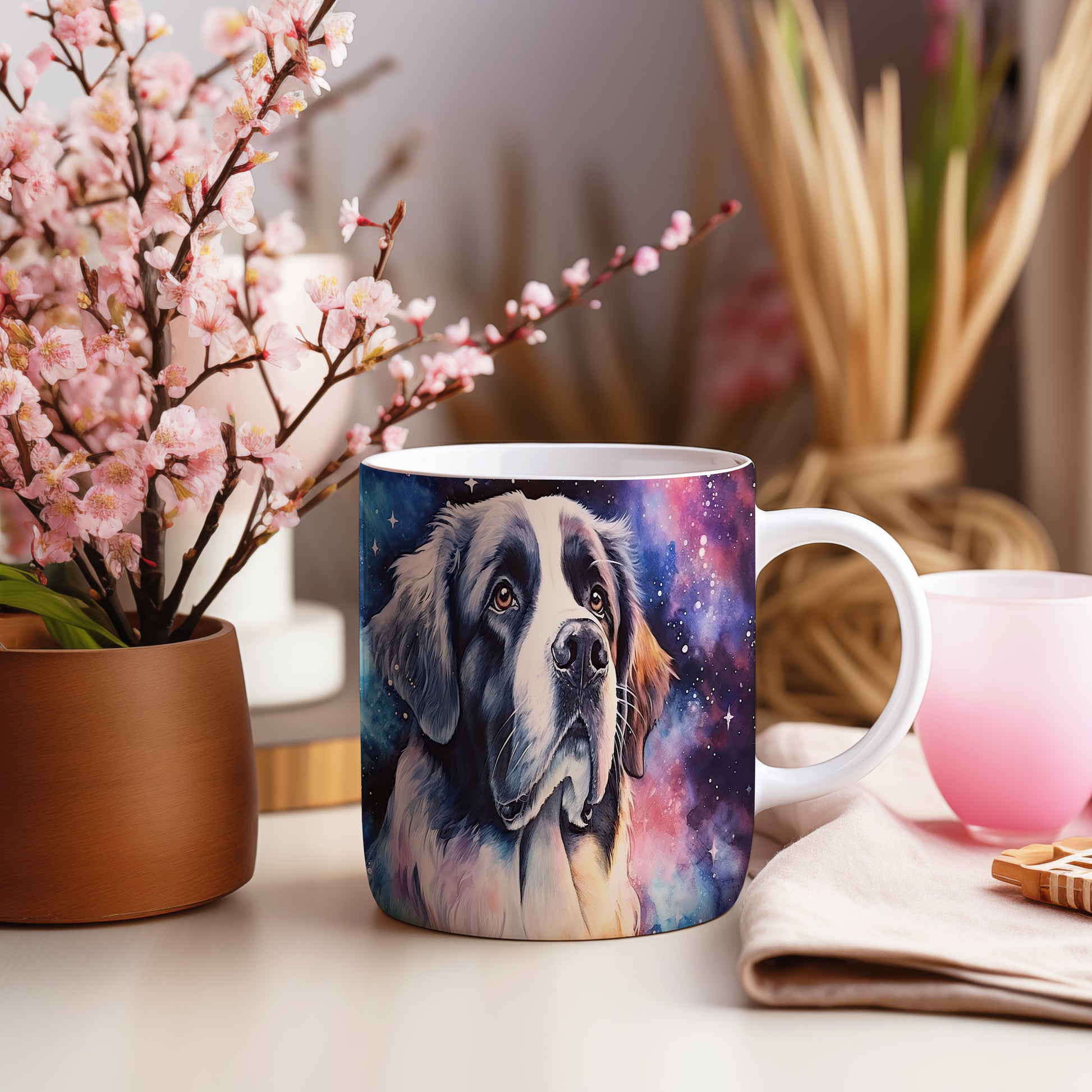 Tento hrnek zaujme originálním motivem svatého bernarda na pozadí galaktických barev. Je ideální pro milovníky psů a vesmírných témat, skvělý tip na dárek pro každého, kdo má rád jedinečné kousky. Materiál: keramika. Objem: 330 ml. Vhodné do myčky i mikrovlnky. Používáním tohoto hrnku si užijete nejen skvělý design, ale i pohodlné pití vašeho oblíbeného nápoje.