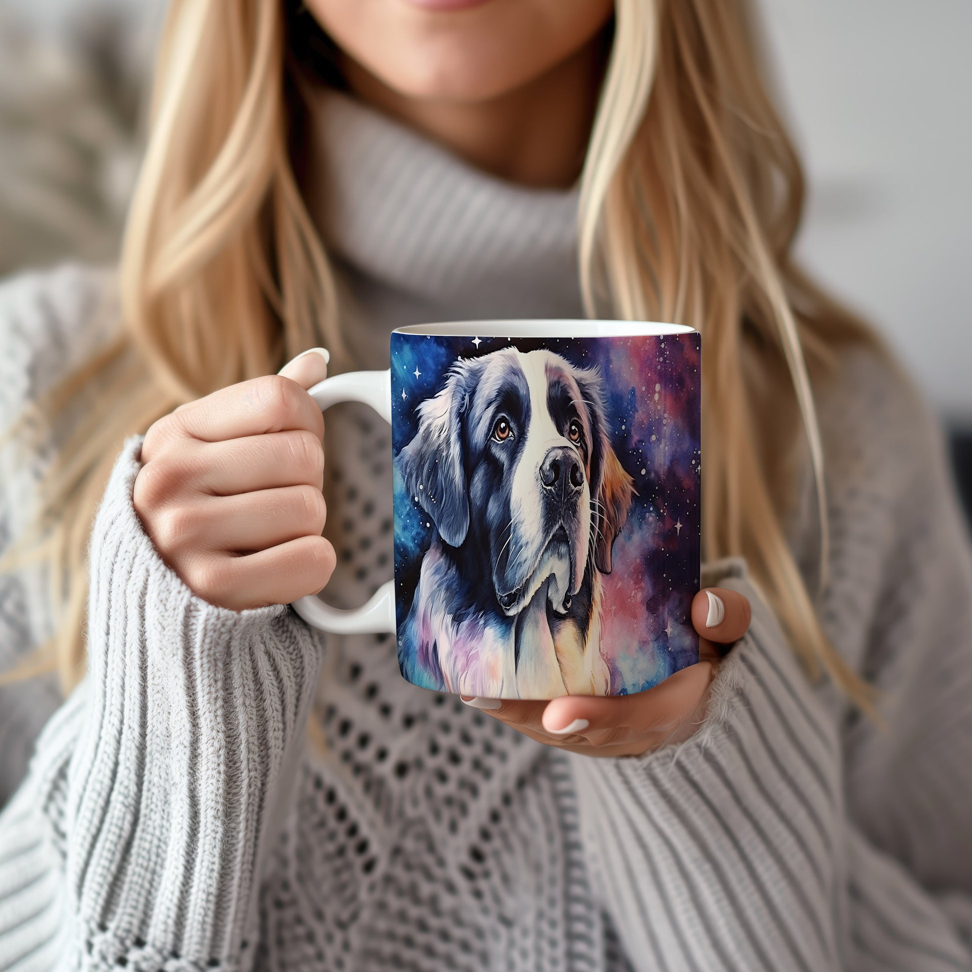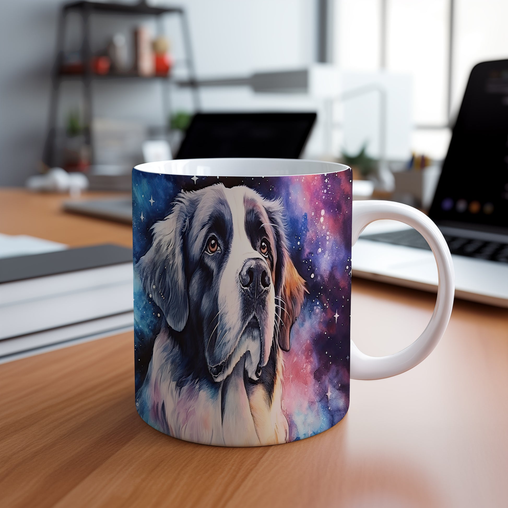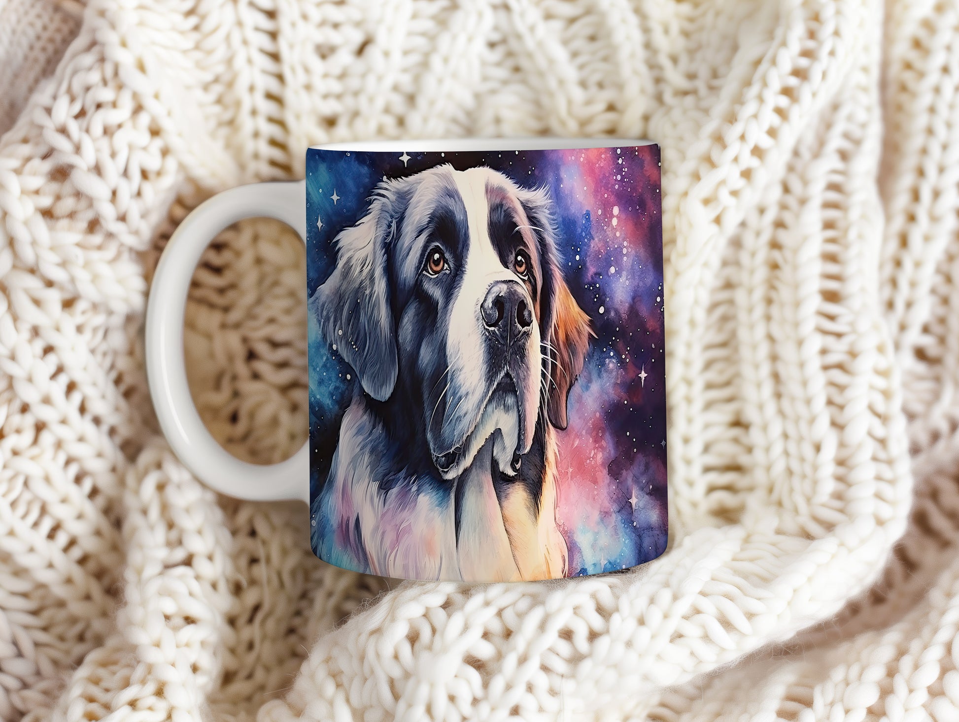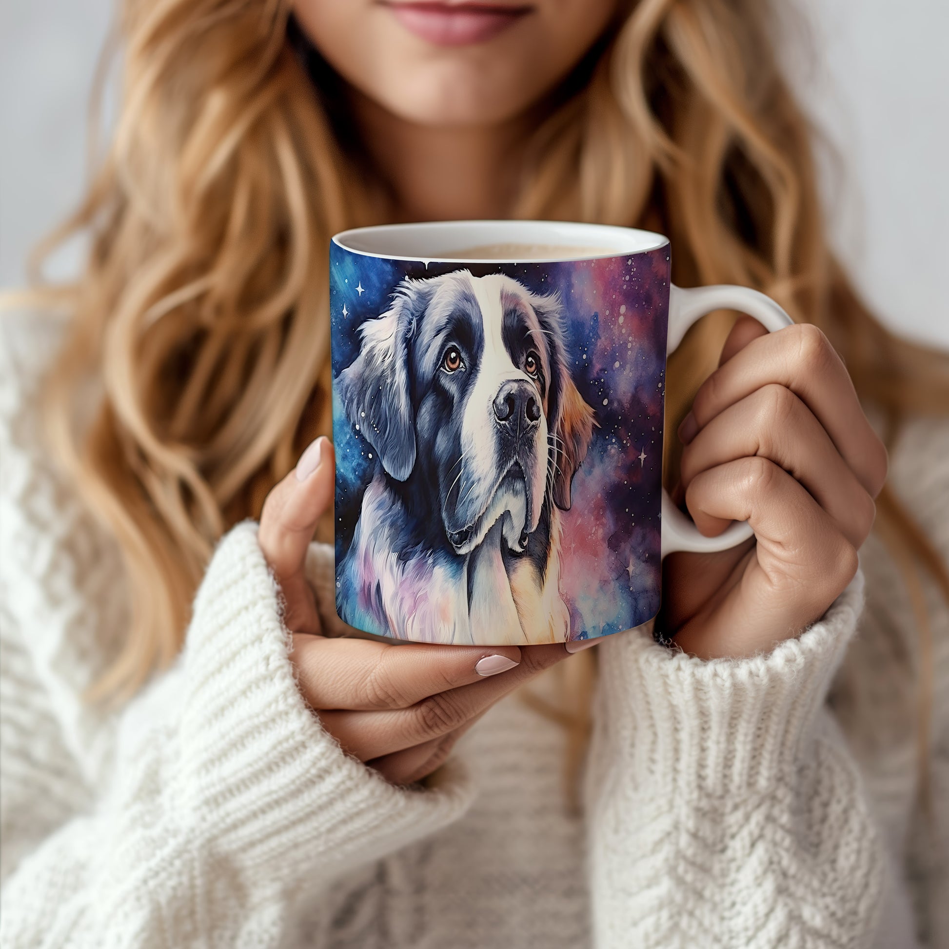 Tento hrnek zaujme originálním motivem svatého bernarda na pozadí galaktických barev. Je ideální pro milovníky psů a vesmírných témat, skvělý tip na dárek pro každého, kdo má rád jedinečné kousky. Materiál: keramika. Objem: 330 ml. Vhodné do myčky i mikrovlnky. Používáním tohoto hrnku si užijete nejen skvělý design, ale i pohodlné pití vašeho oblíbeného nápoje.