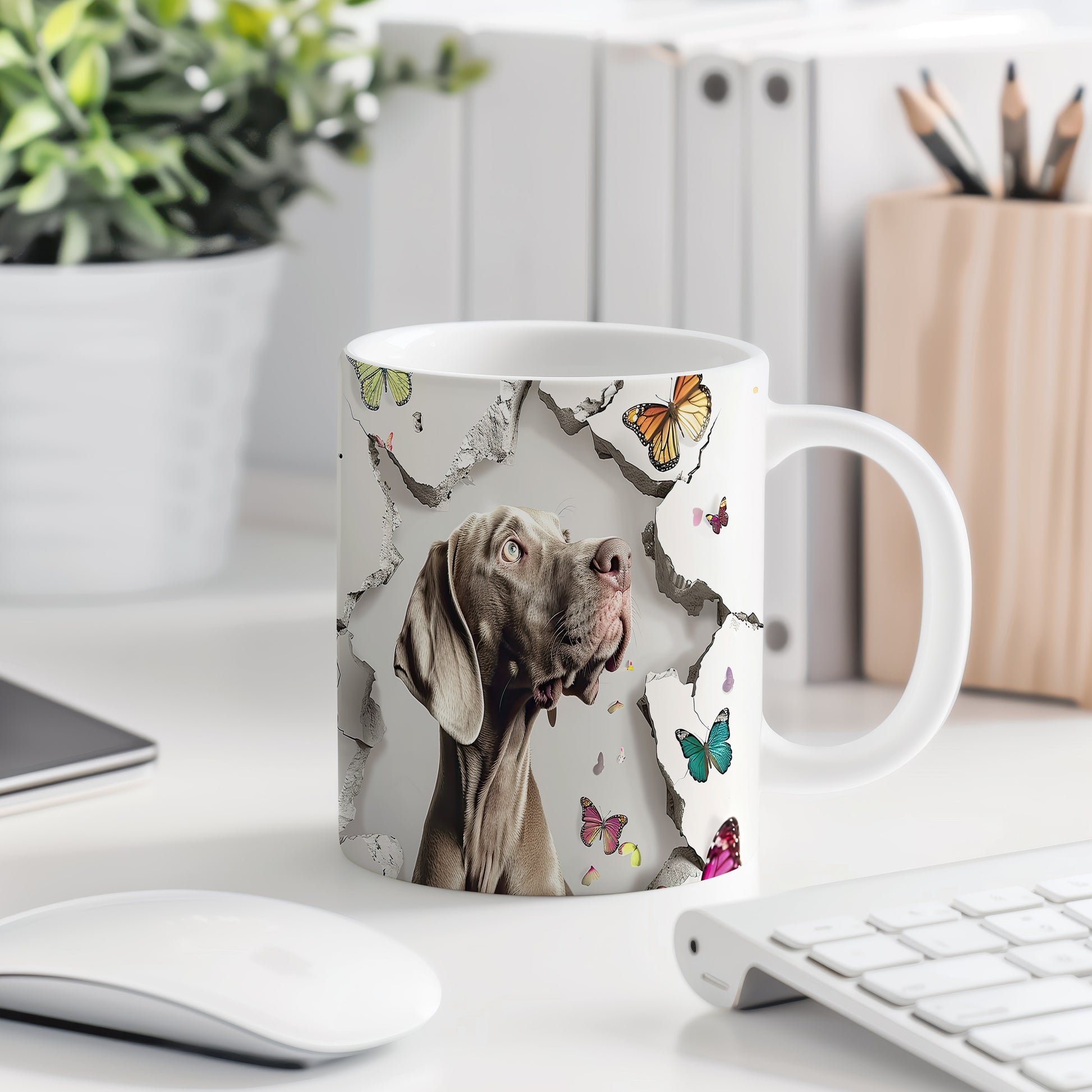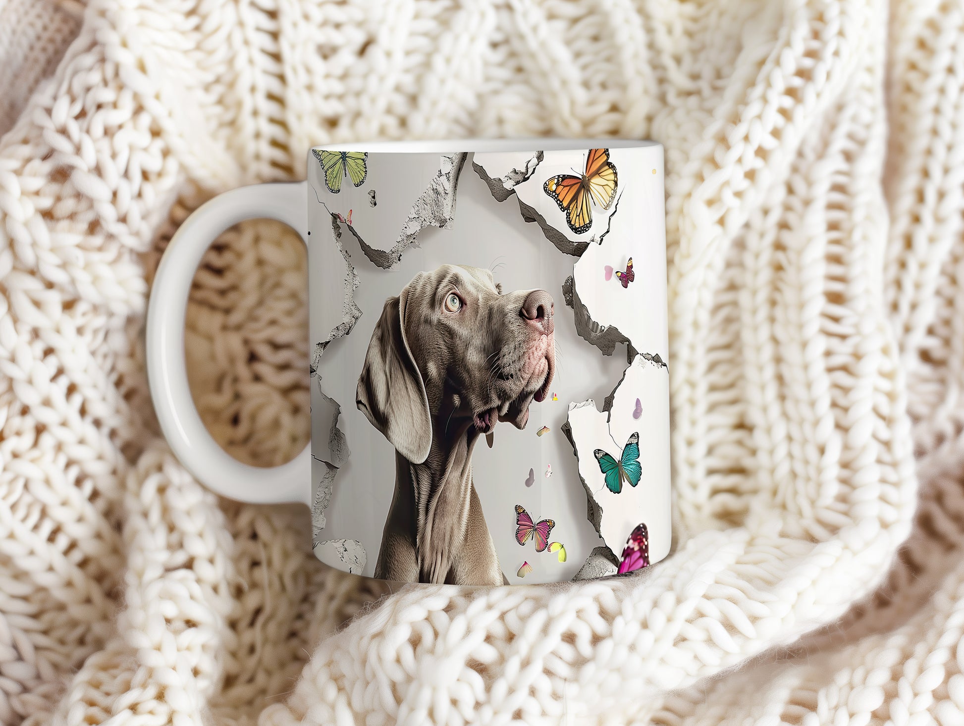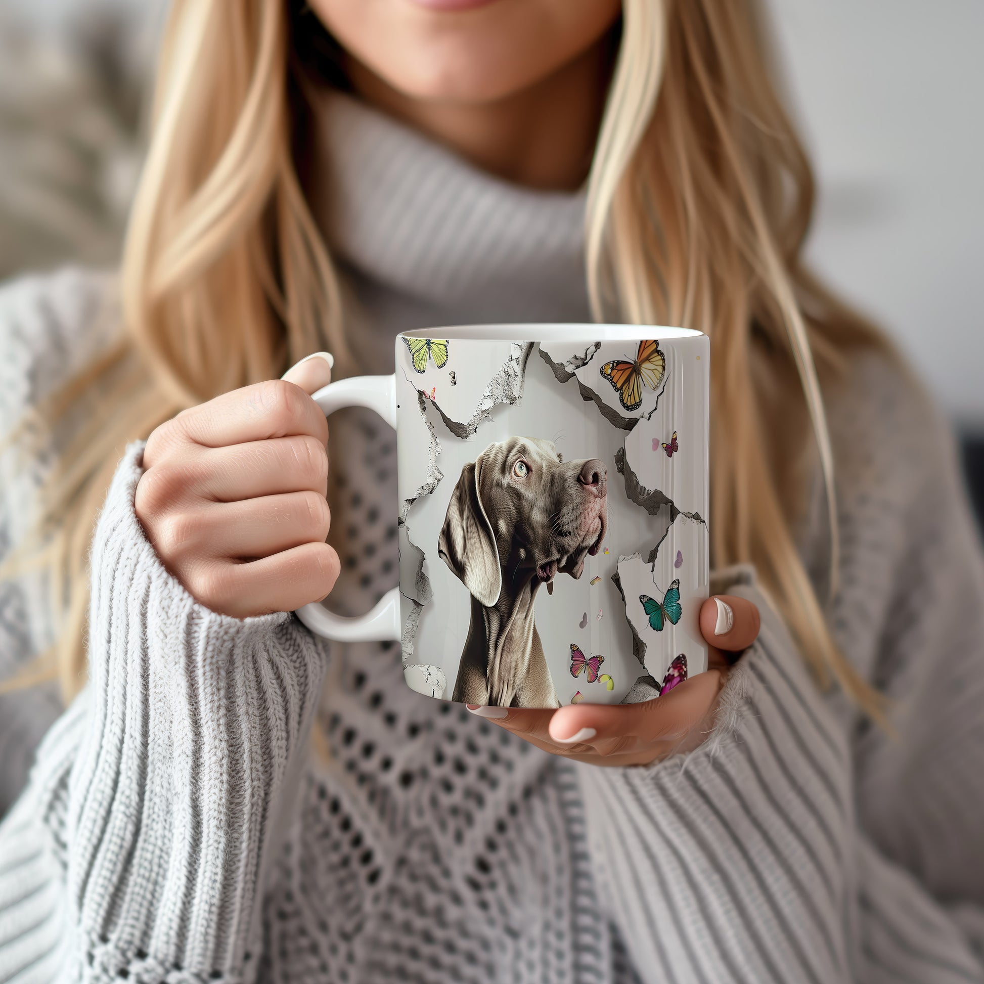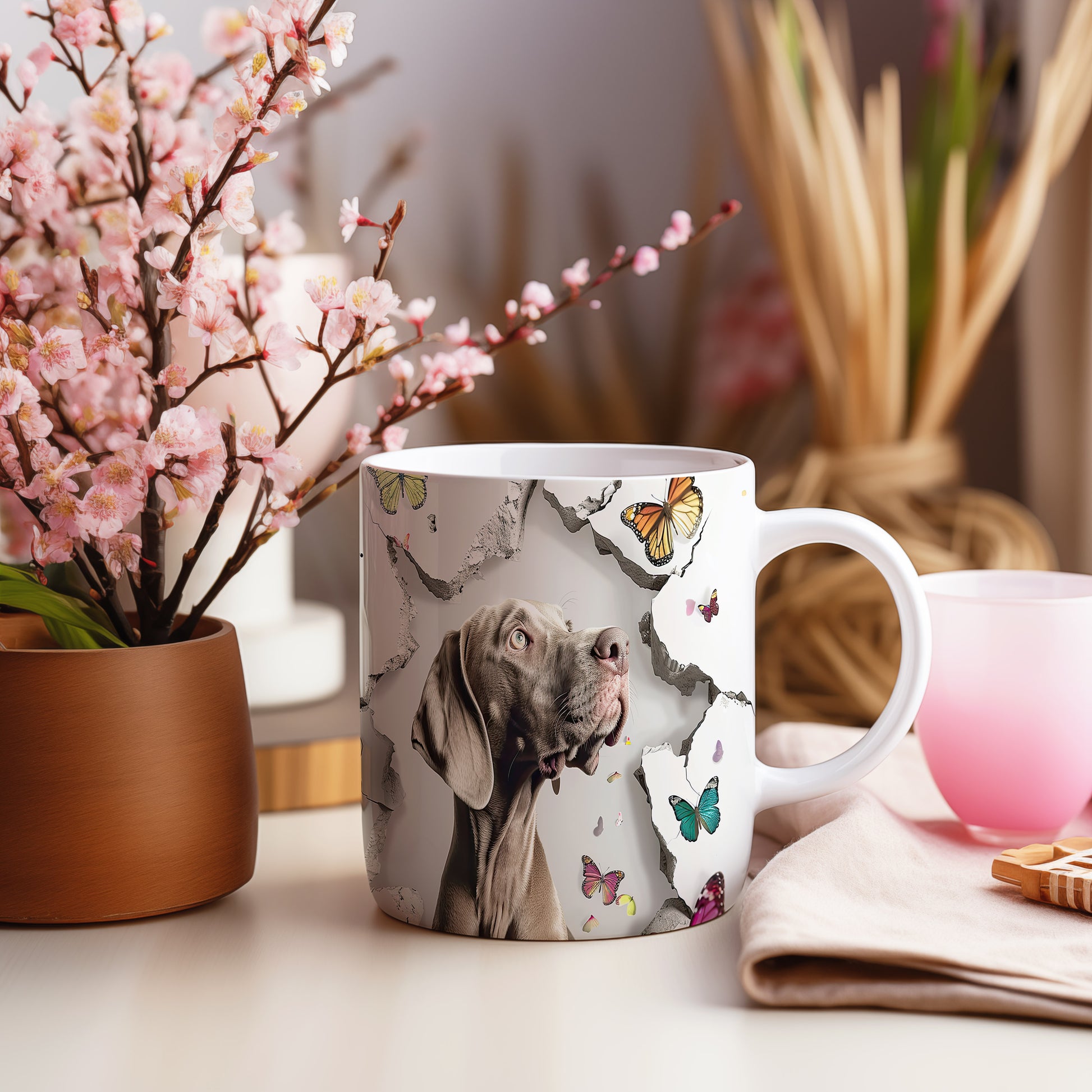 Tento hrnek zobrazuje psa s motýly v realistickém stylu. Je ideální pro milovníky zvířat a přírody, skvělý tip na dárek pro přátele nebo rodinu. Materiál: keramika. Objem: 330 ml. Vhodné do myčky i mikrovlnky. Používáním tohoto hrnku si užijete nejen kávu nebo čaj, ale také krásný design, který oživí váš den.