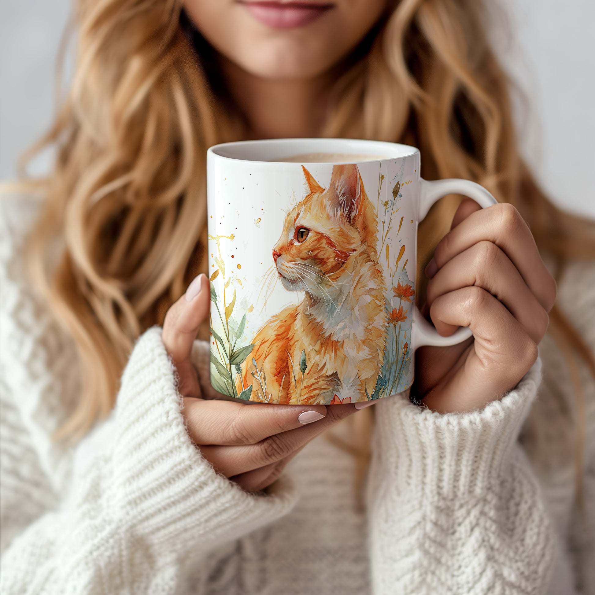 Tento keramický hrnek zdobí krásný motiv oranžové kočky v přírodním prostředí. Je ideální pro milovníky zvířat a přírody, skvělý tip na dárek pro přátele nebo rodinu. Materiál: keramika. Objem: 330 ml. Vhodné do myčky i mikrovlnky. Užívejte si svůj oblíbený nápoj s tímto stylovým hrnkem.