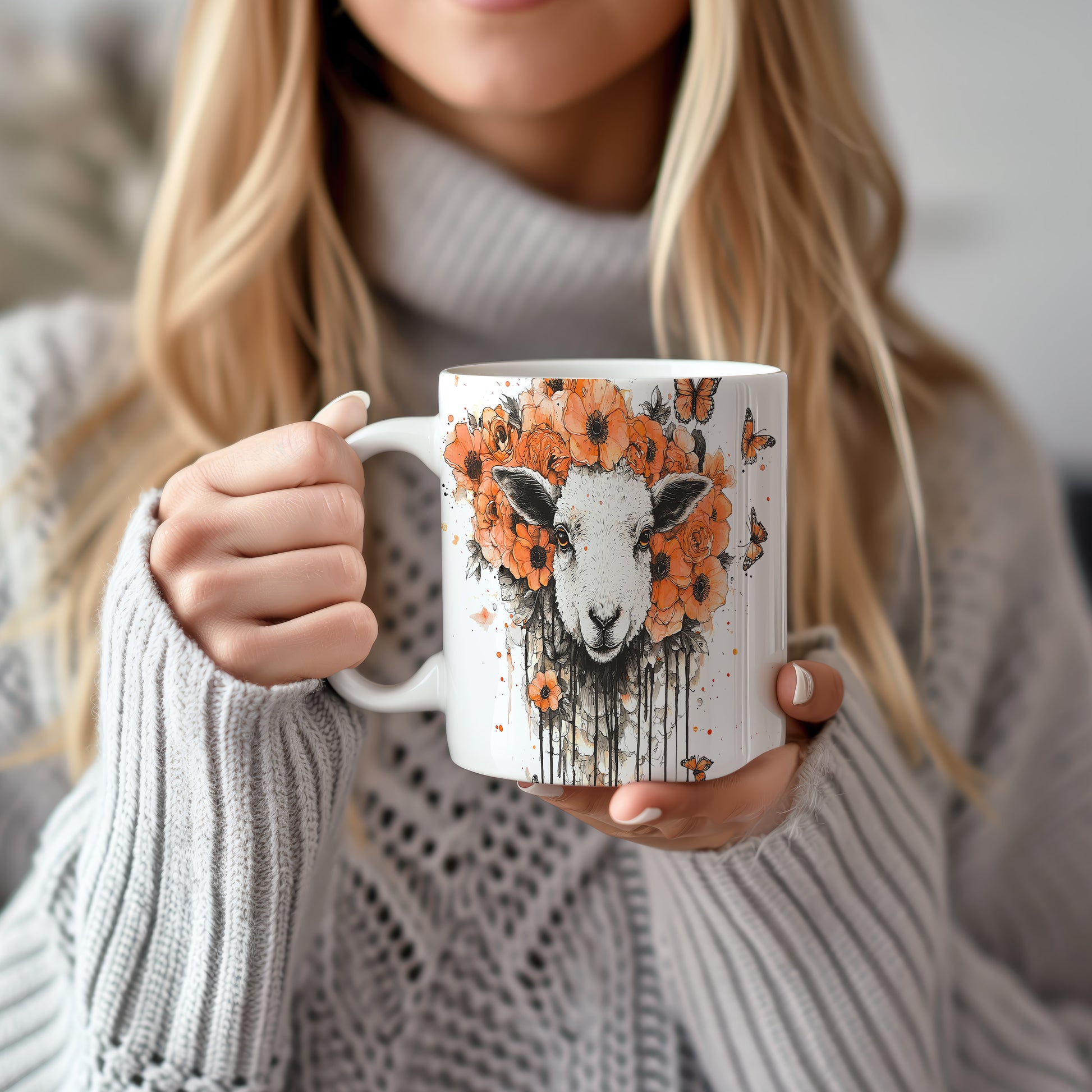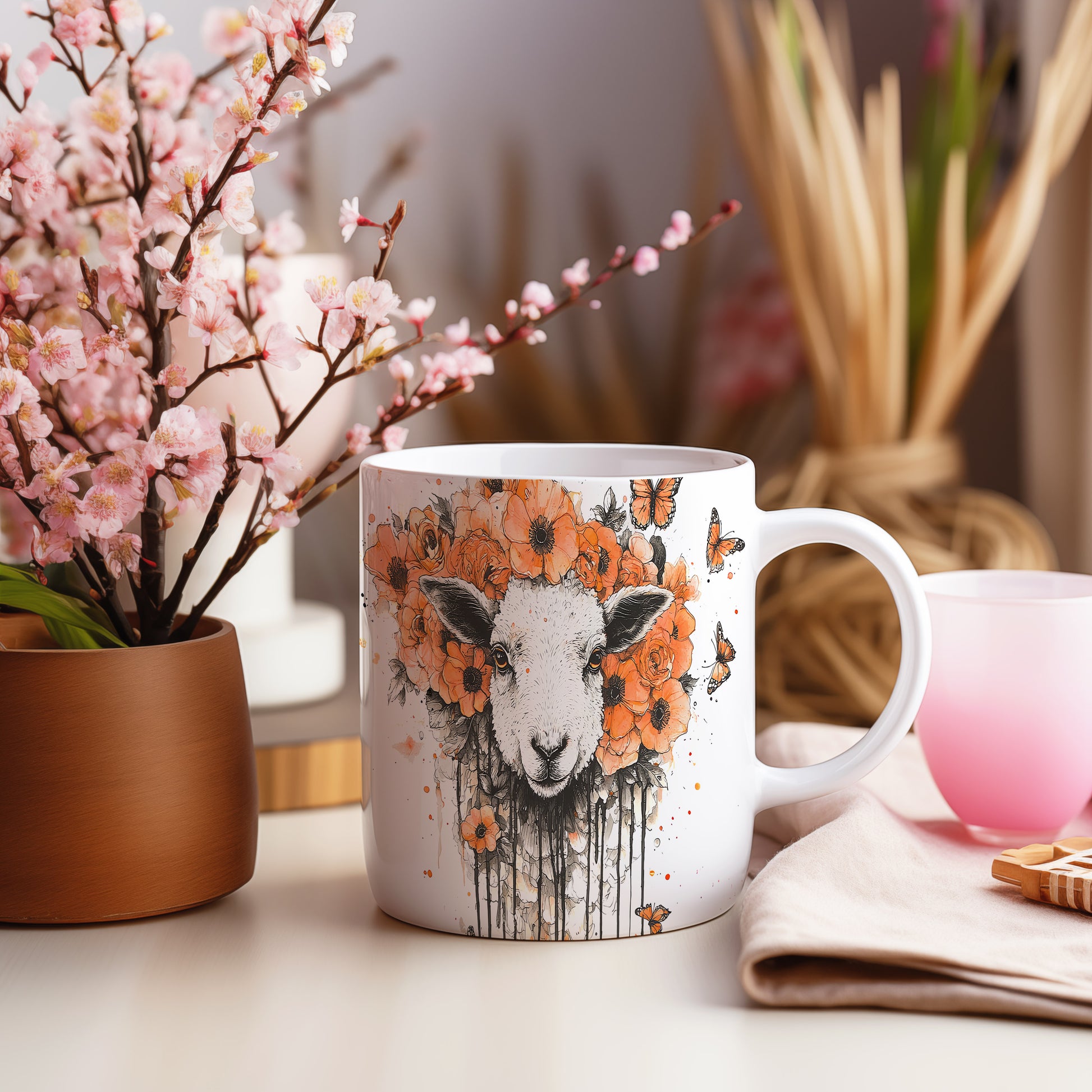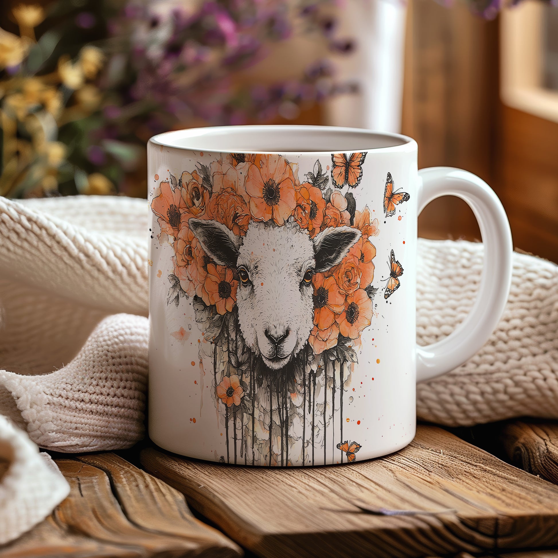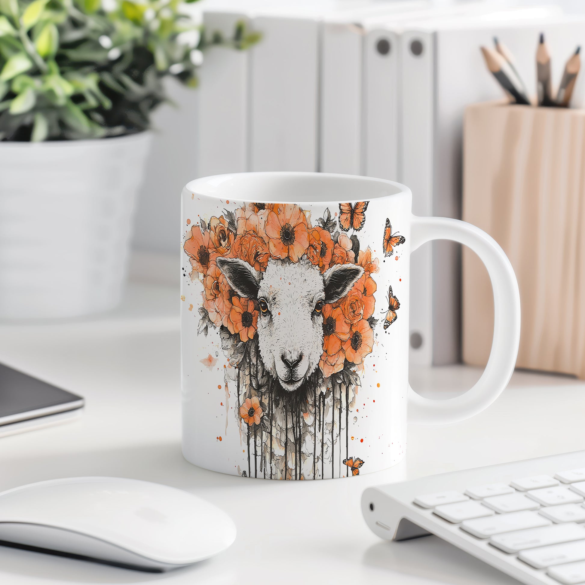 Tento hrnek s motivem ovečky a květin je skvělým doplňkem pro milovníky zvířat a přírody. Je ideální jako dárek pro přátele nebo rodinu, kteří ocení originální design. Materiál: keramika. Objem: 330 ml. Vhodné do myčky i mikrovlnky. Užívejte si svůj oblíbený nápoj s tímto veselým hrnkem, který přináší radost do každého dne.