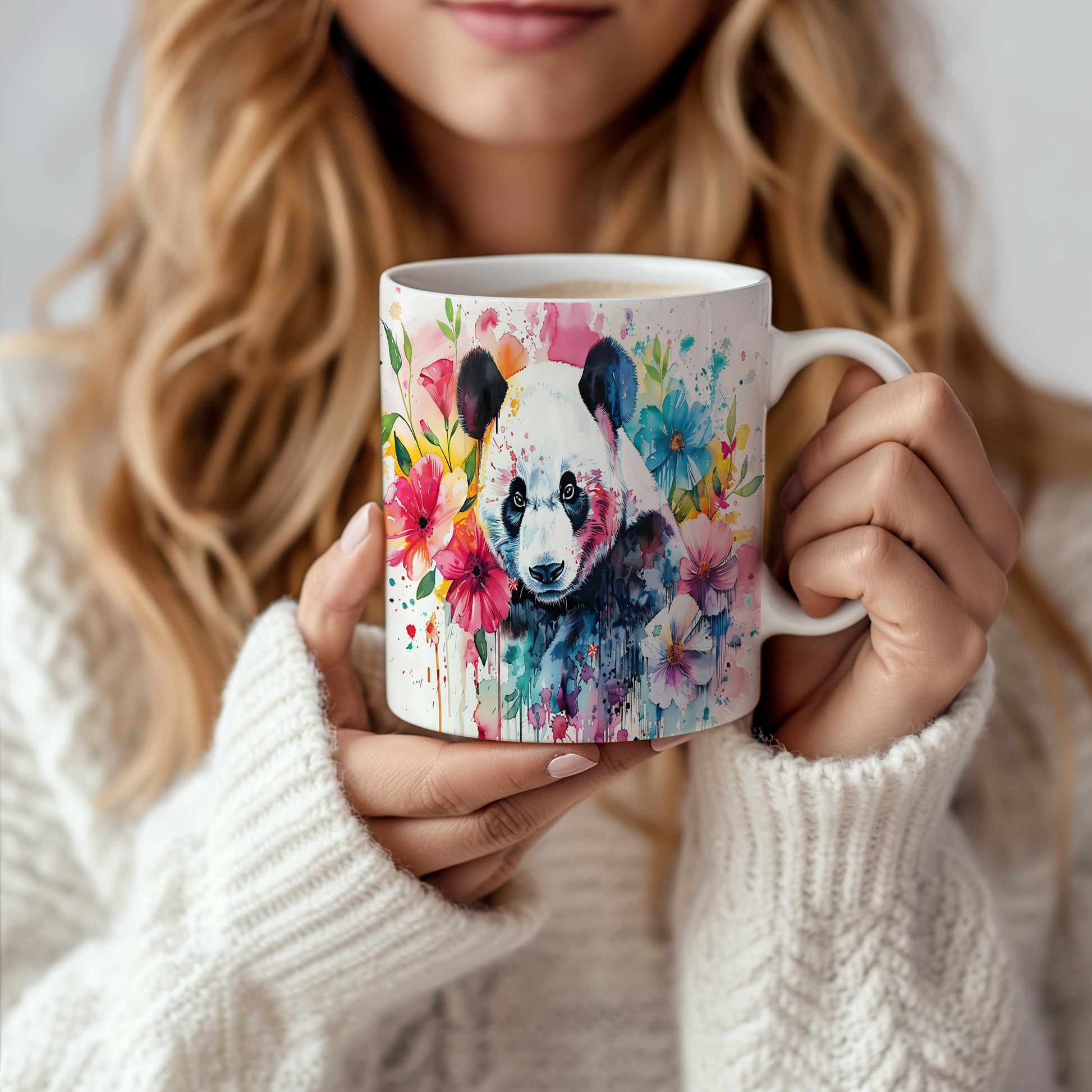 Hrnek s motivem pandy obklopené barevnými květinami, ideální pro milovníky přírody a zvířat. Tento hrnek je skvělým dárkem pro přátele nebo rodinu, kteří ocení originální design. Materiál: keramika. Objem: 330 ml. Vhodné do myčky i mikrovlnky. Díky svému jedinečnému vzhledu přináší radost při každém doušku.