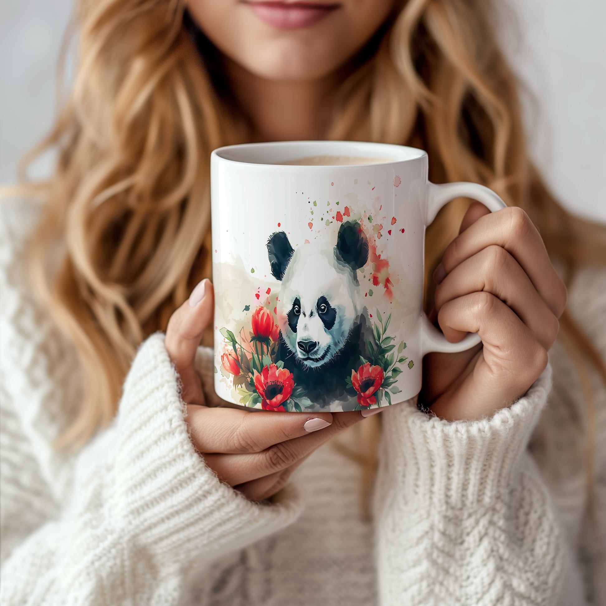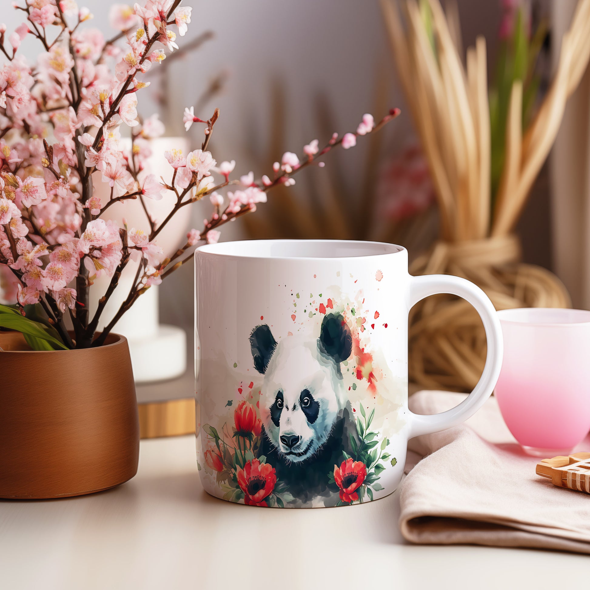 Stylový hrnek s motivem pandy a květin. Tento hrnek potěší všechny milovníky zvířat a přírody, skvělý tip na dárek pro přátele či rodinu. Materiál: keramika. Objem: 330 ml. Vhodné do myčky i mikrovlnky. Užijte si každé sousto s tímto jedinečným hrnkem.