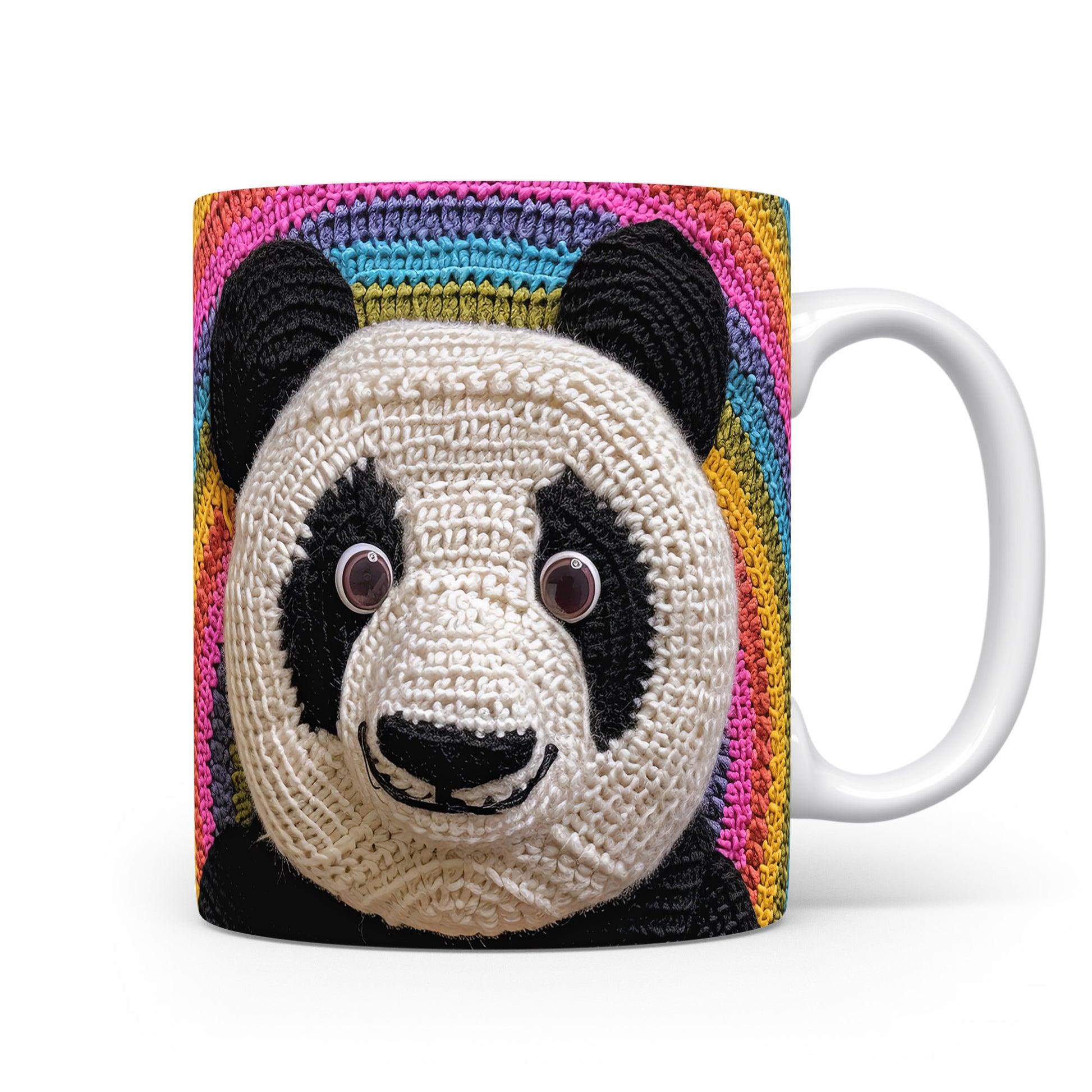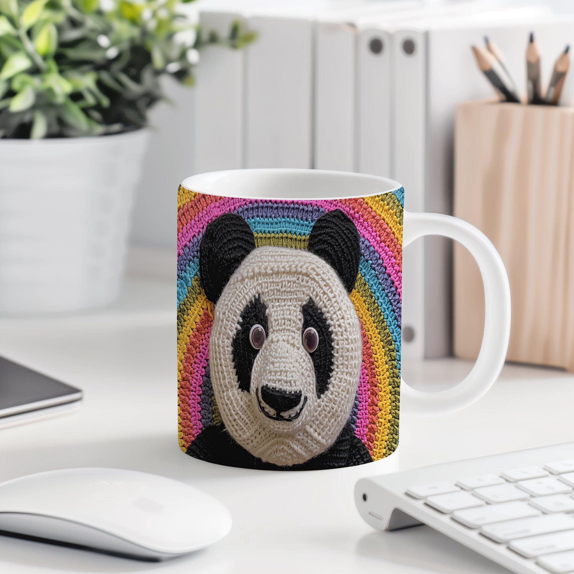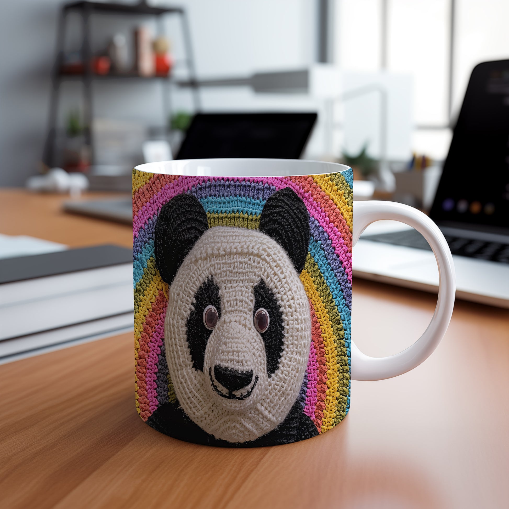 Hrnek s pandou na barevném pozadí
