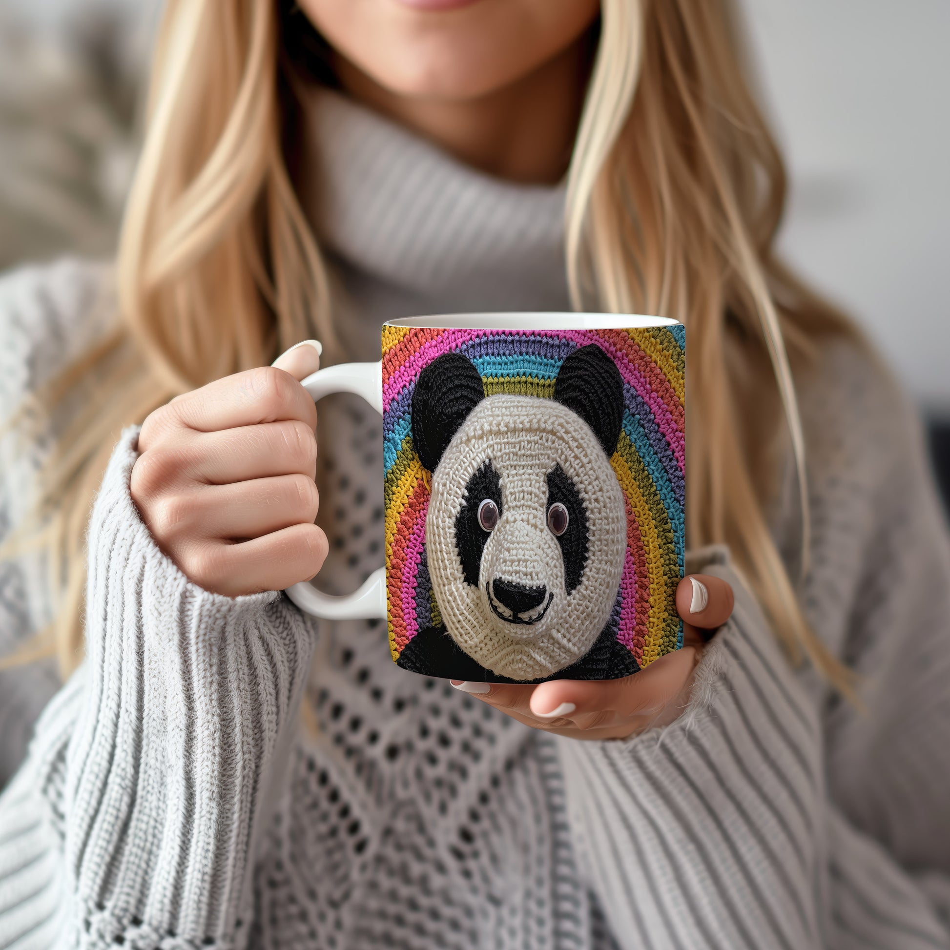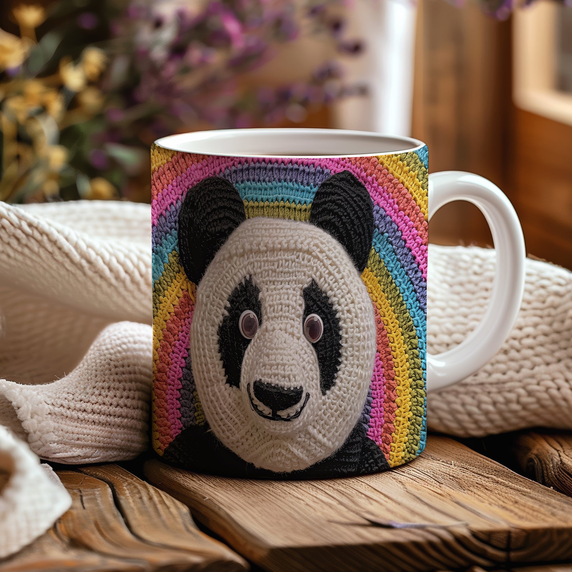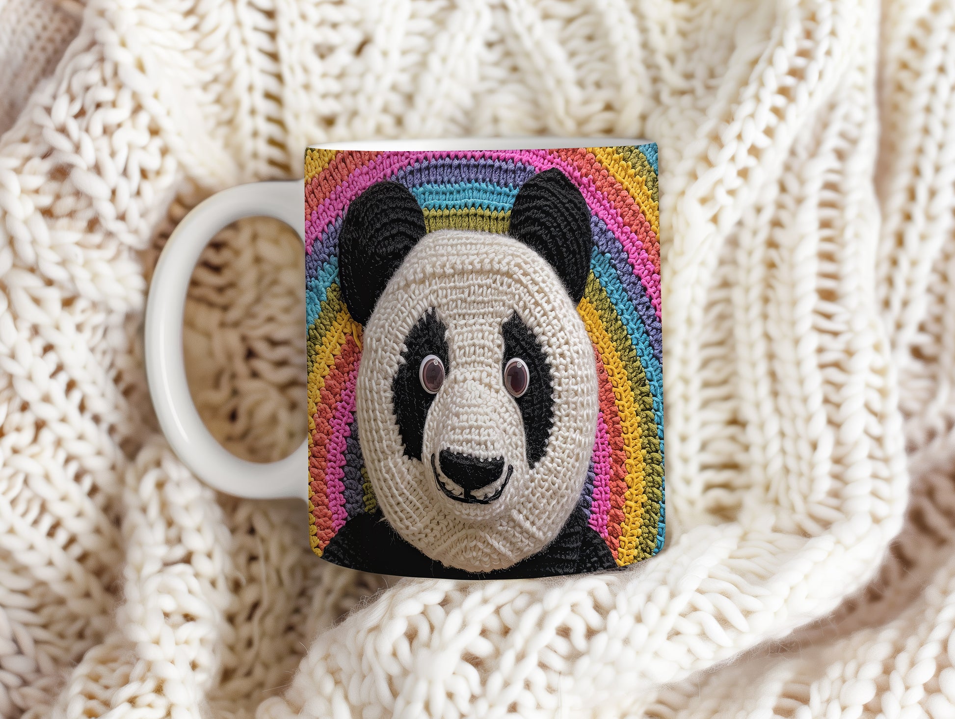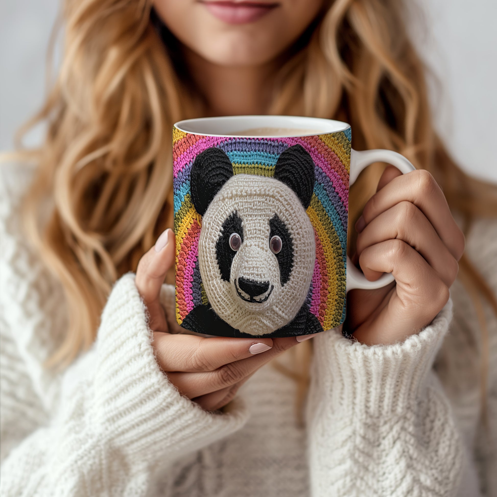 Hrnek s pandou na barevném pozadí