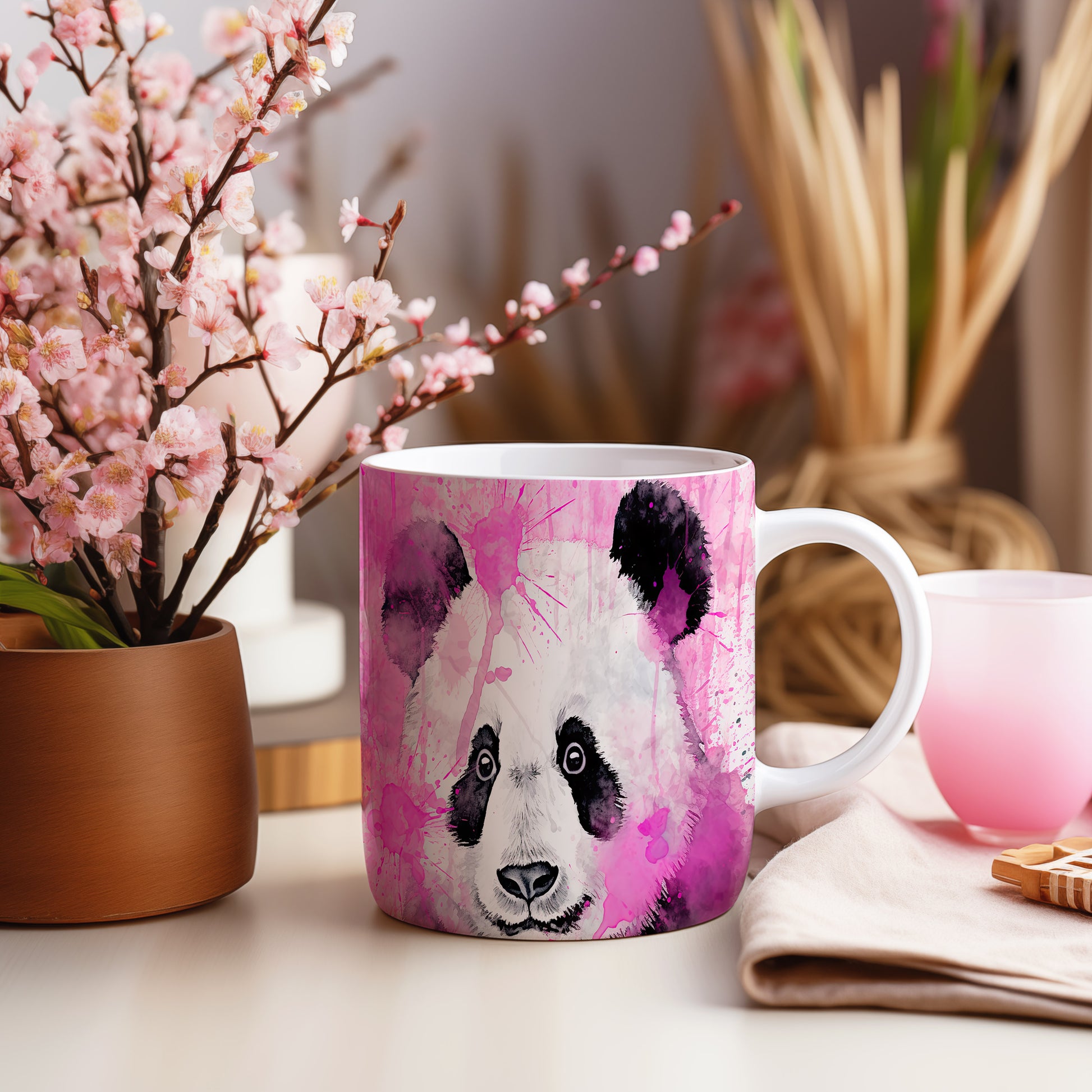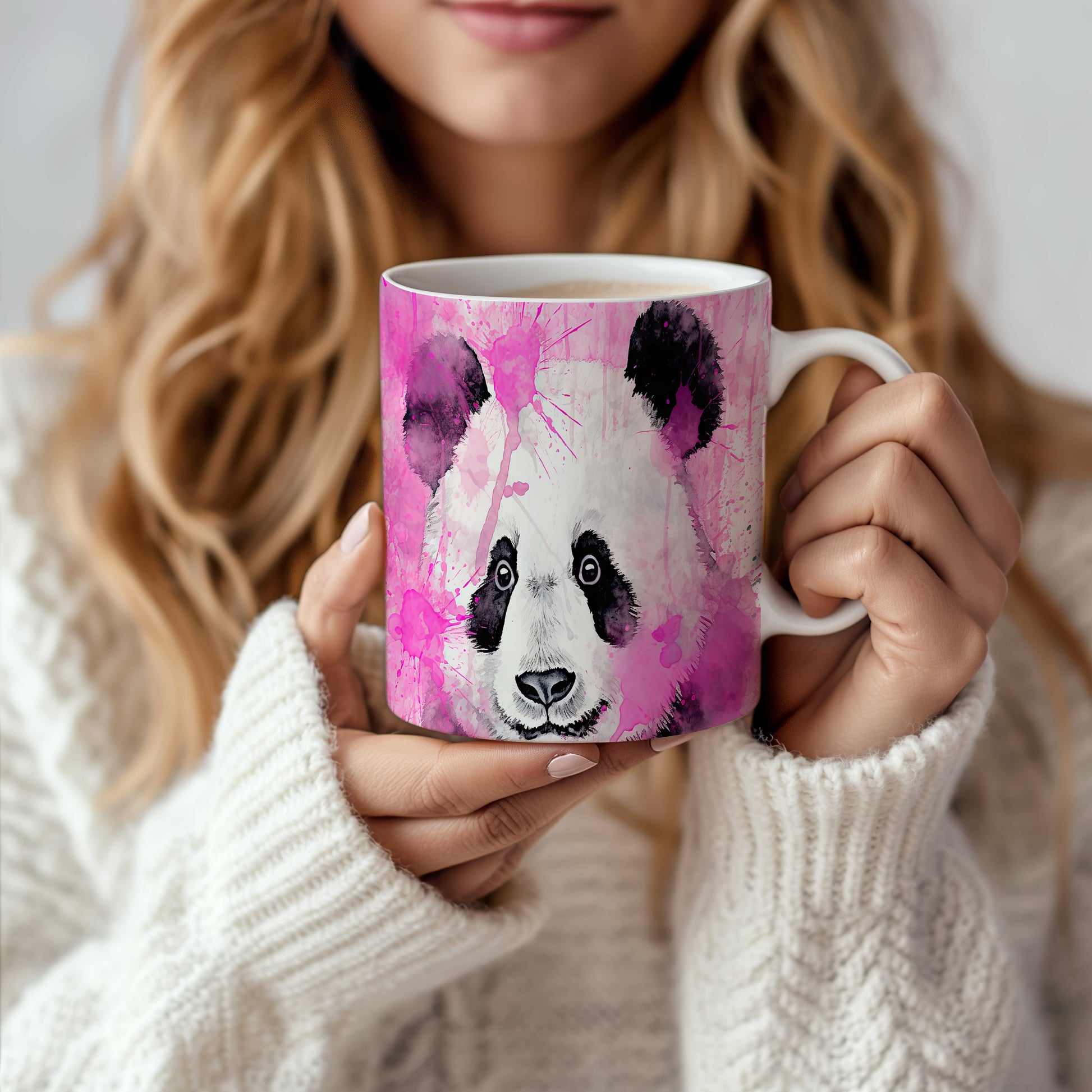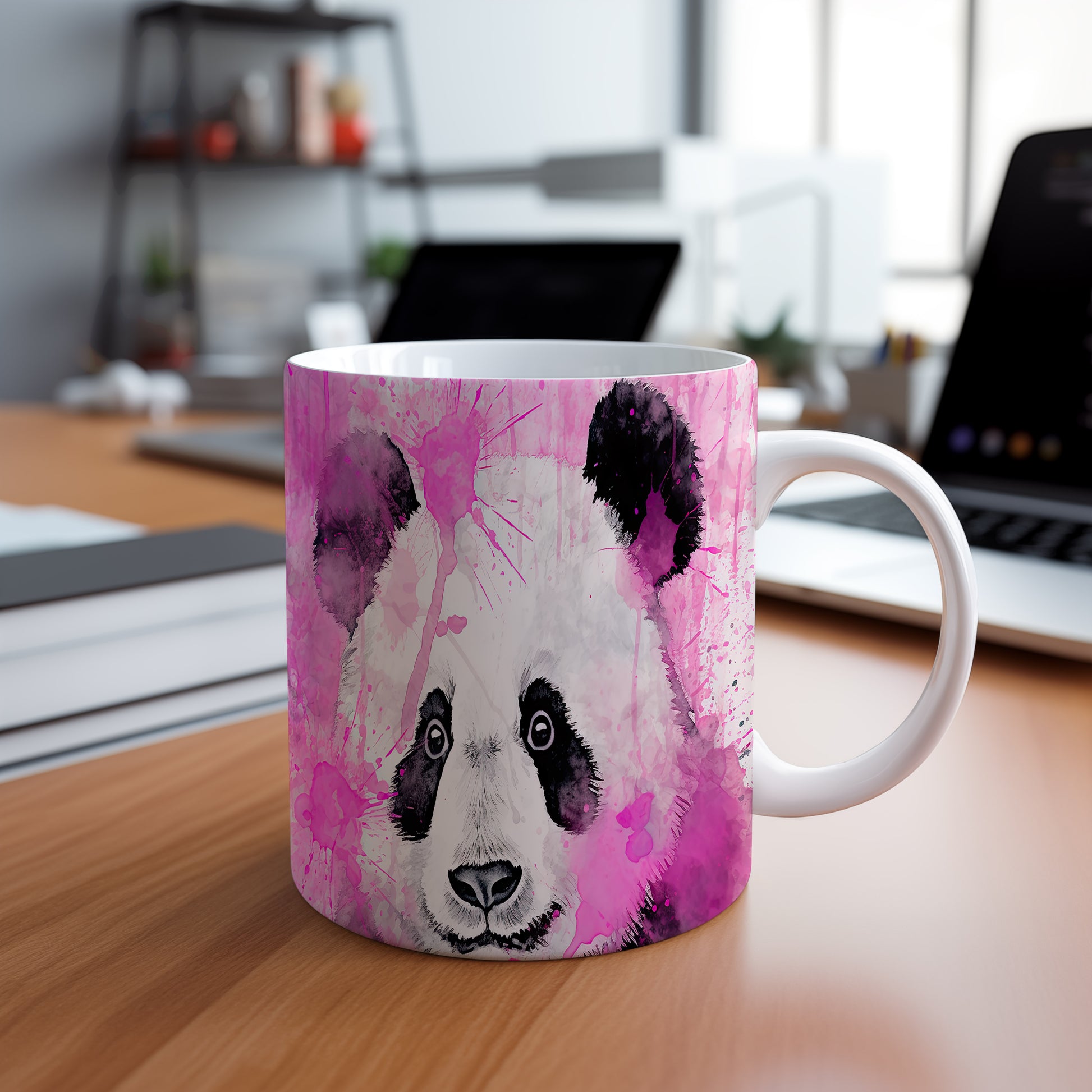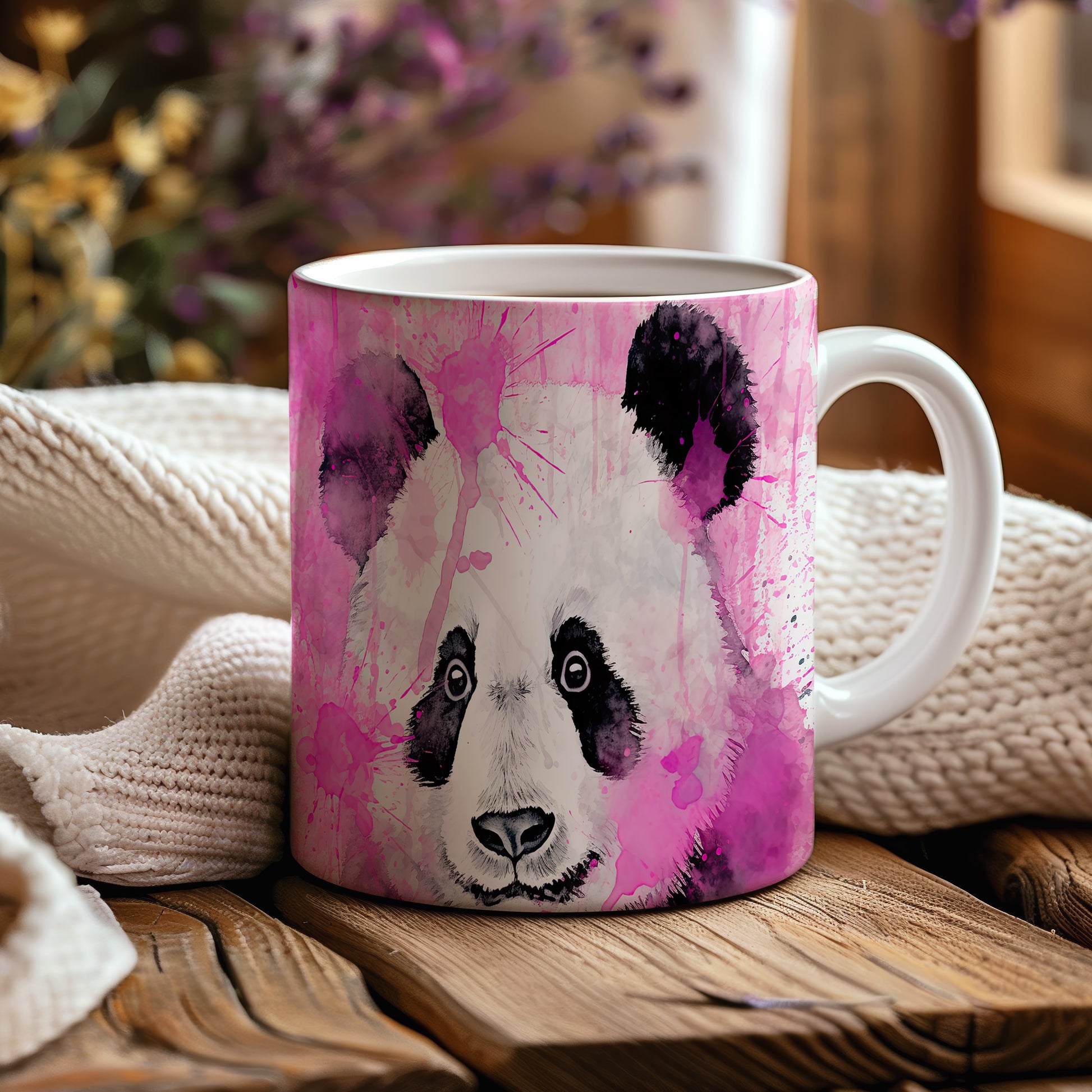 Hrnek s pandou na barevném pozadí – akvarelovým motivem