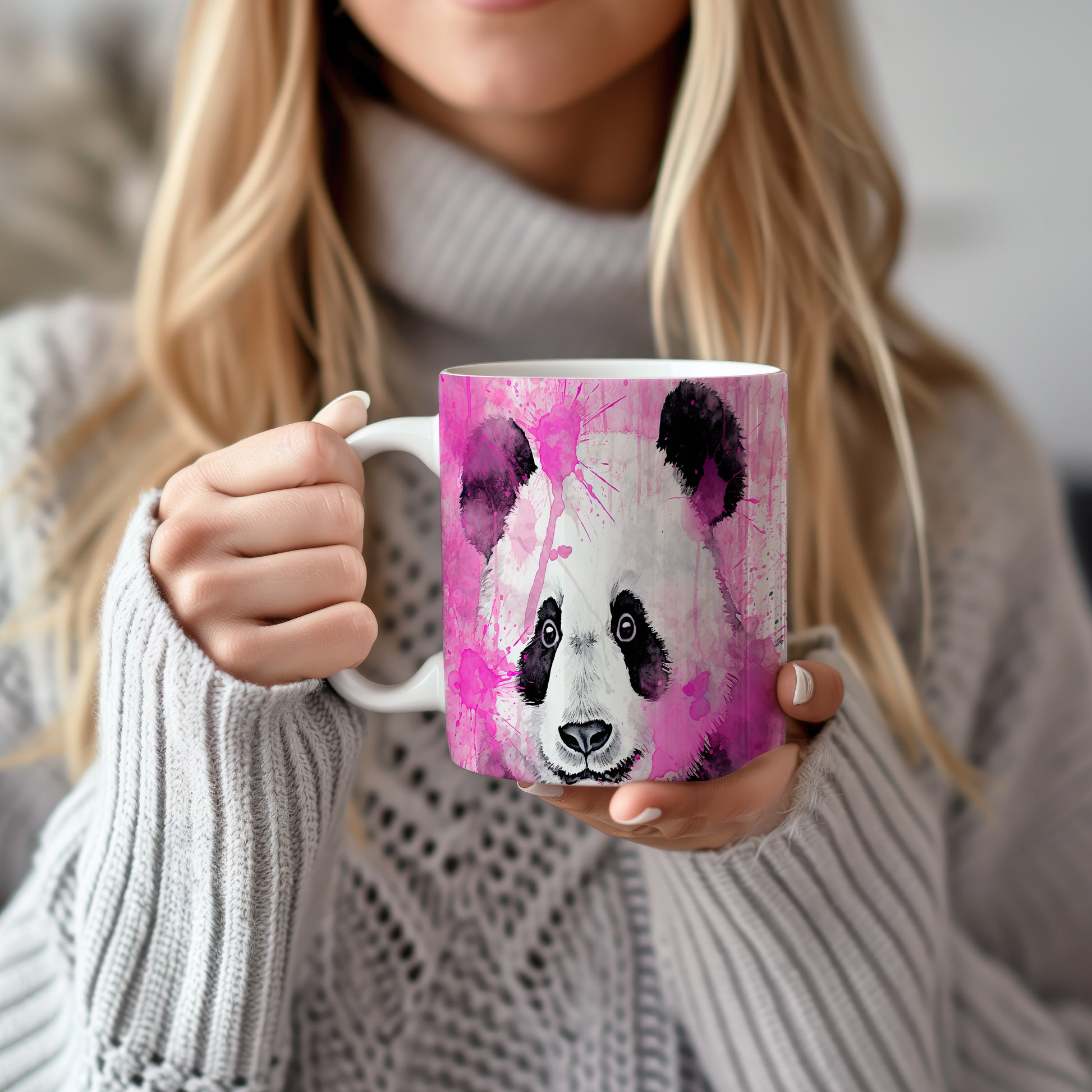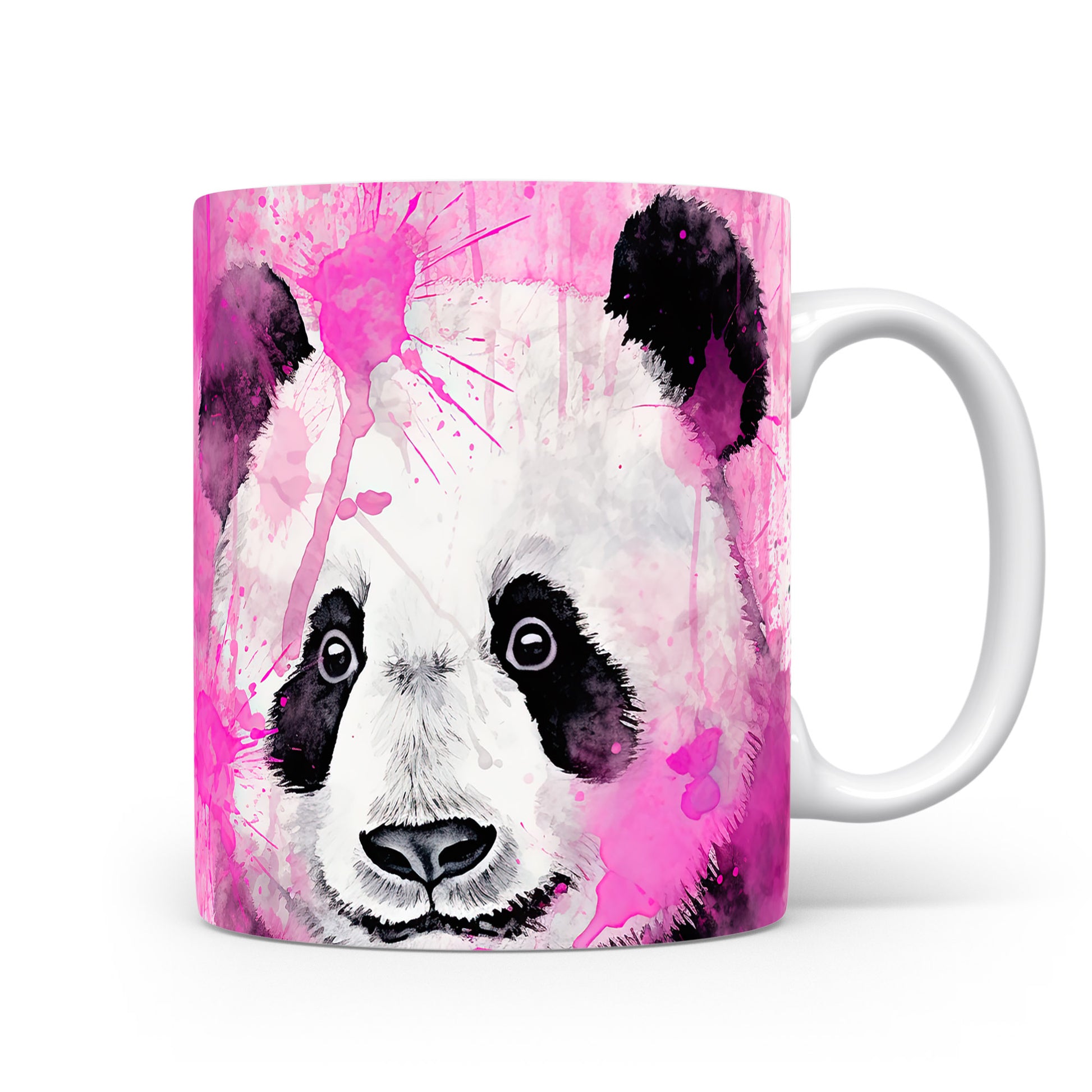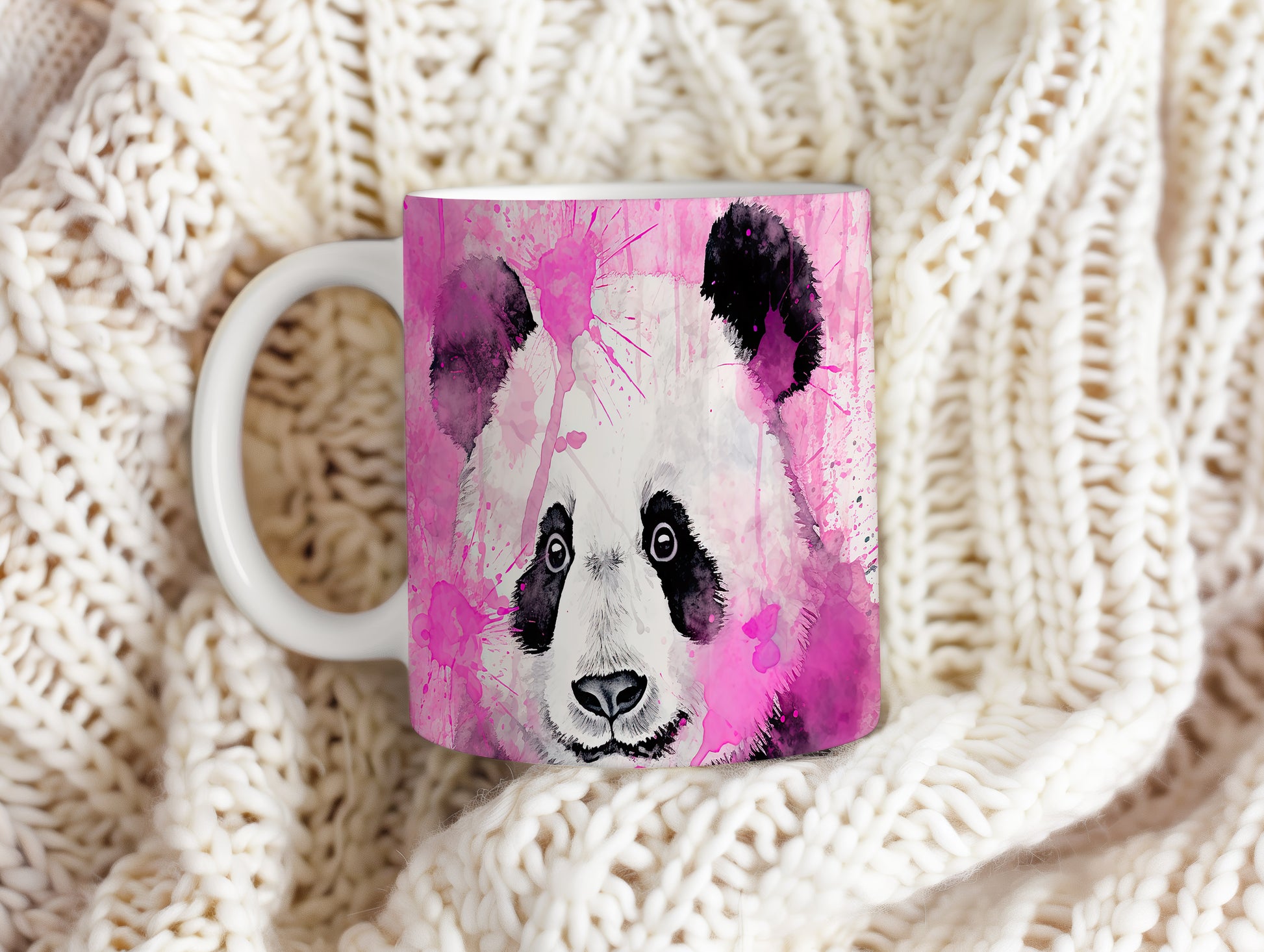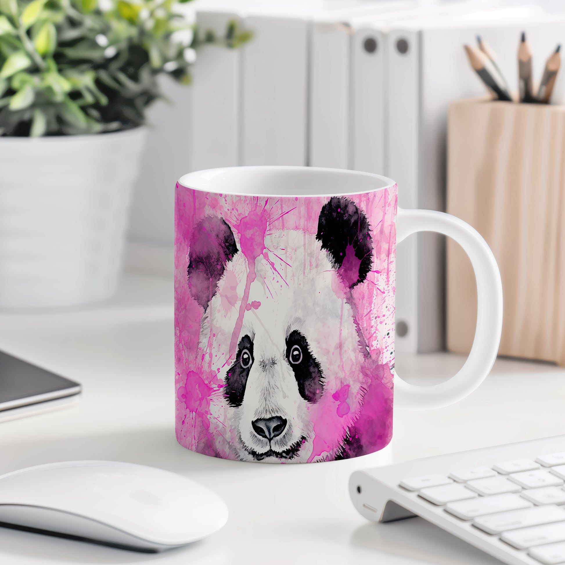 Hrnek s pandou na barevném pozadí – akvarelovým motivem