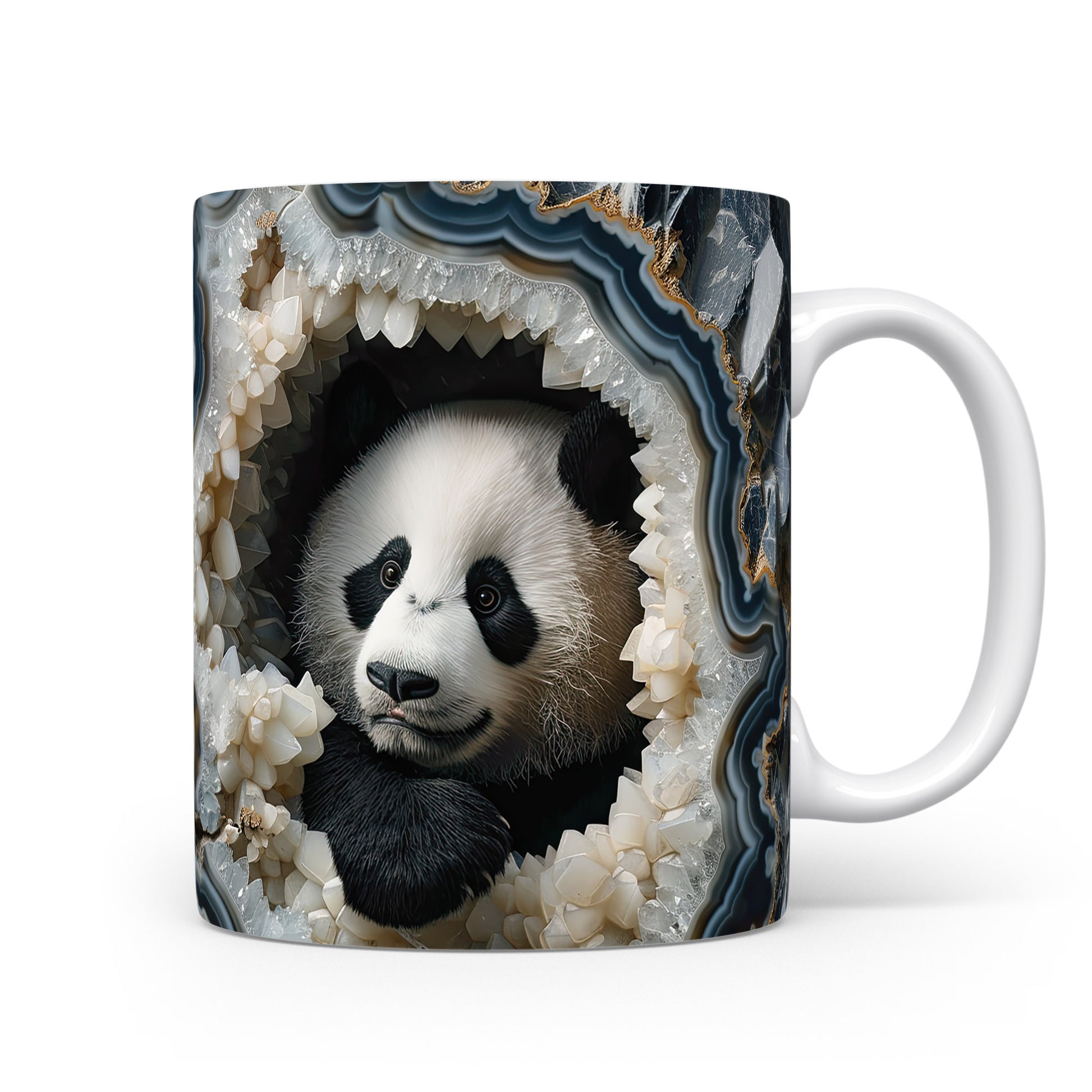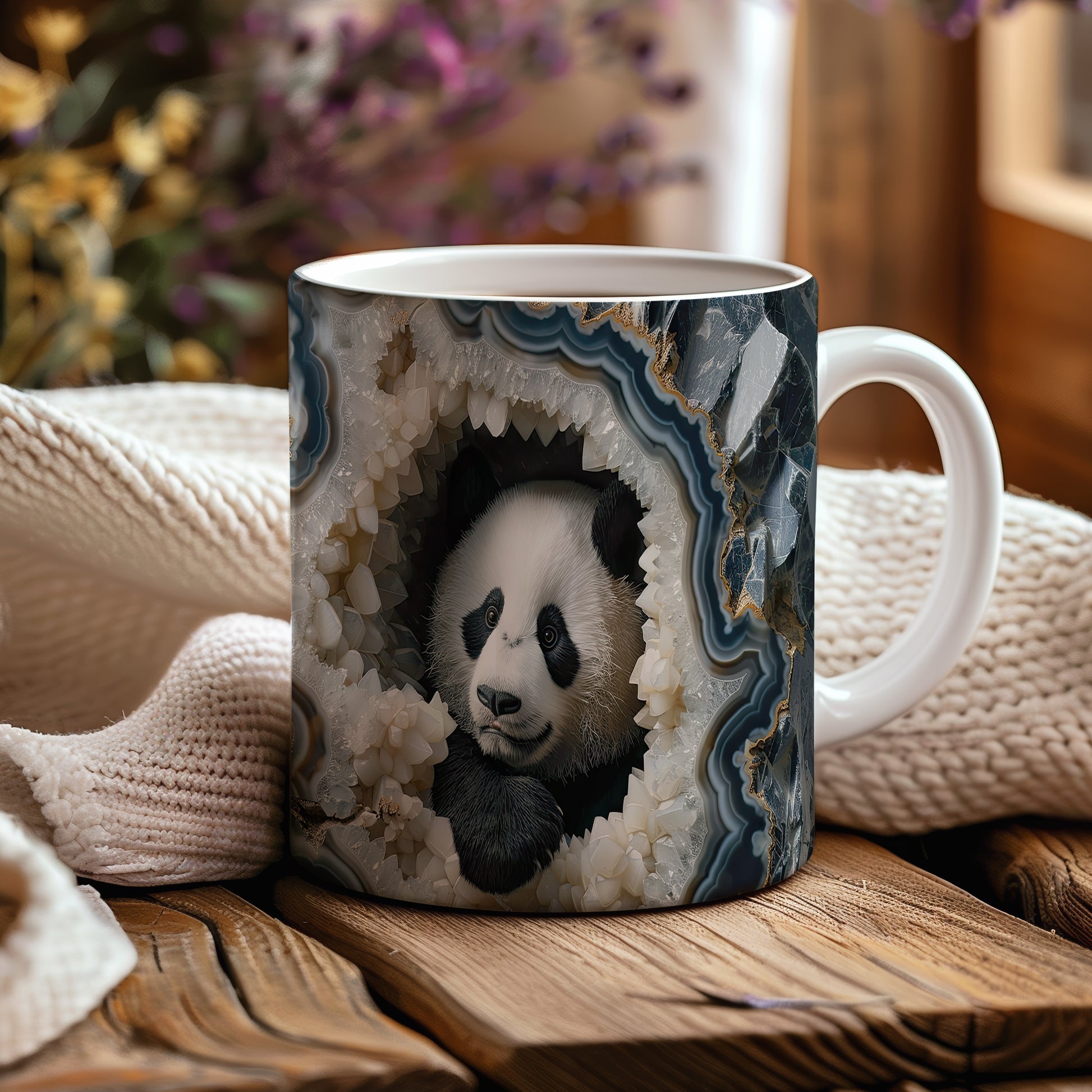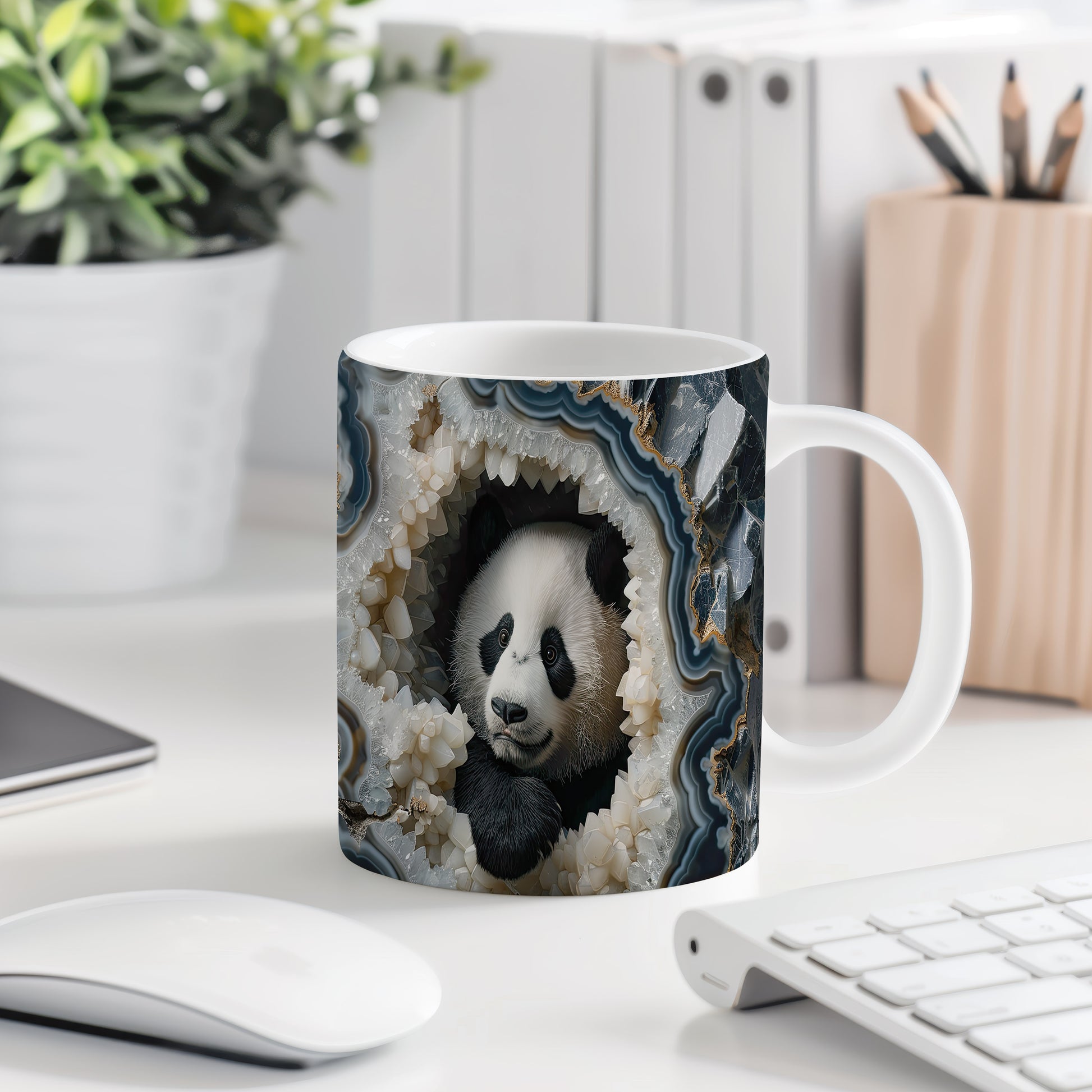Hrnek s pandou v krystalové jeskyni – malířským vzhledem