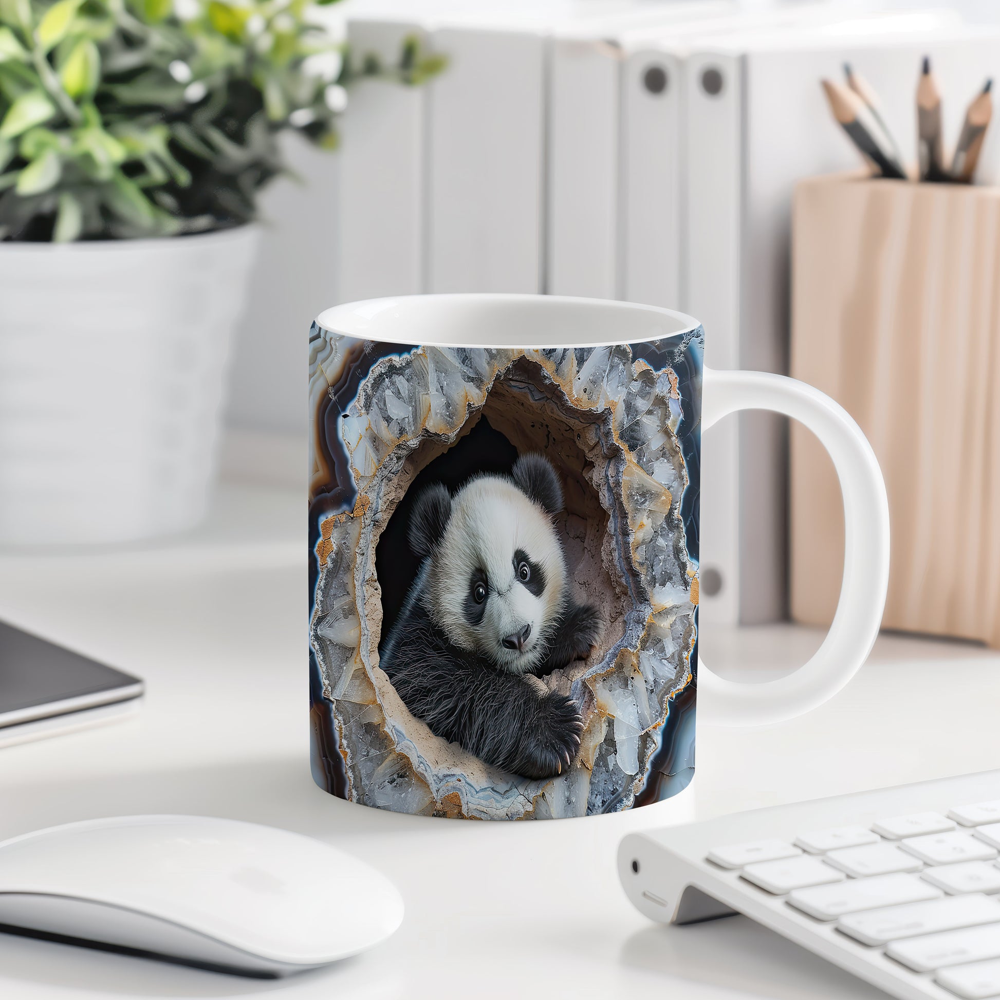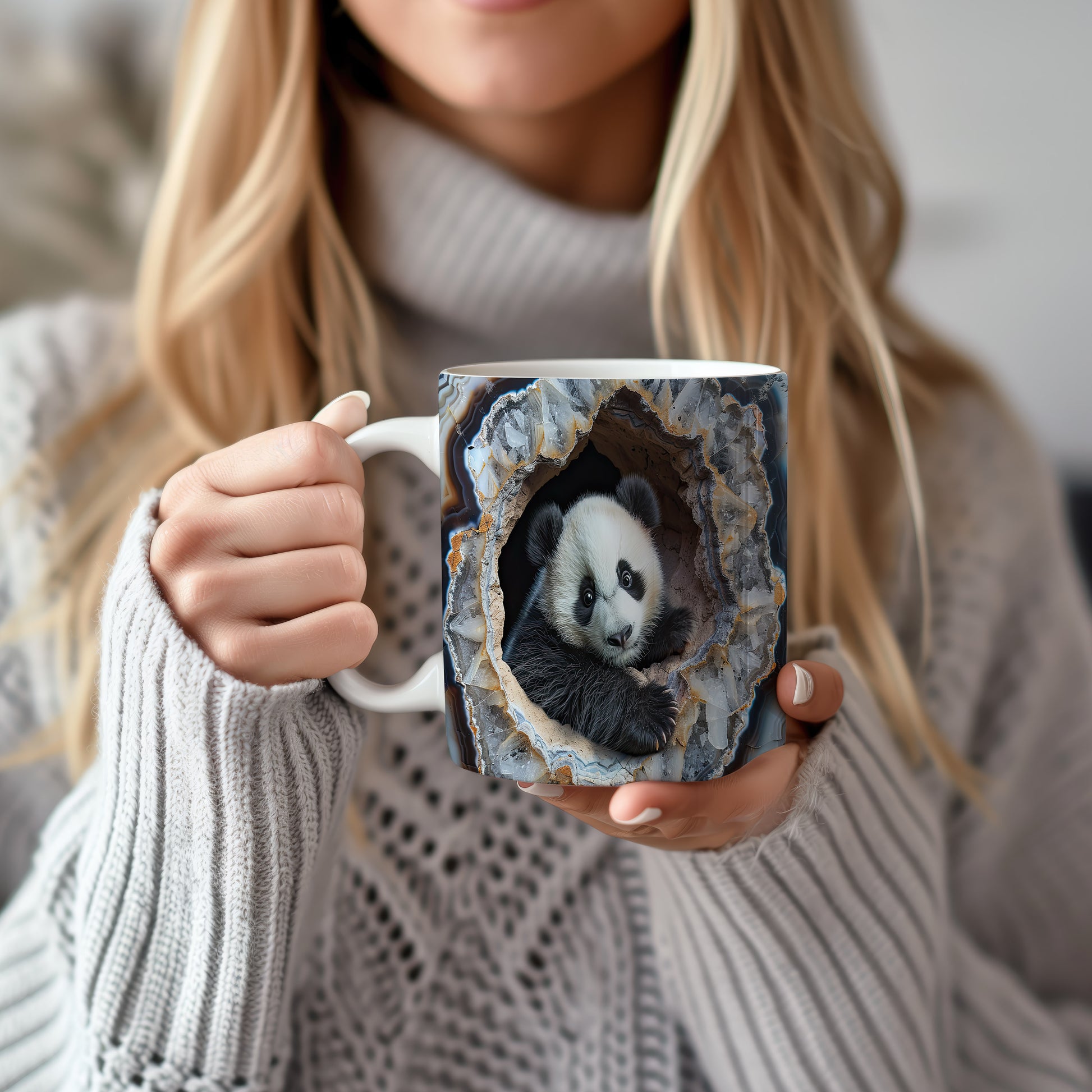 Hrnek s realistickým motivem pandy v přírodní dutině je skvělou volbou pro milovníky zvířat a přírody. Tento hrnek potěší každého, kdo hledá originální dárek pro své blízké. Materiál: keramika. Objem: 330 ml. Vhodné do myčky i mikrovlnky. Užijte si svůj oblíbený nápoj s tímto jedinečným designem, který přináší příjemnou atmosféru do každého dne.
