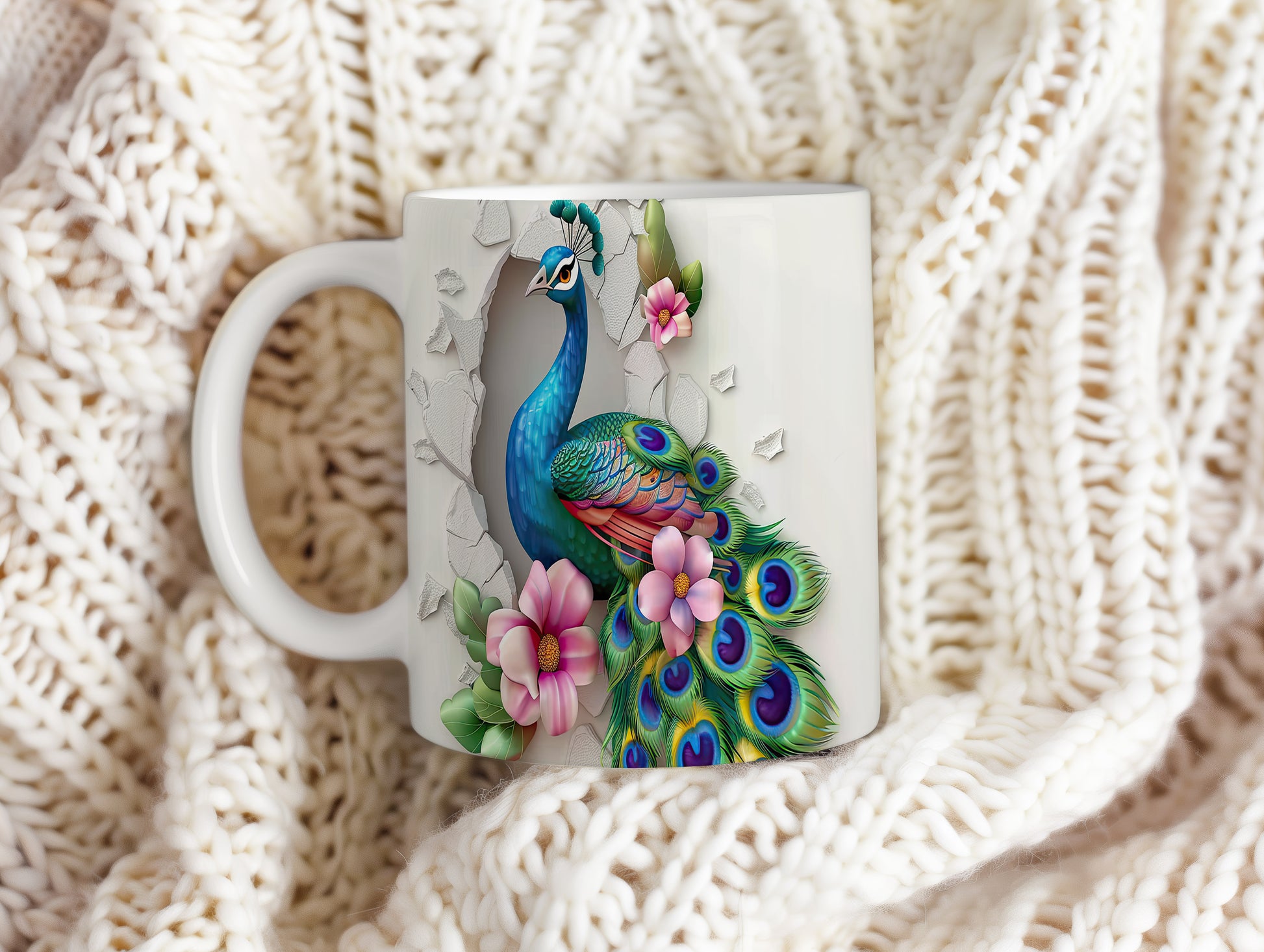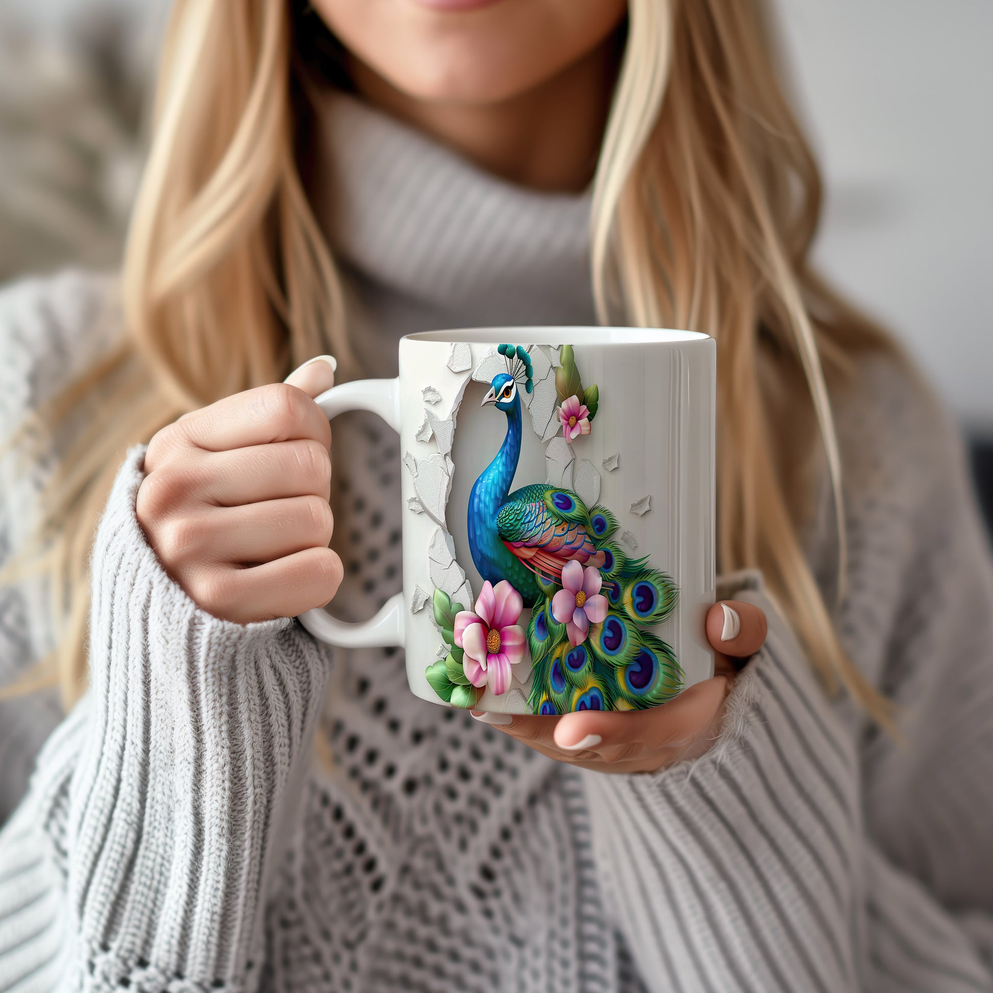Elegantní hrnek s motivem páva obklopeného květinami. Tento stylový kousek je ideální pro milovníky krásného designu a skvěle se hodí jako dárek pro přátele nebo rodinu. Materiál: keramika. Objem: 330 ml. Vhodné do myčky i mikrovlnky. Díky svému jedinečnému vzhledu oživí každý stůl a přinese do vašeho domova nádech elegance.