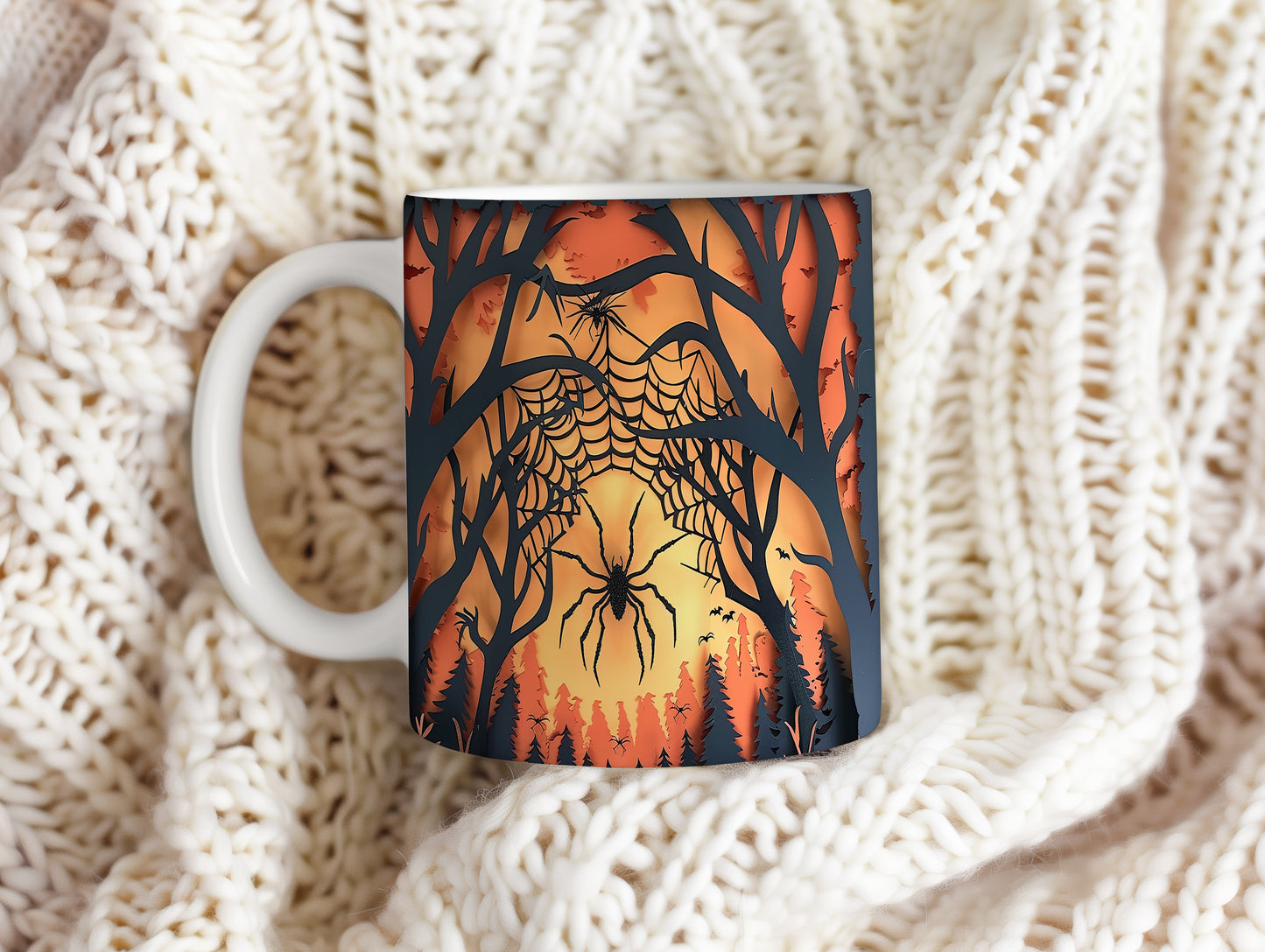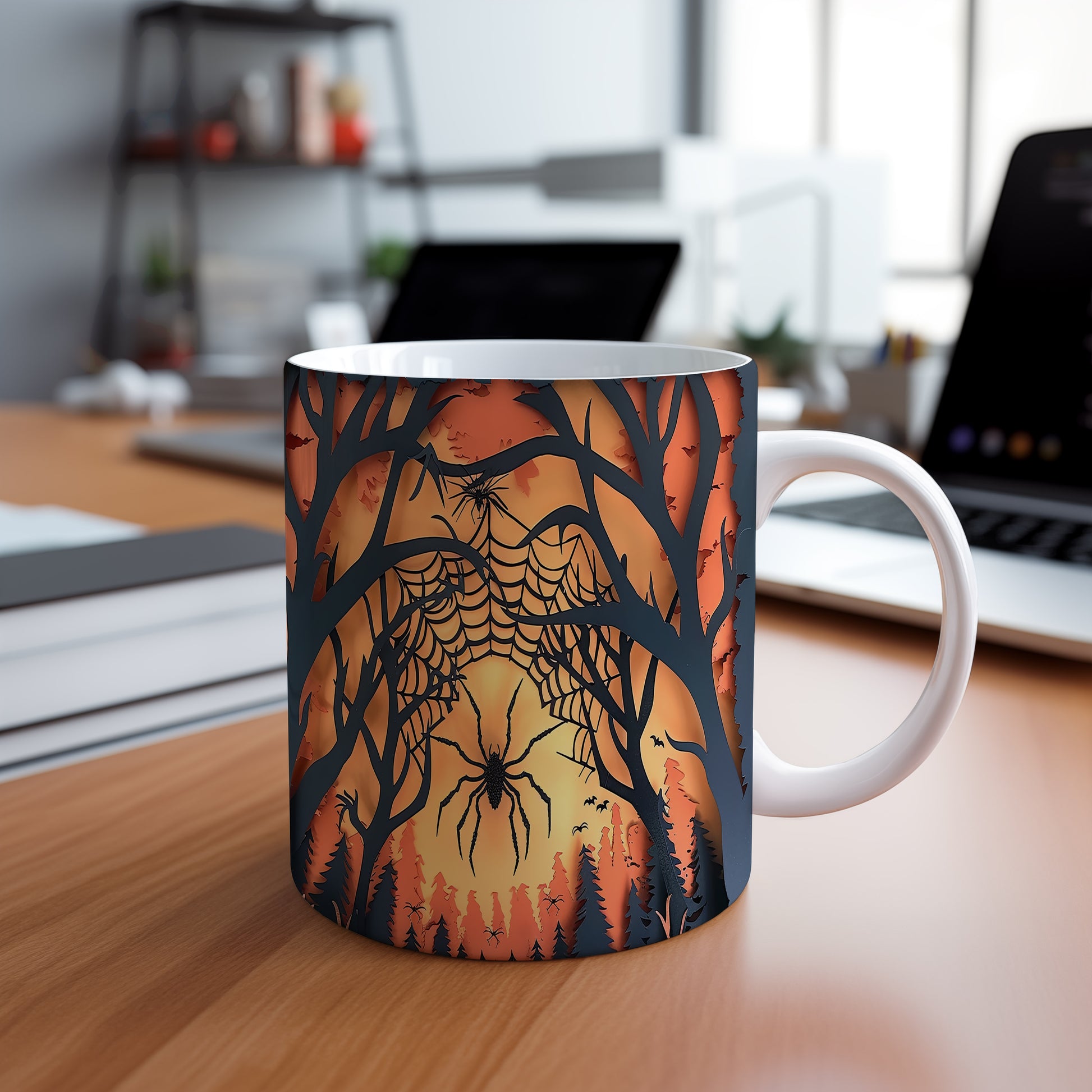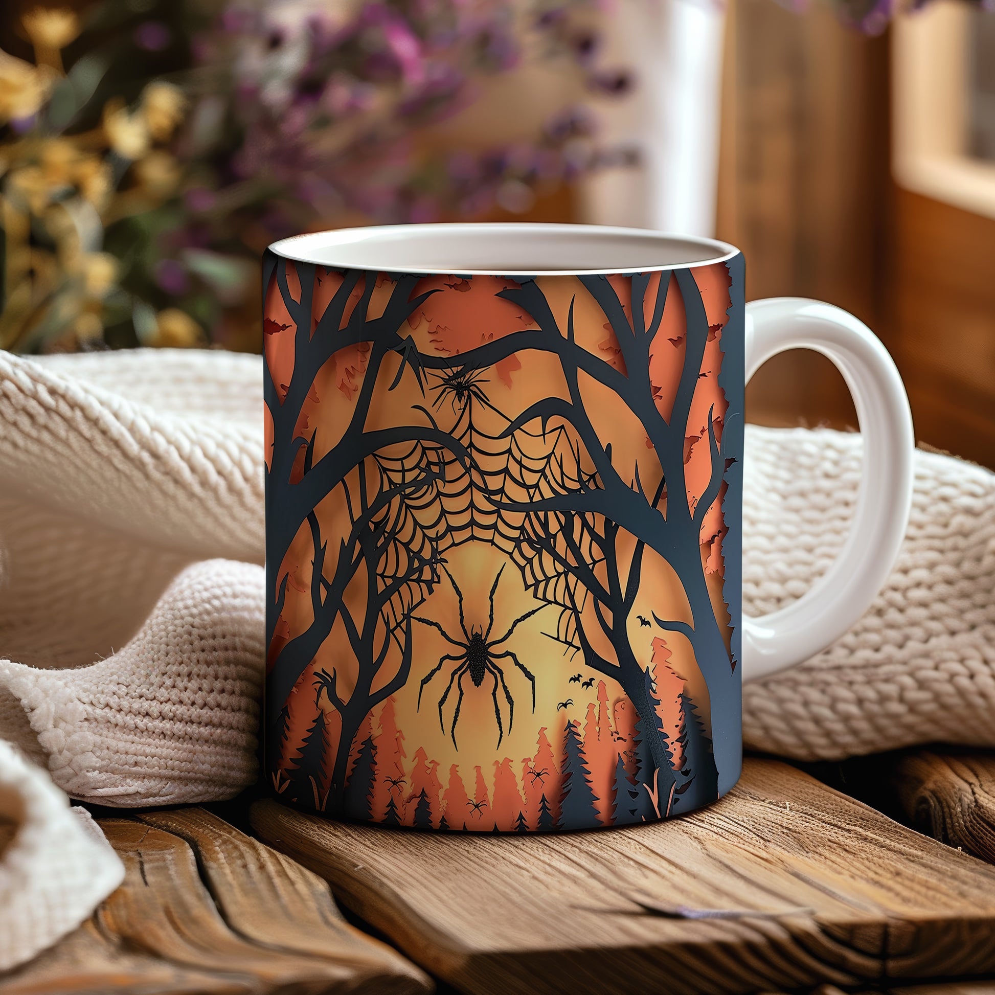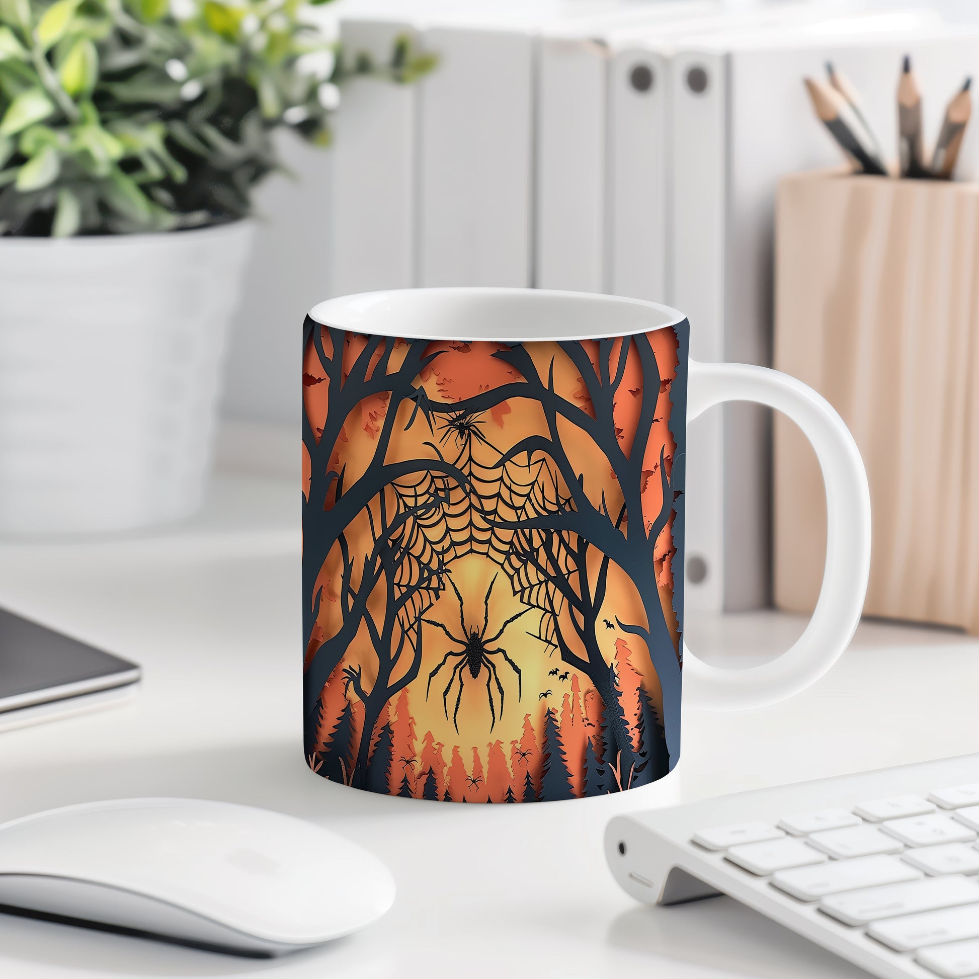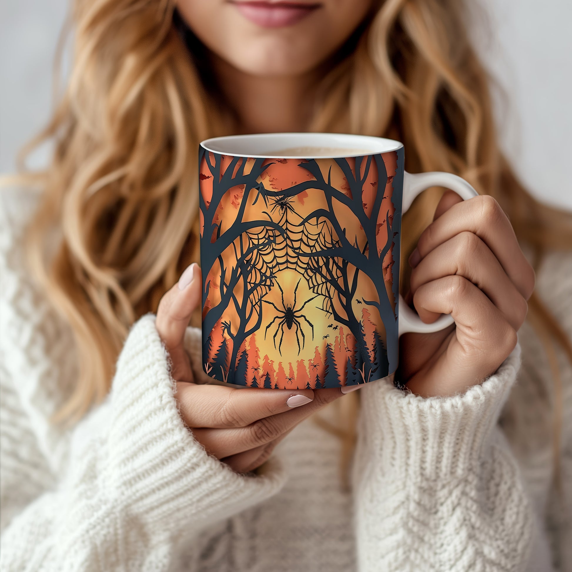 Keramický hrnek s motivem pavučiny a pavouka v podzimních barvách. Tento hrnek je ideální pro milovníky hororu a podzimní atmosféry, skvělý tip na dárek pro přátele nebo rodinu. Materiál: keramika. Objem: 330 ml. Vhodné do myčky i mikrovlnky. Používání tohoto hrnku přináší jedinečný zážitek z pití, který oživí každé podzimní ráno.