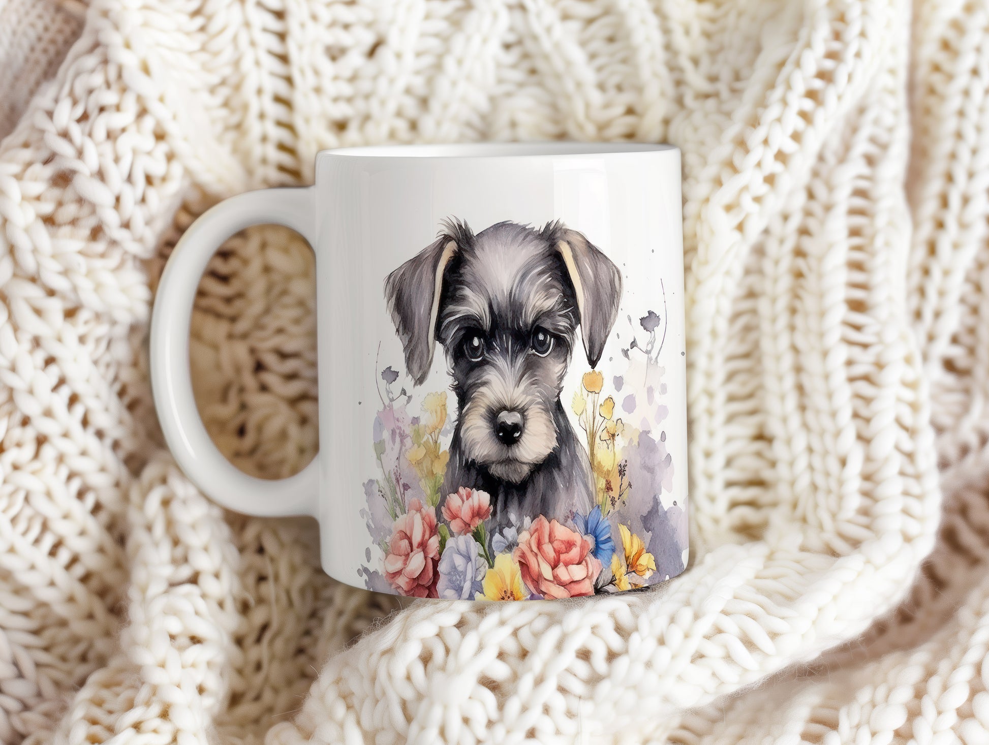 Keramický hrnek s motivem roztomilého pejska a barevných květin. Tento hrnek je ideální pro milovníky zvířat a skvělým dárkem pro přátele nebo rodinu. Materiál: keramika. Objem: 330 ml. Vhodné do myčky i mikrovlnky. Při každém doušku vám přinese radost a útulnost.
