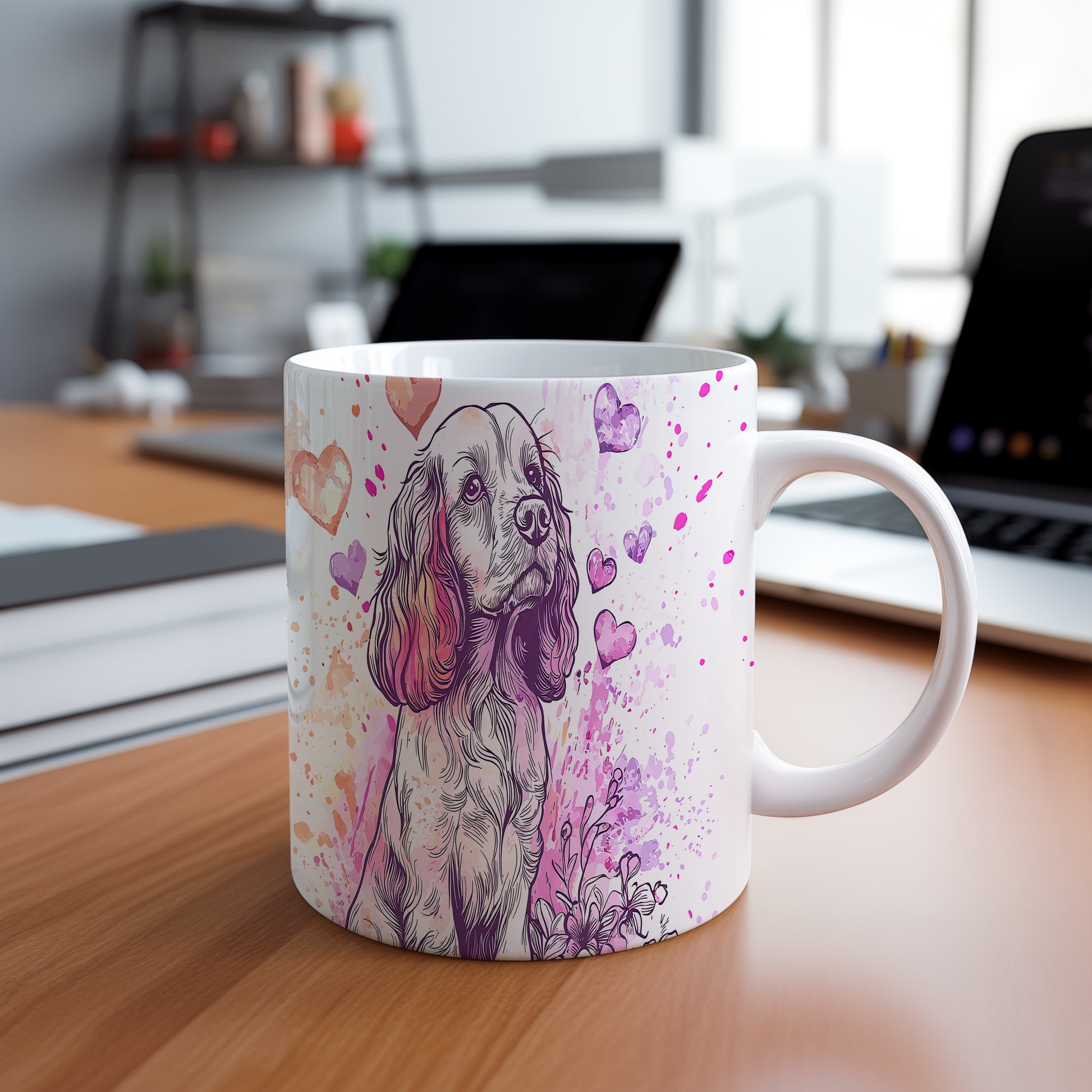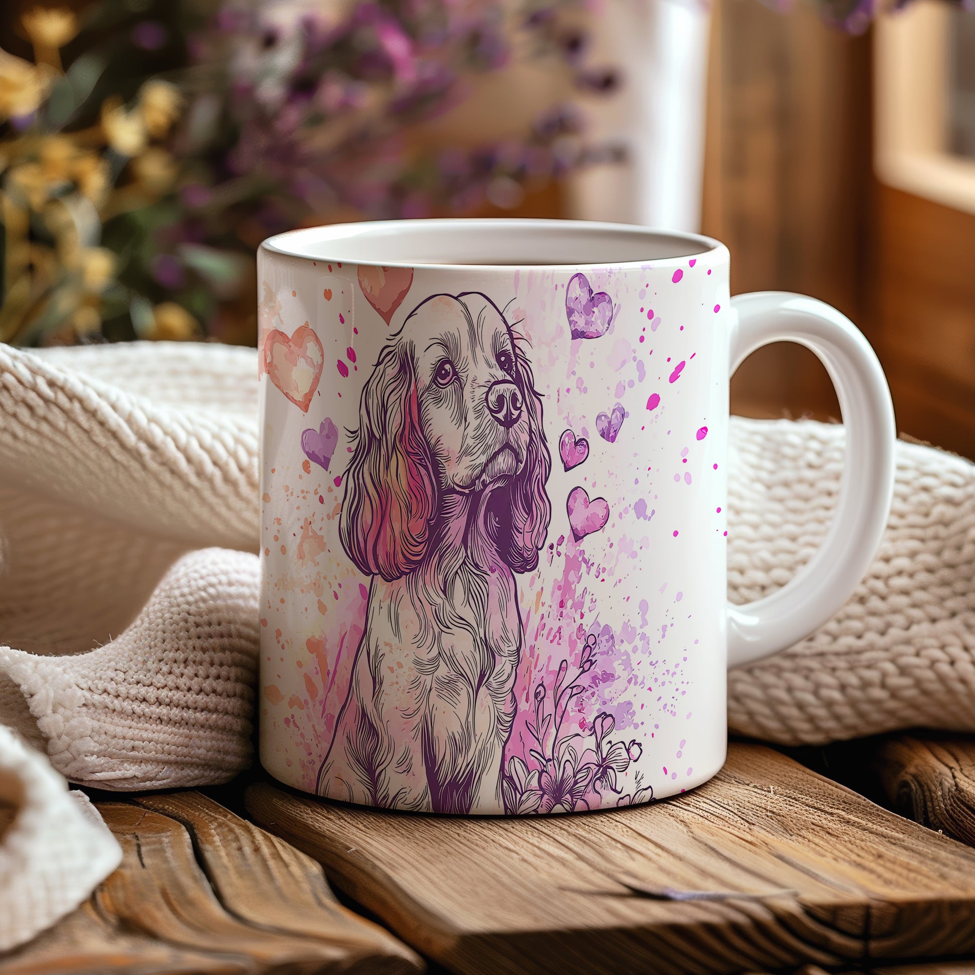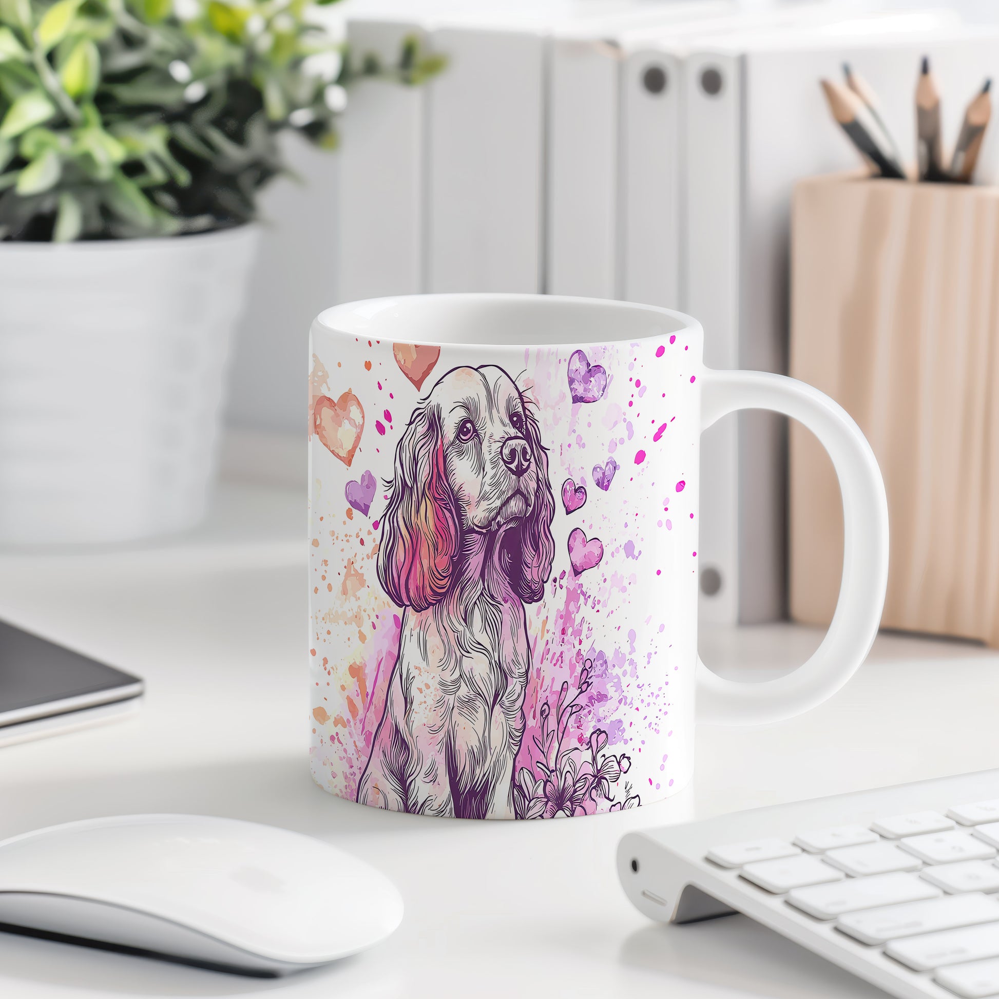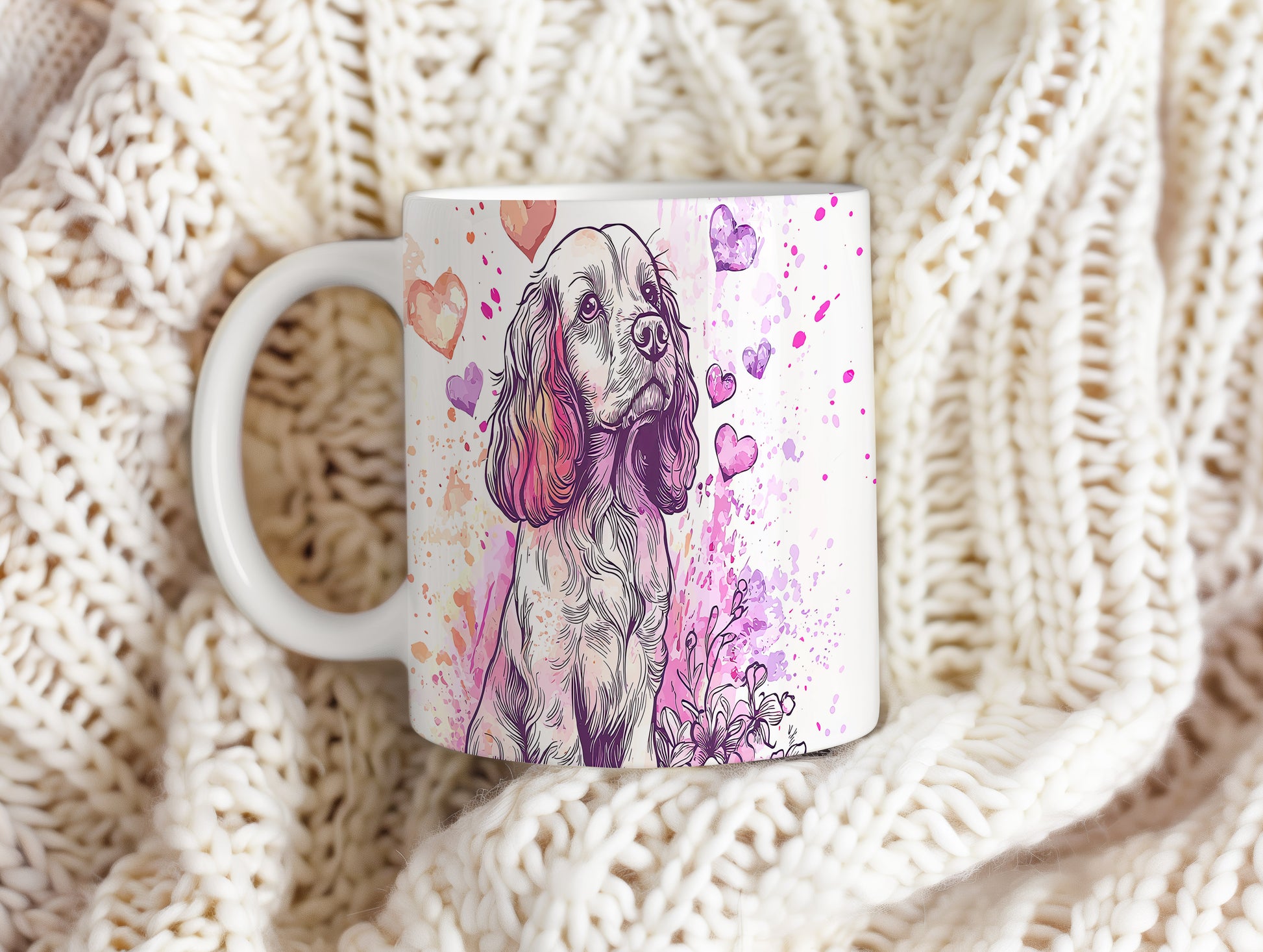Hrnek s Kokršpanělem a srdíčky v růžových tónech