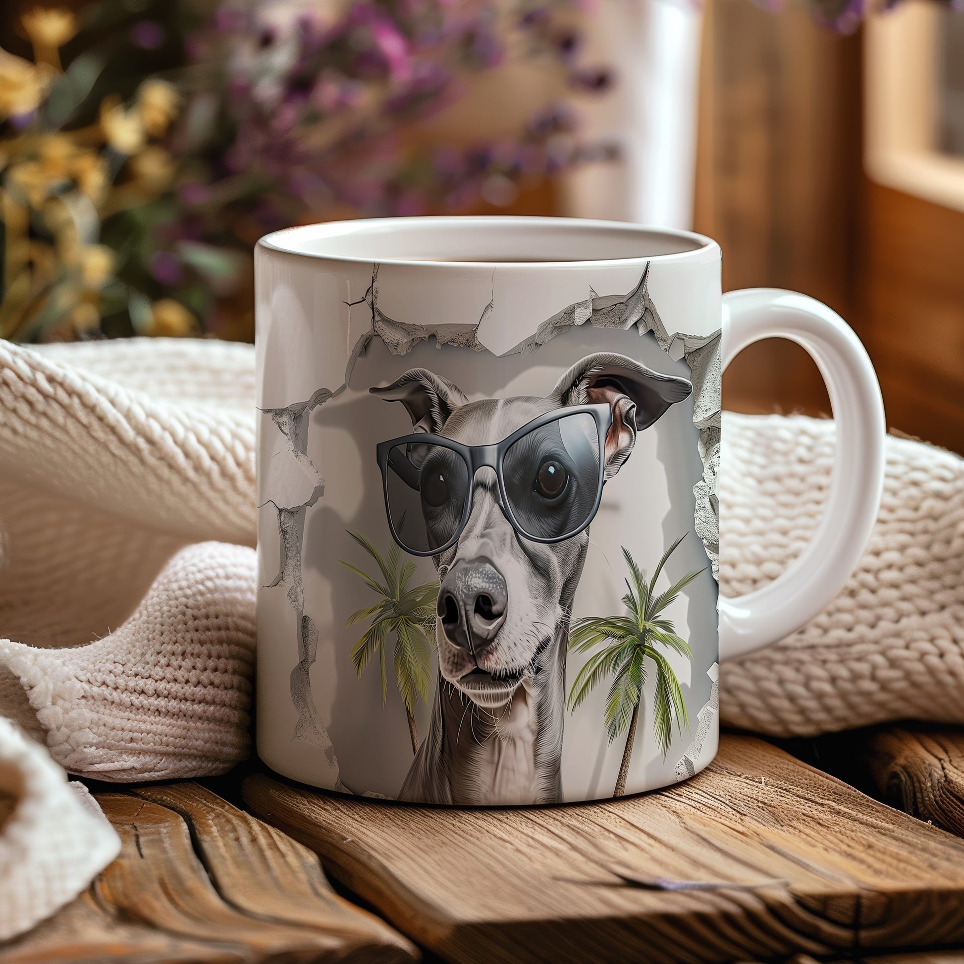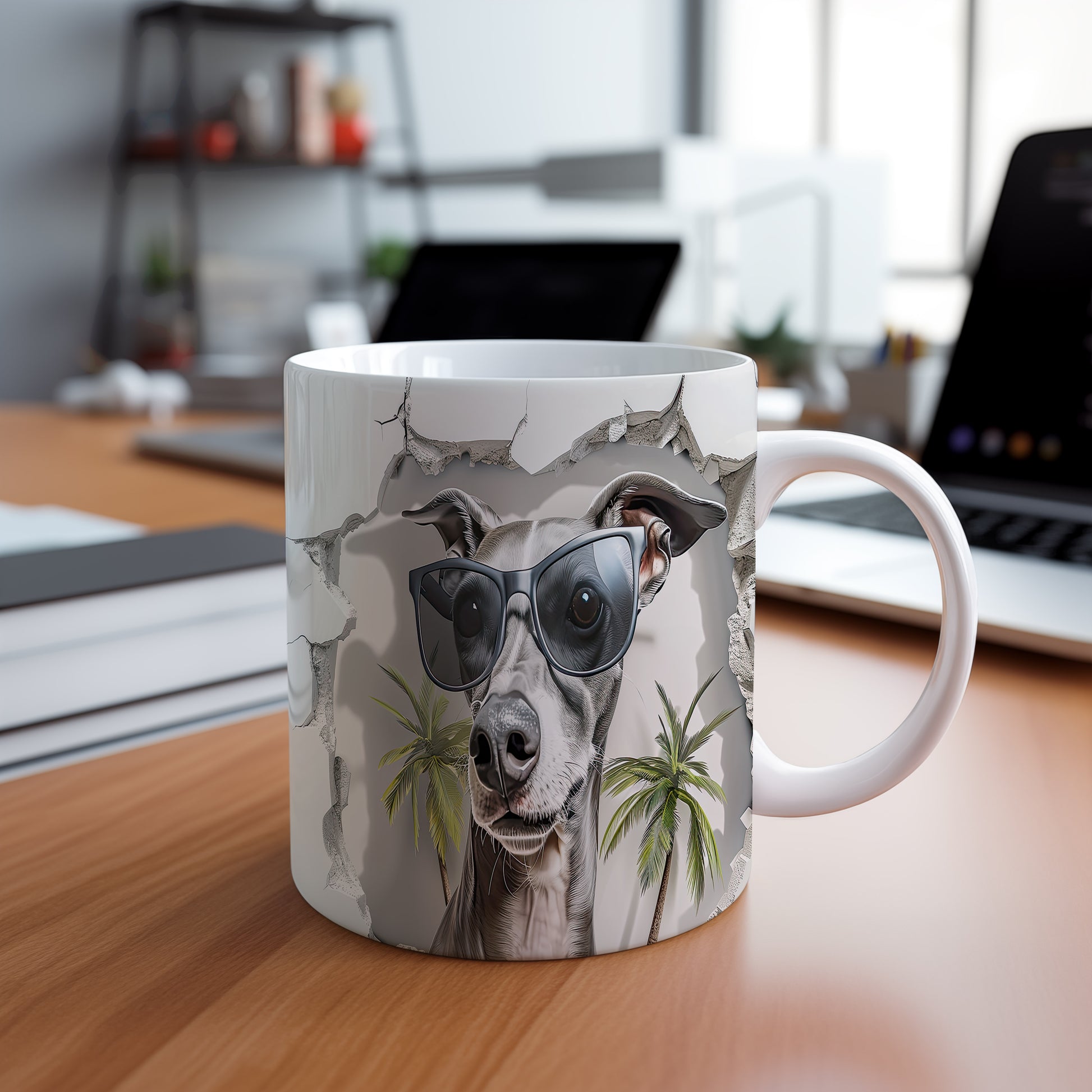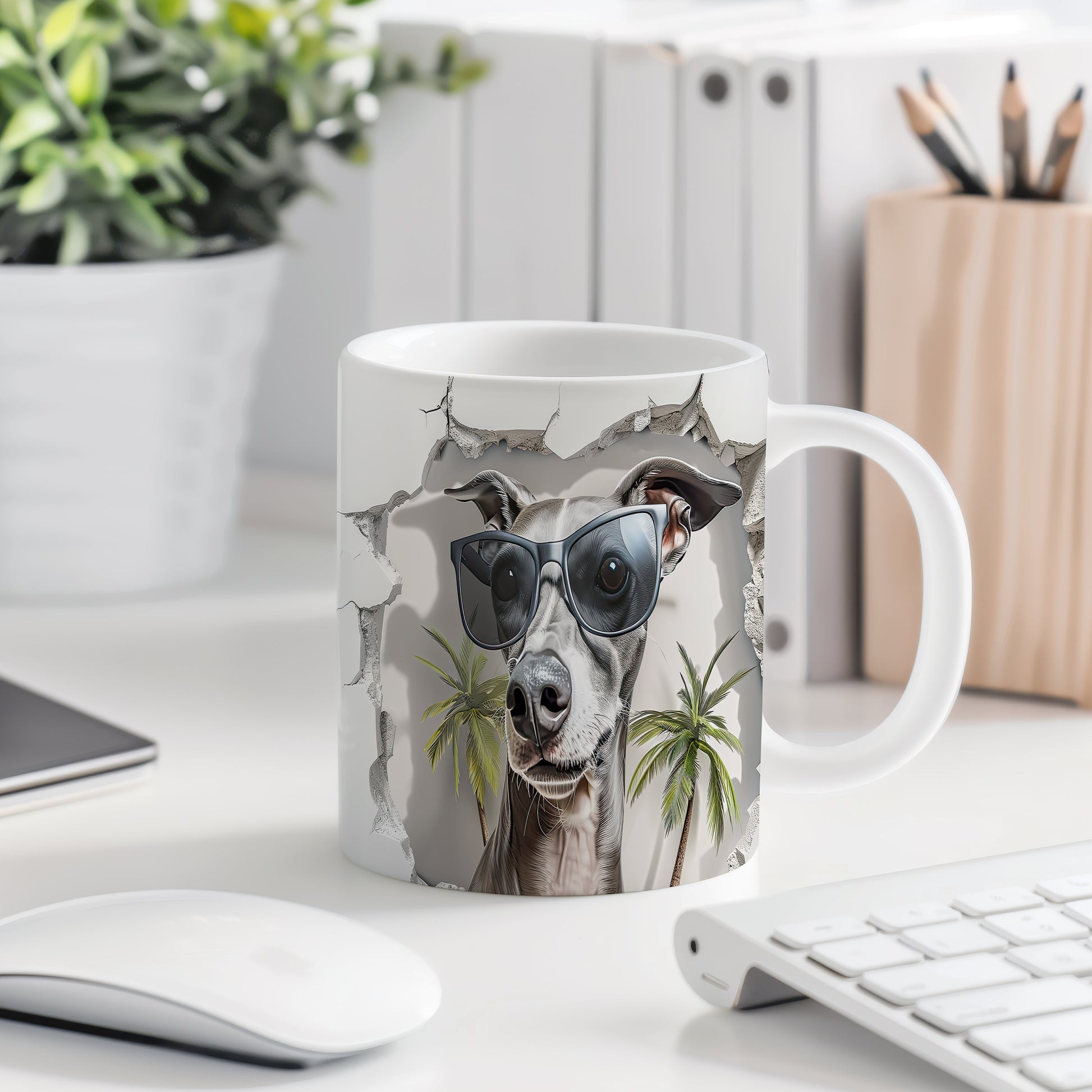 Hrnek s ilustrací sebevědomého pejska v brýlích a palmami je skvělým doplňkem pro milovníky psů. Tento hrnek potěší každého, kdo hledá originální dárek pro přátele nebo rodinu. Materiál: keramika. Objem: 330 ml. Vhodné do myčky i mikrovlnky. Používání tohoto hrnku přináší radost a zábavu při každém doušku.
