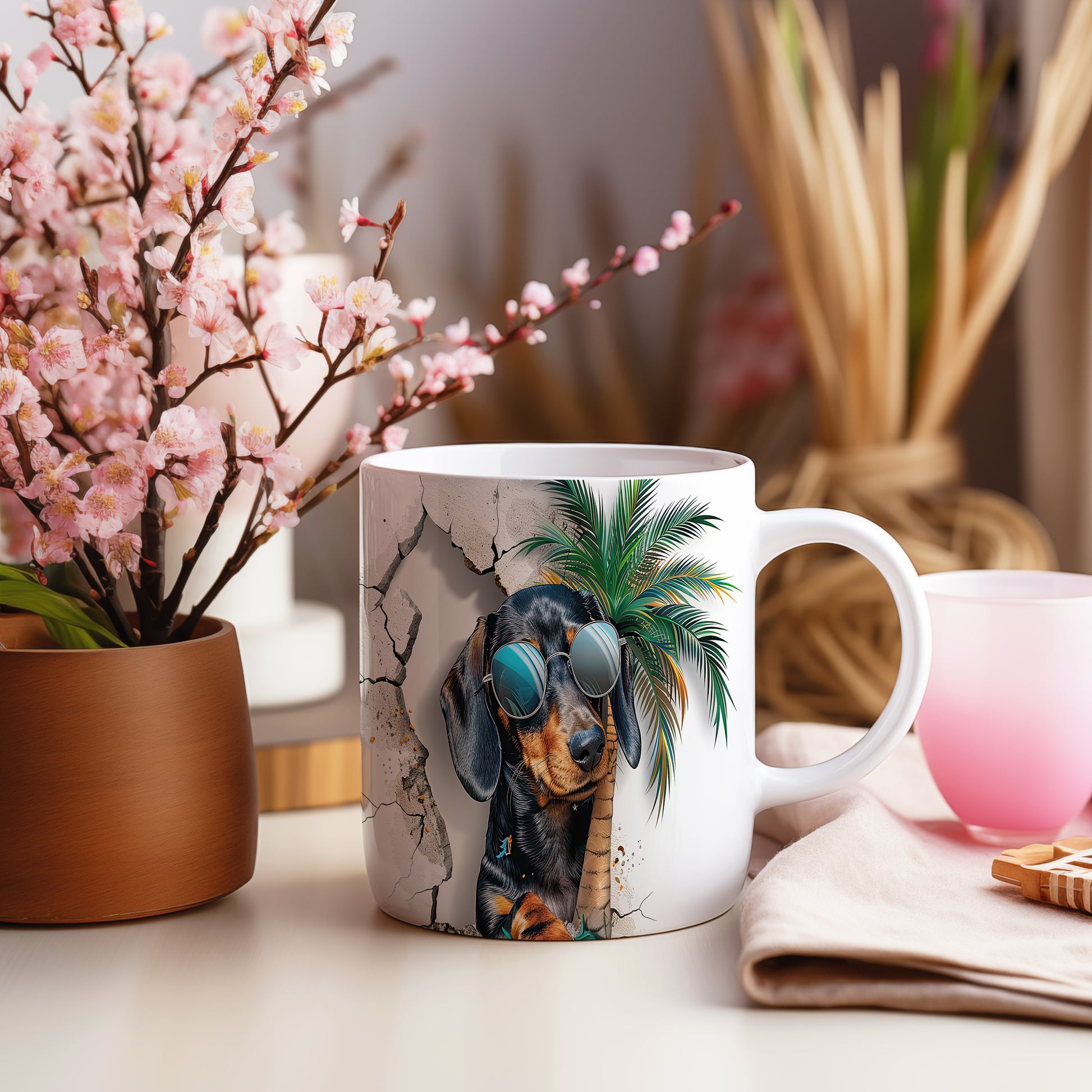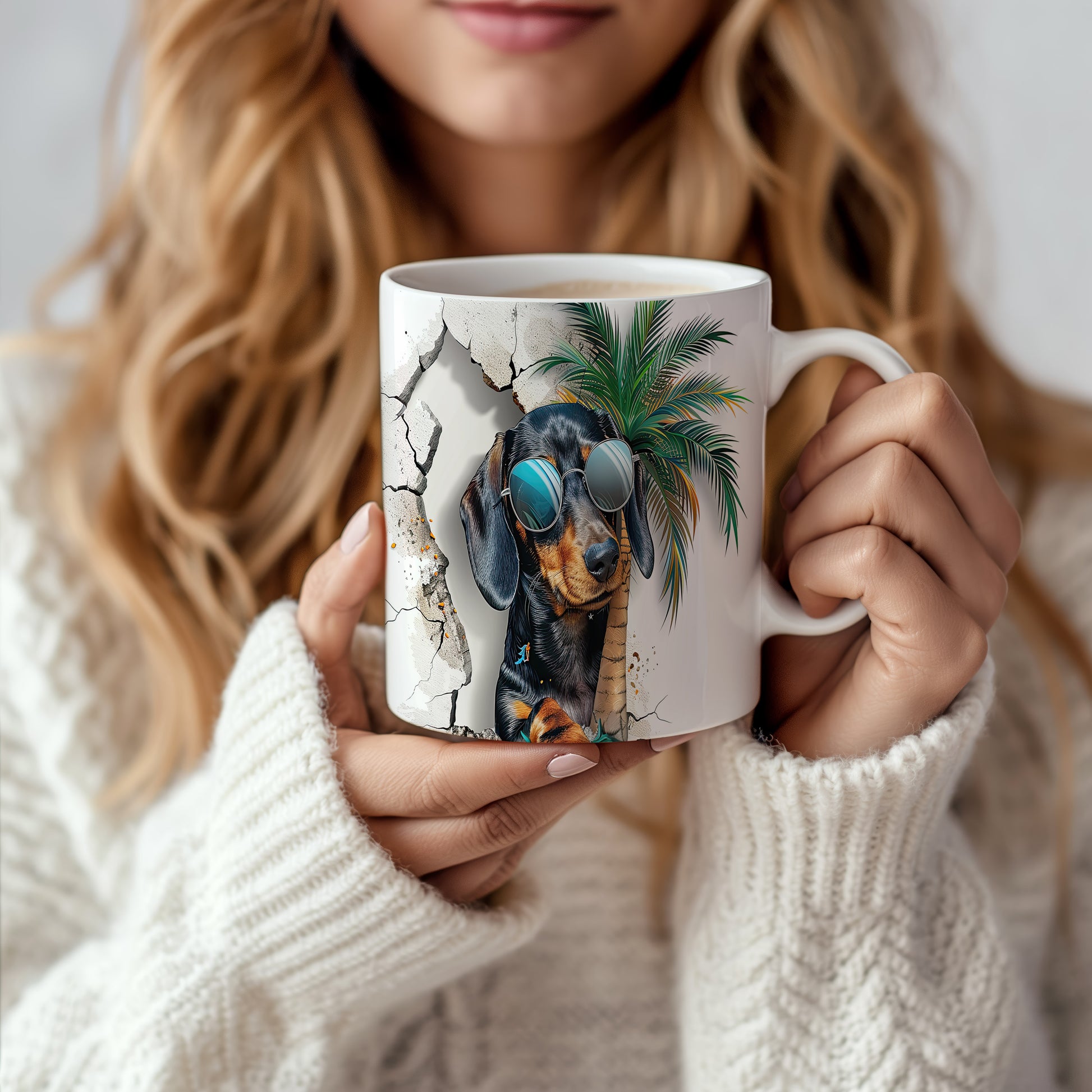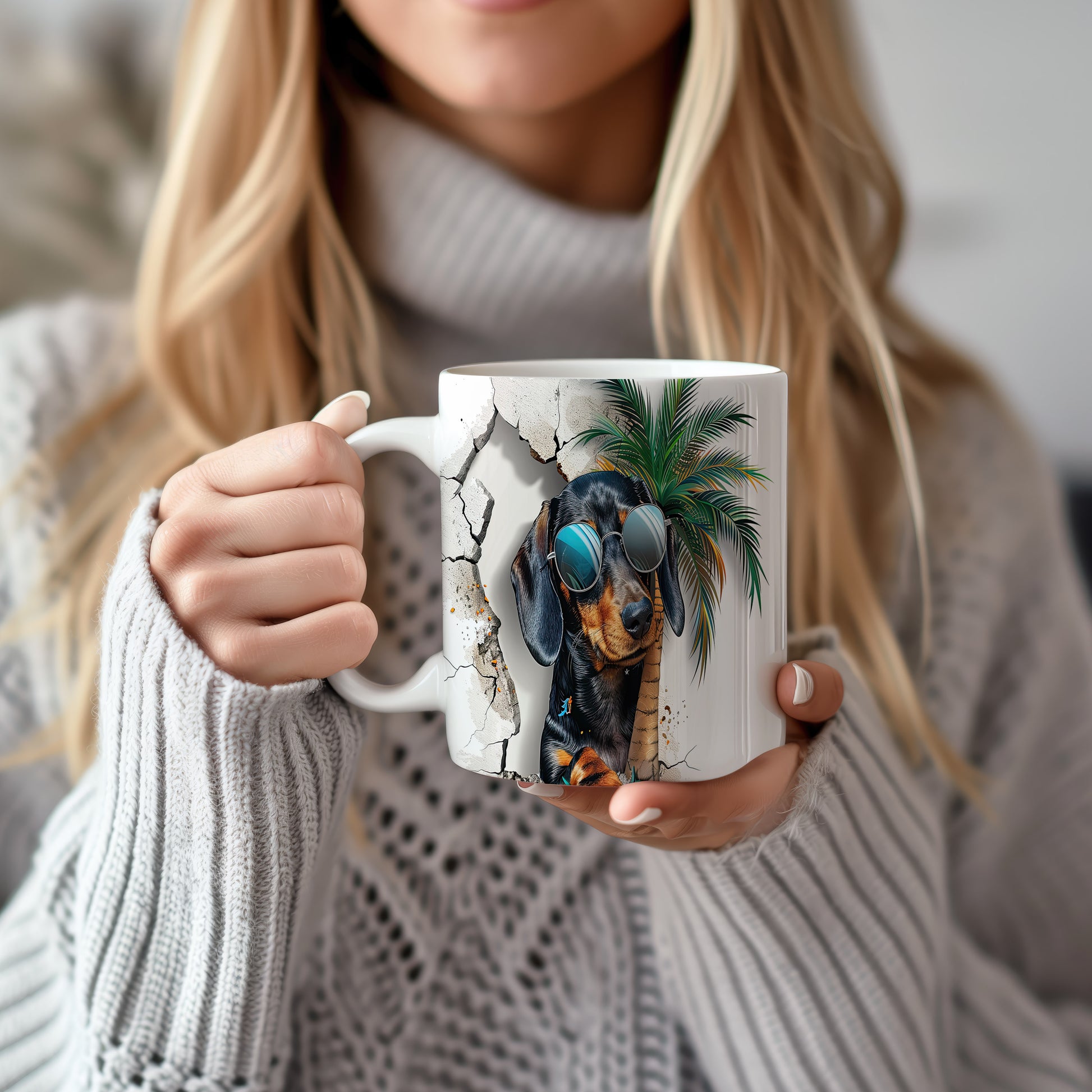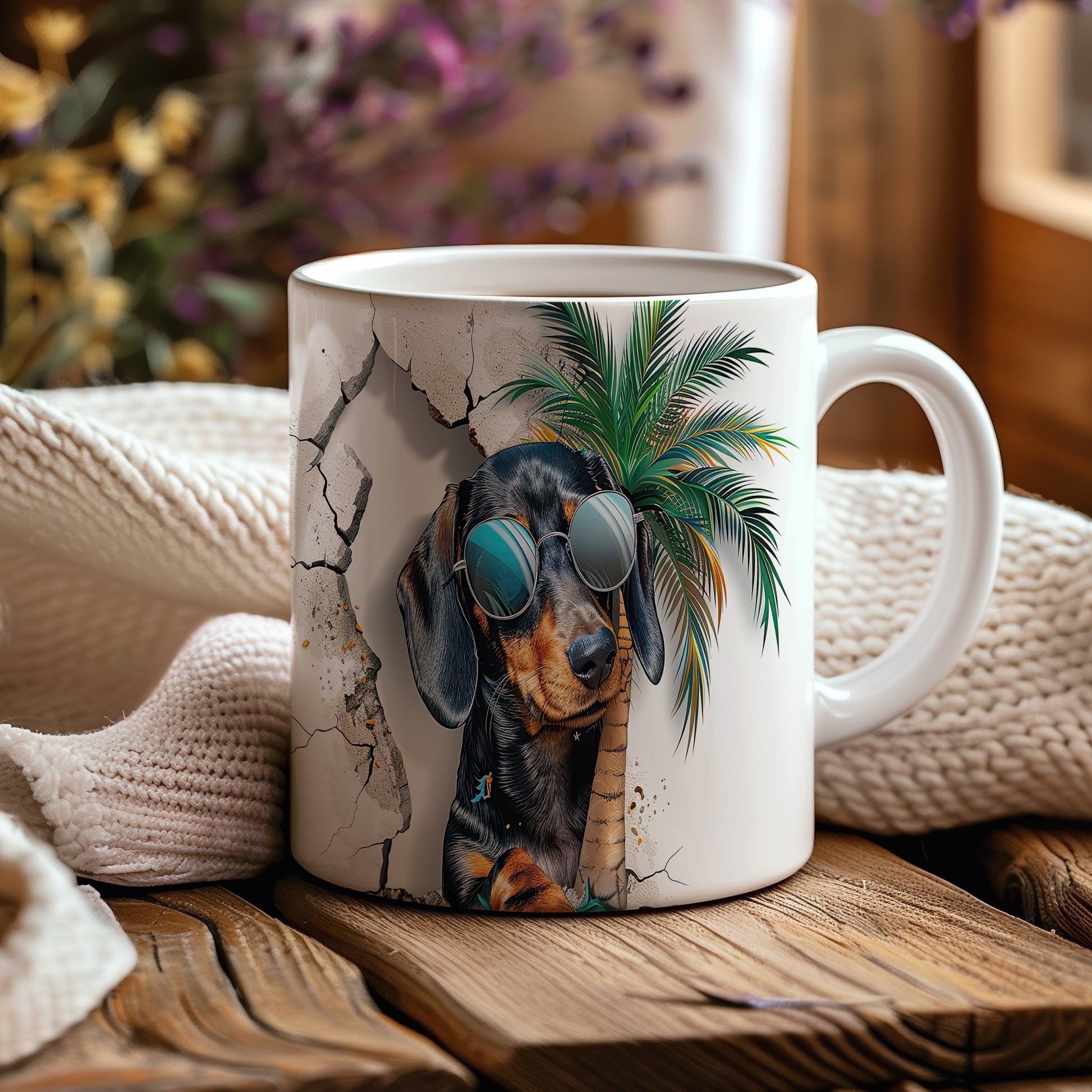 Tento hrnek s motivem černého jezevčíka v slunečních brýlích přináší do každého dne nádech pohody. Je ideální pro milovníky psů a skvělým dárkem pro přátele, kteří ocení originální design. Materiál: keramika. Objem: 330 ml. Vhodné do myčky i mikrovlnky. Užijte si kávu nebo čaj s úsměvem díky jeho jedinečnému vzhledu.