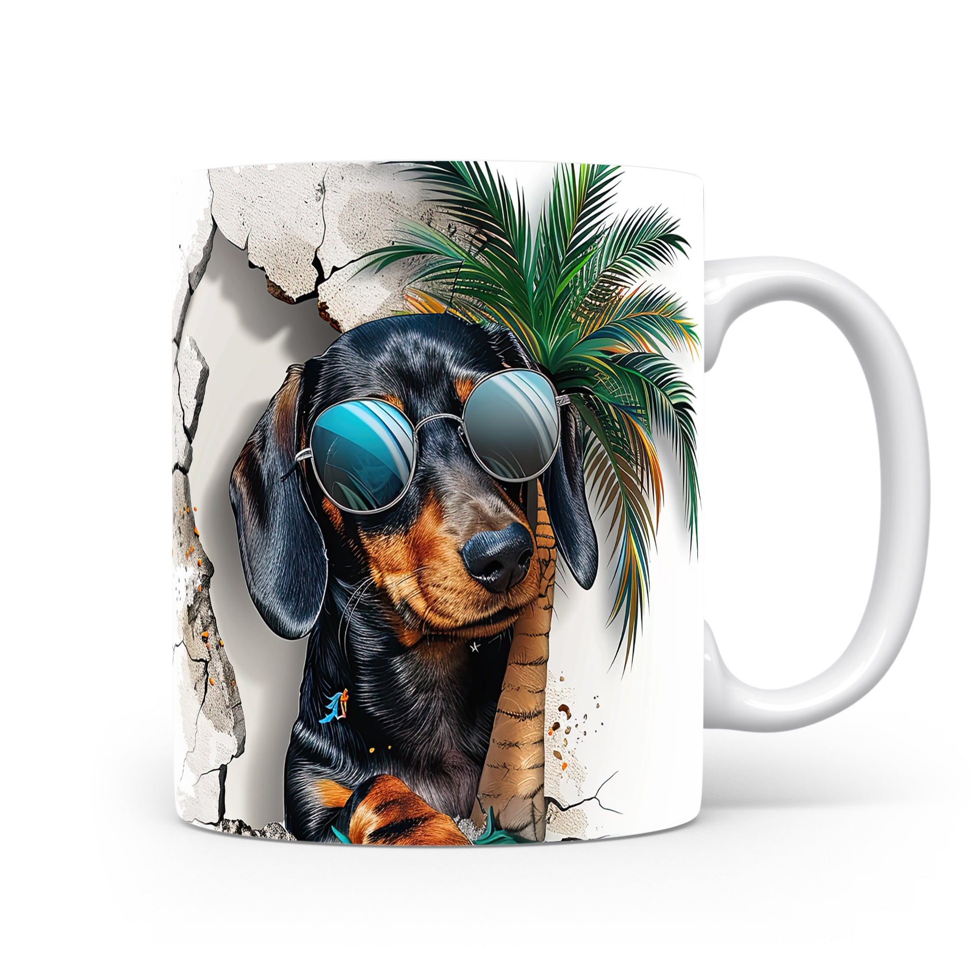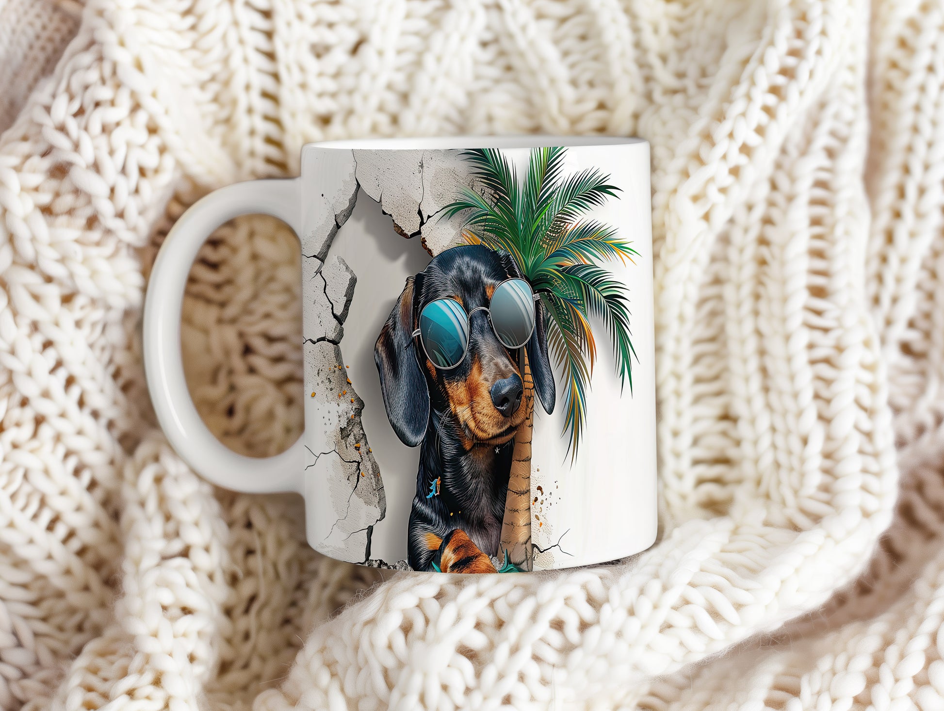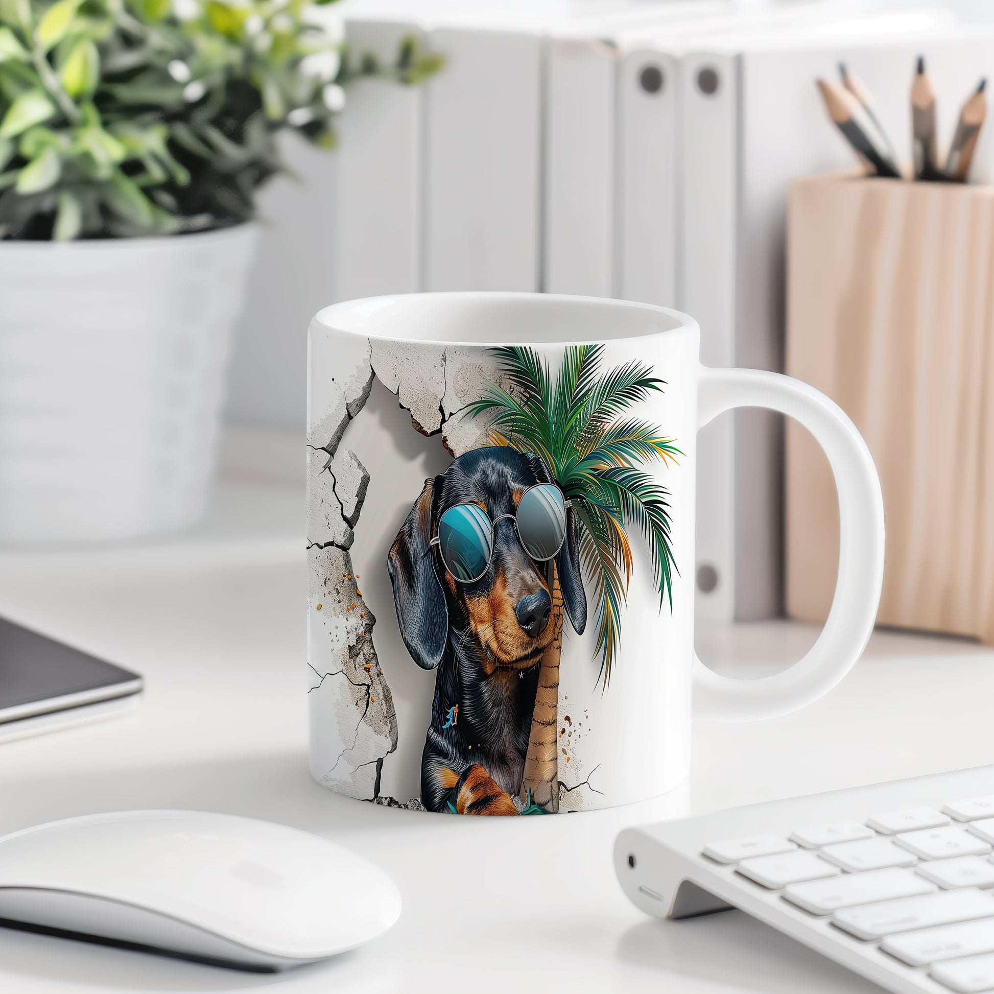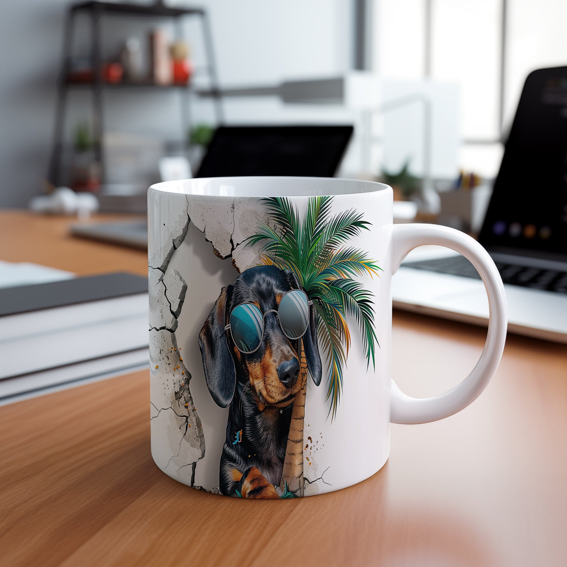 Tento hrnek s motivem černého jezevčíka v slunečních brýlích přináší do každého dne nádech pohody. Je ideální pro milovníky psů a skvělým dárkem pro přátele, kteří ocení originální design. Materiál: keramika. Objem: 330 ml. Vhodné do myčky i mikrovlnky. Užijte si kávu nebo čaj s úsměvem díky jeho jedinečnému vzhledu.