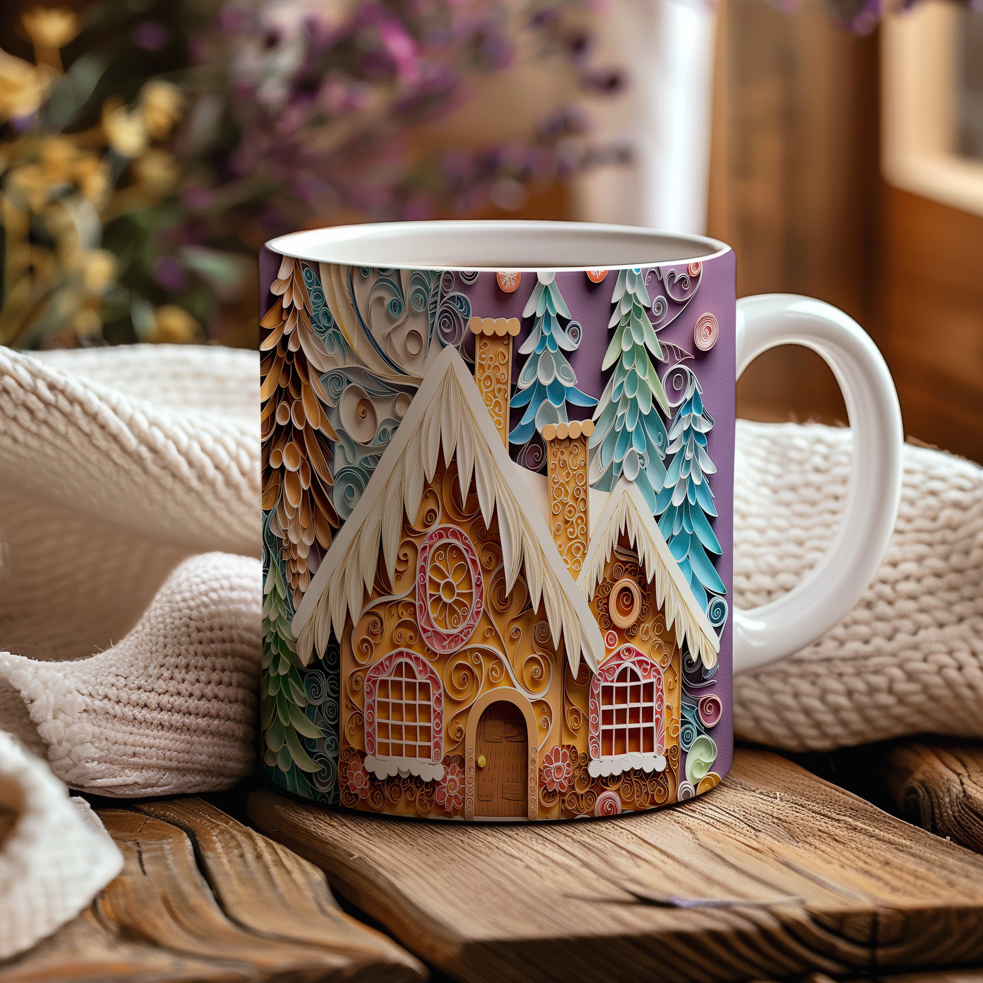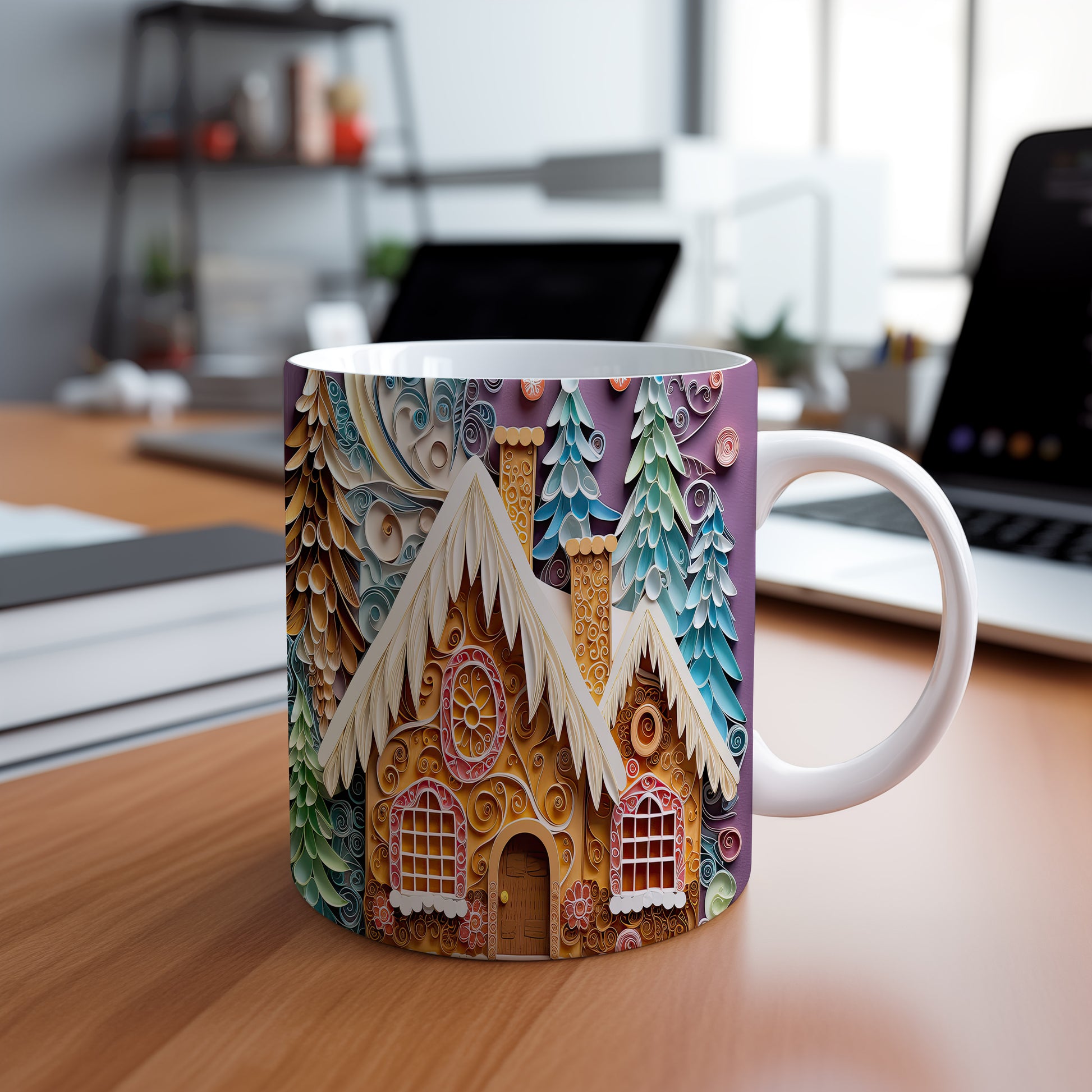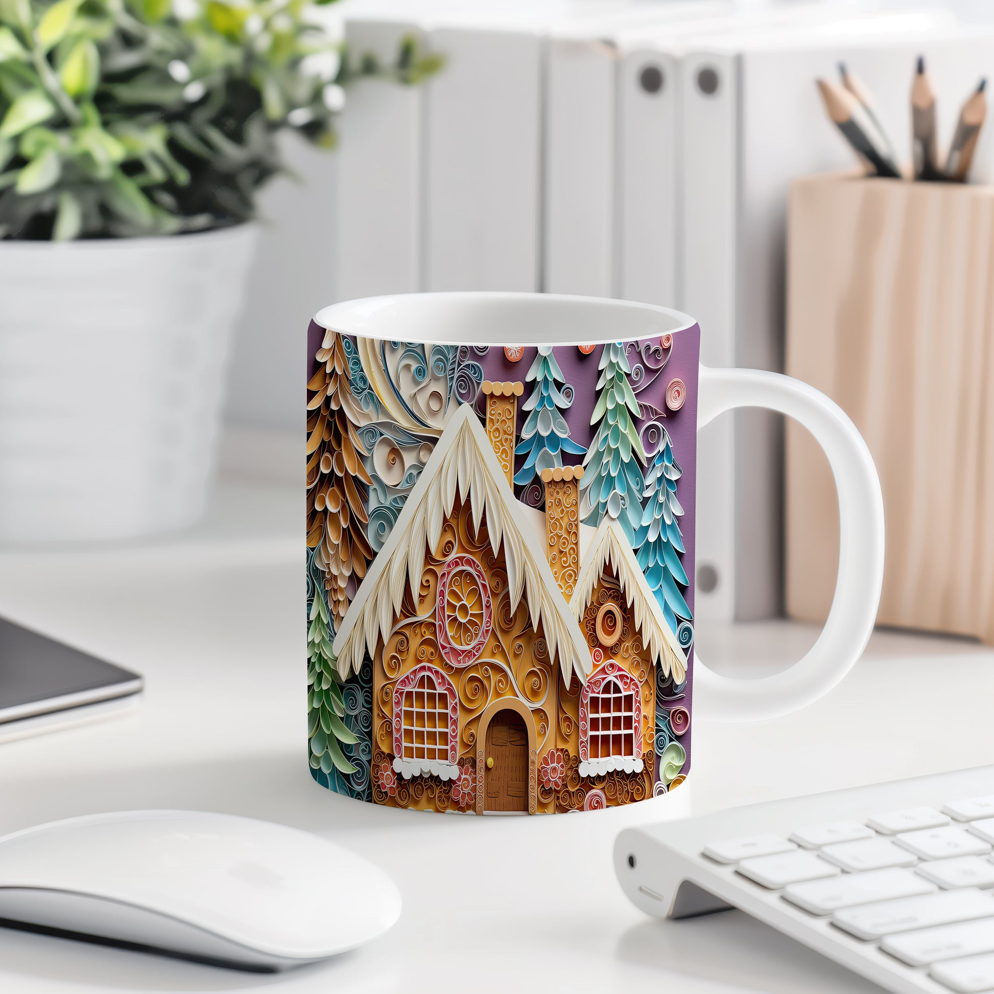 Tento keramický hrnek s motivem perníkové chaloupky a stromečků přináší vánoční atmosféru a útulnost. Je ideální pro milovníky Vánoc a skvělým dárkem pro vaše blízké. Materiál: keramika. Objem: 330 ml. Vhodné do myčky i mikrovlnky. Užívejte si teplé nápoje v pohodlí domova.