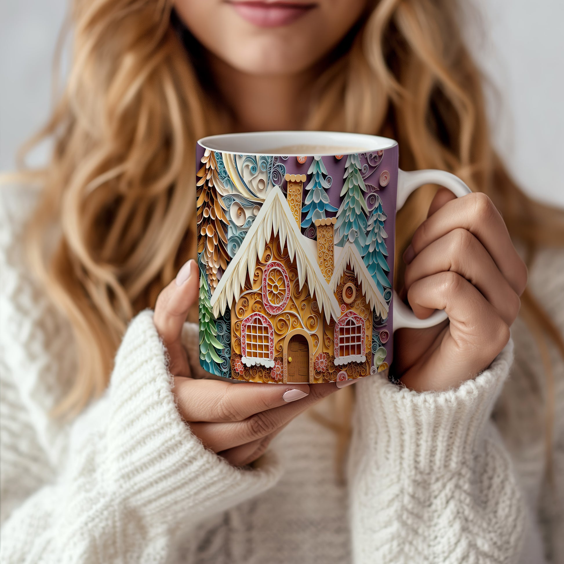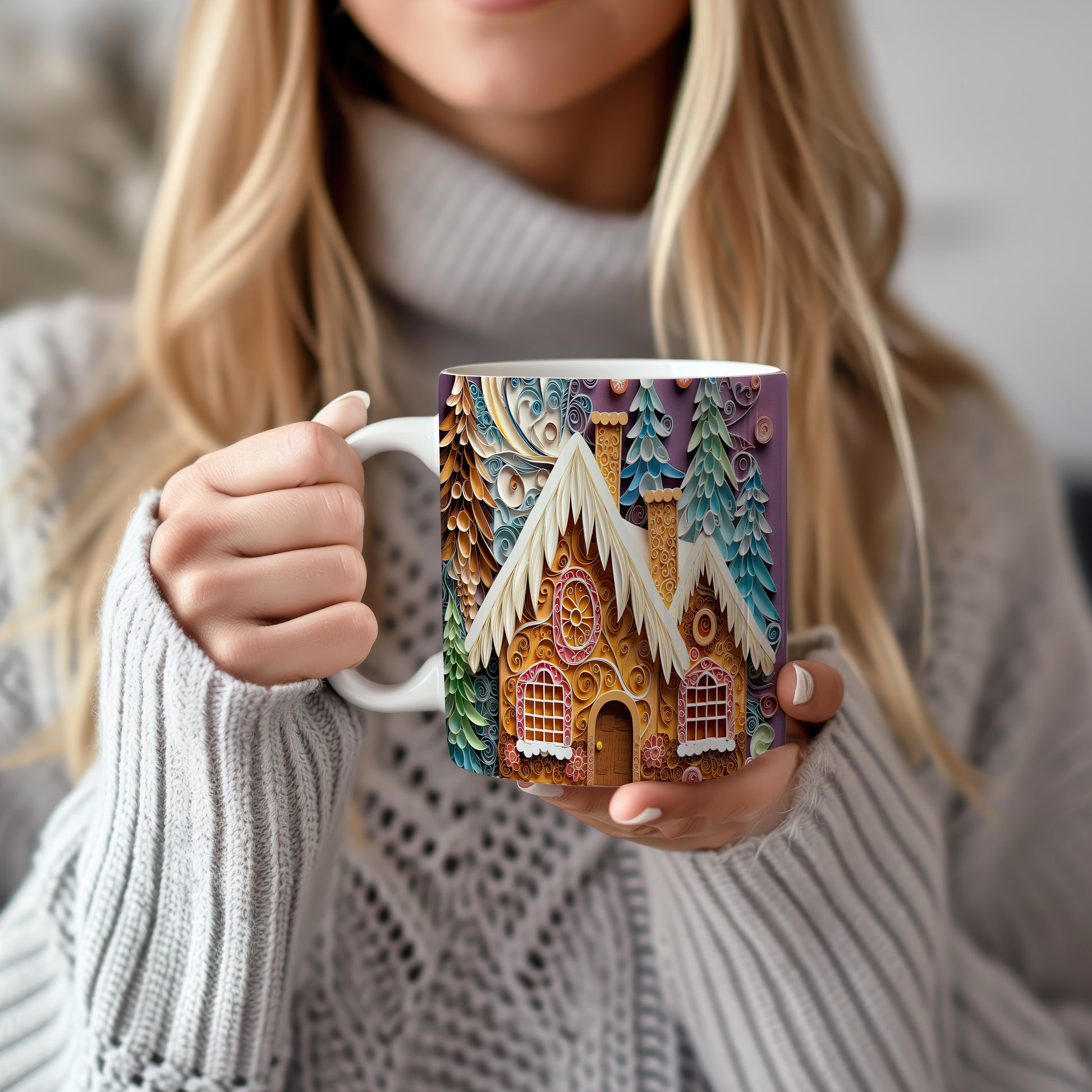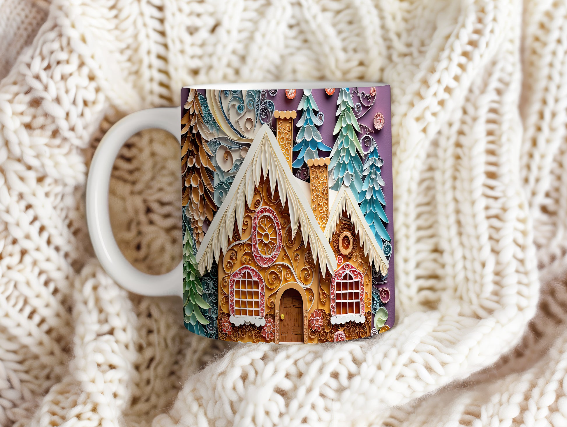 Tento keramický hrnek s motivem perníkové chaloupky a stromečků přináší vánoční atmosféru a útulnost. Je ideální pro milovníky Vánoc a skvělým dárkem pro vaše blízké. Materiál: keramika. Objem: 330 ml. Vhodné do myčky i mikrovlnky. Užívejte si teplé nápoje v pohodlí domova.