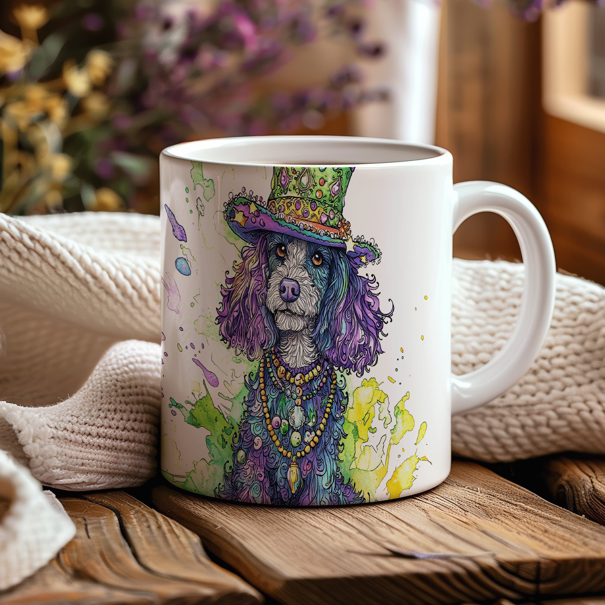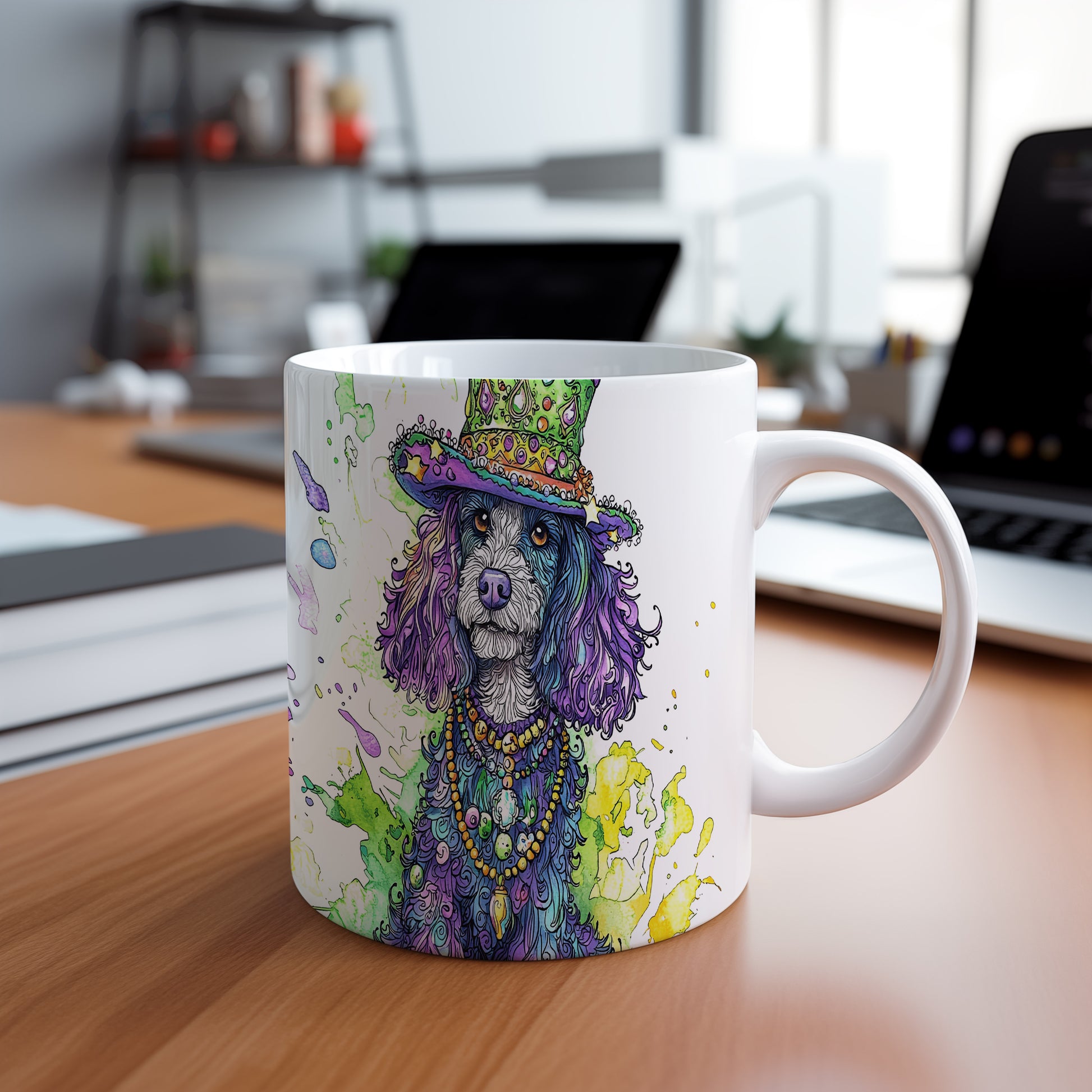 Stylový hrnek s ilustrací psa v barevném klobouku a náhrdelníku. Tento hrnek je ideální pro milovníky zvířat a originálního designu, skvělý tip na dárek pro přátele nebo rodinu. Materiál: keramika. Objem: 330 ml. Vhodné do myčky i mikrovlnky. Používání tohoto hrnku přináší radost a osobitý styl do každodenního pití.