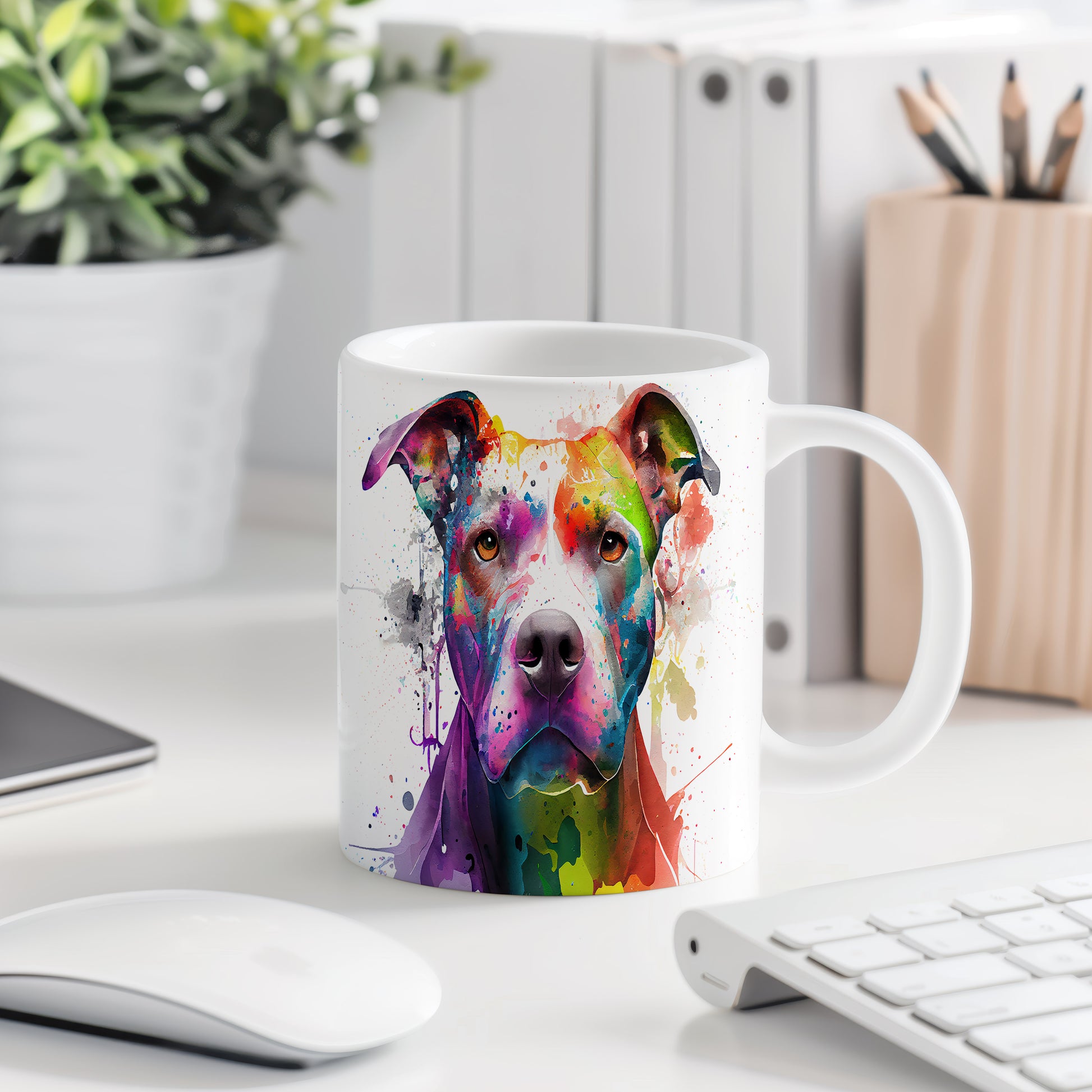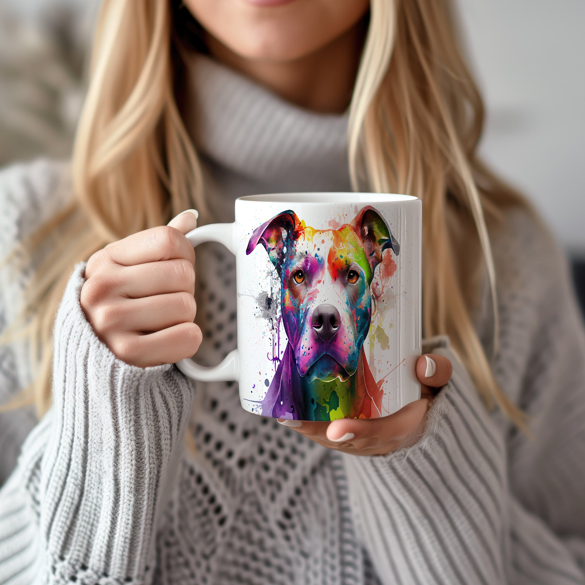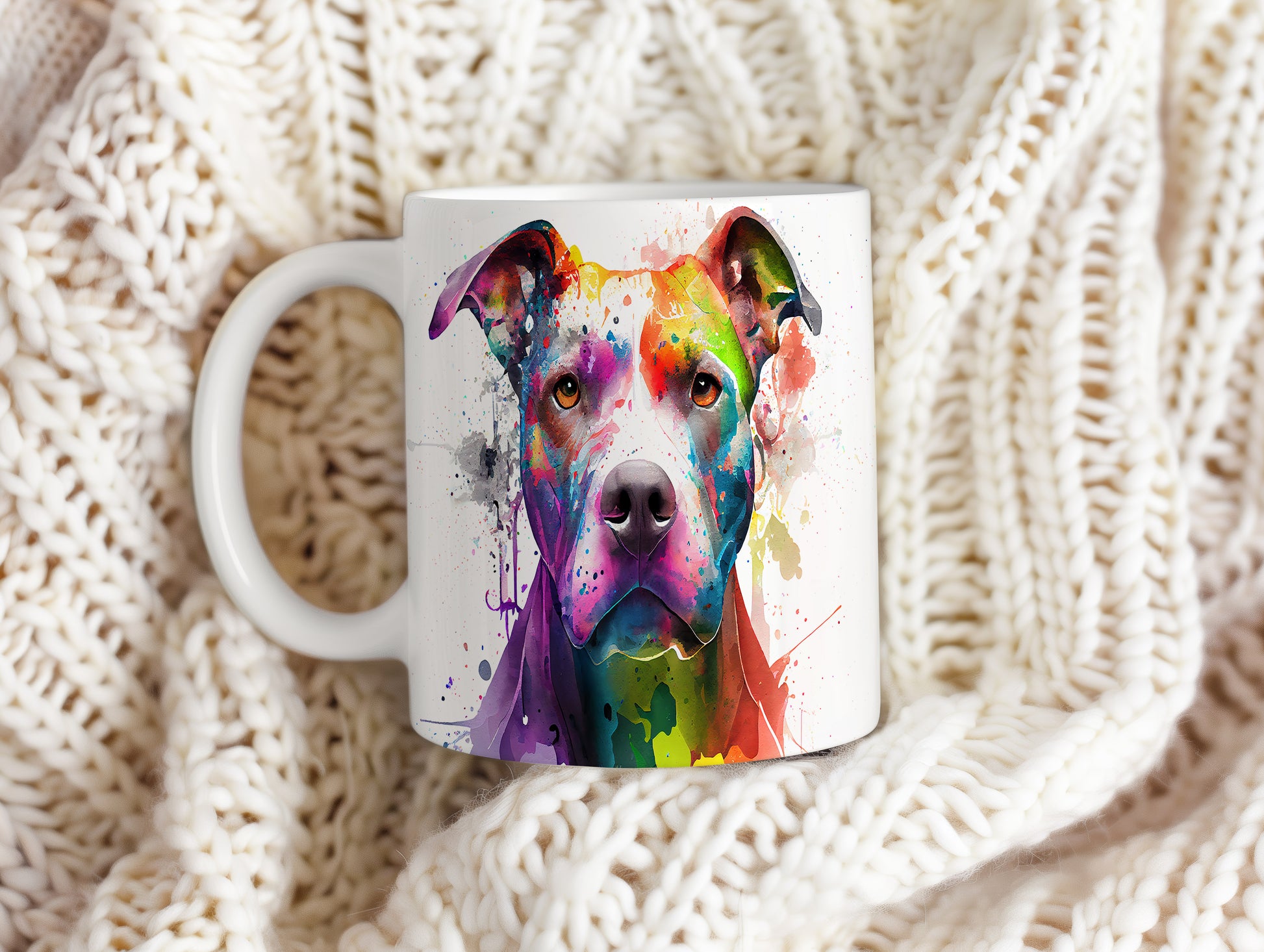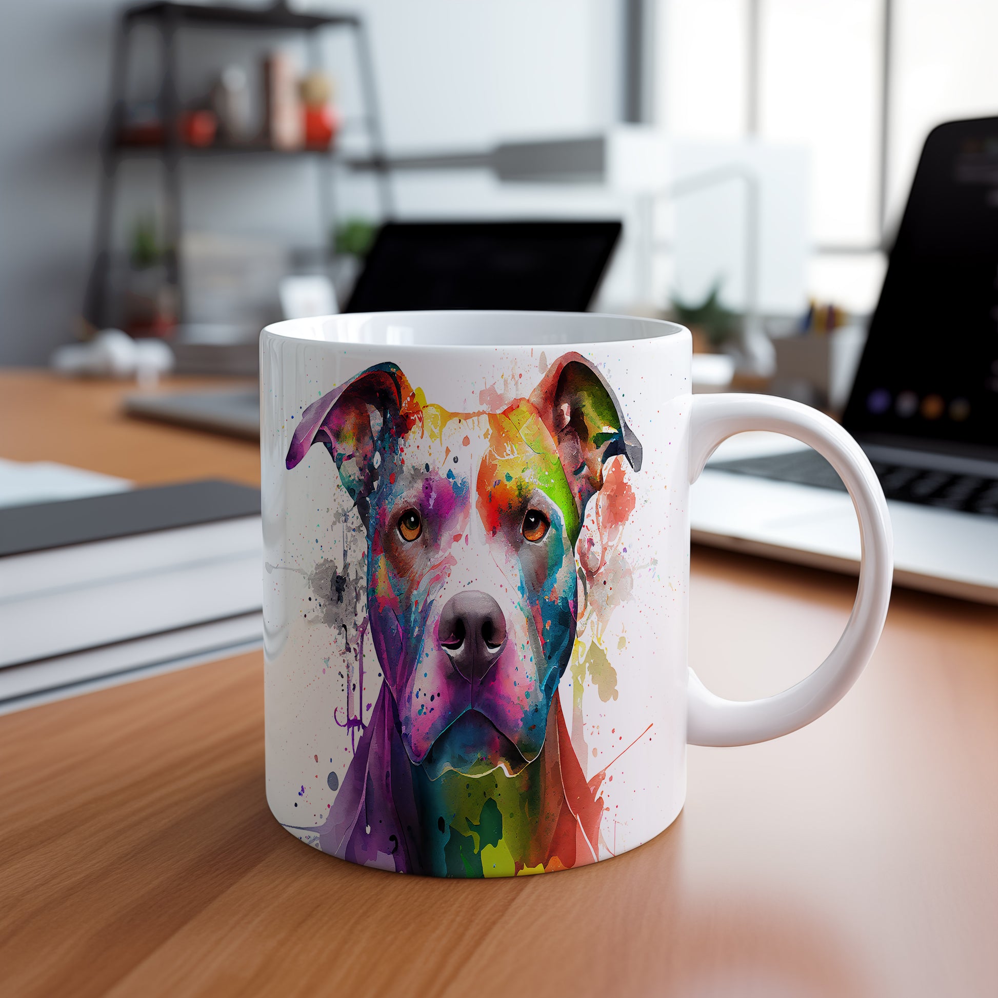 Hrnek s pitbullem teriérem v akvarelovém stylu