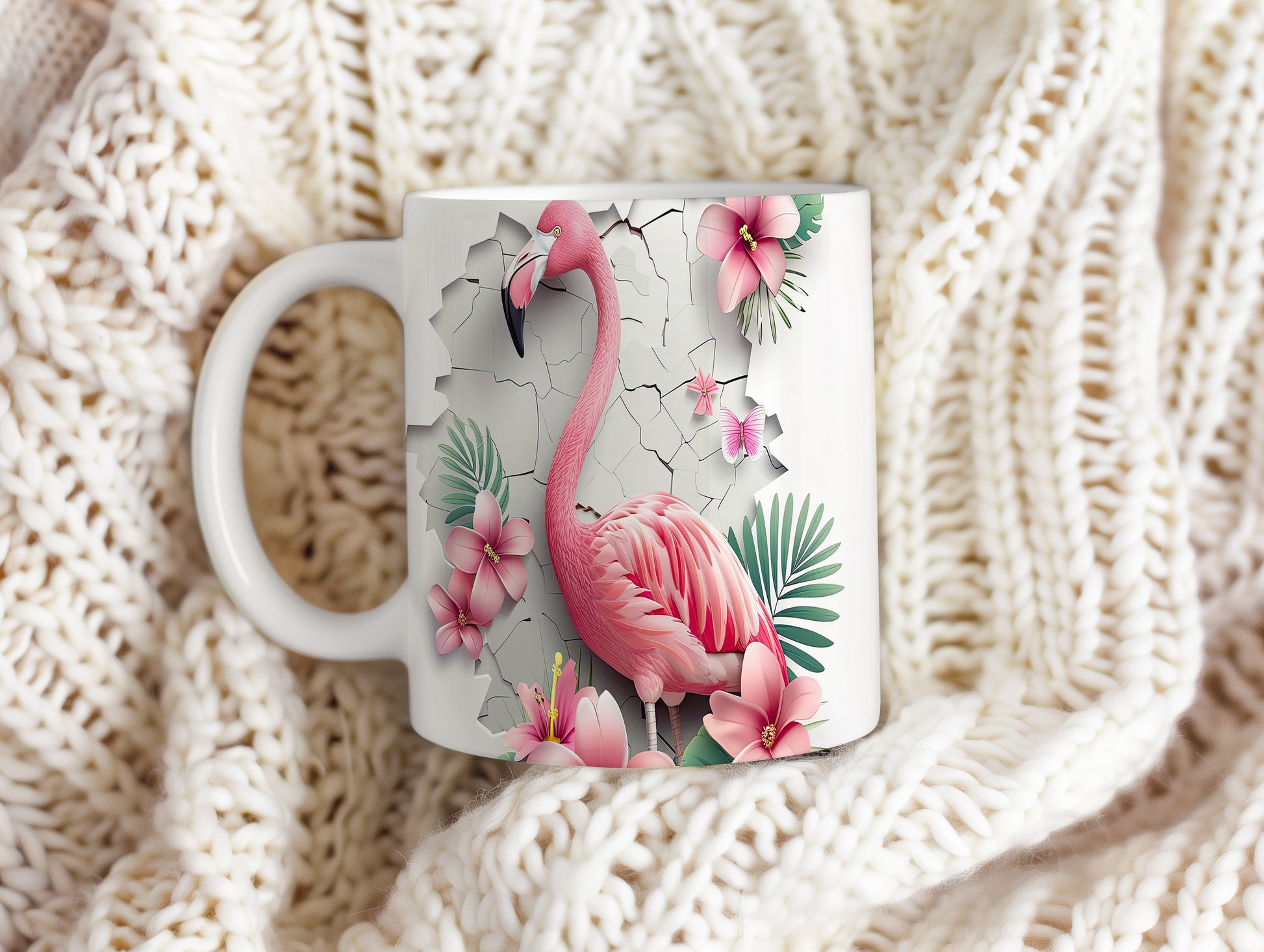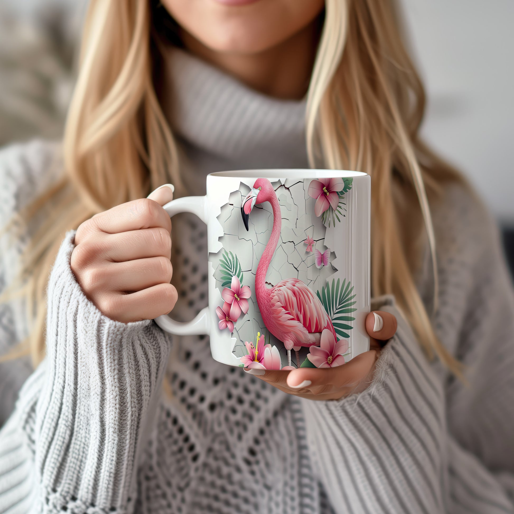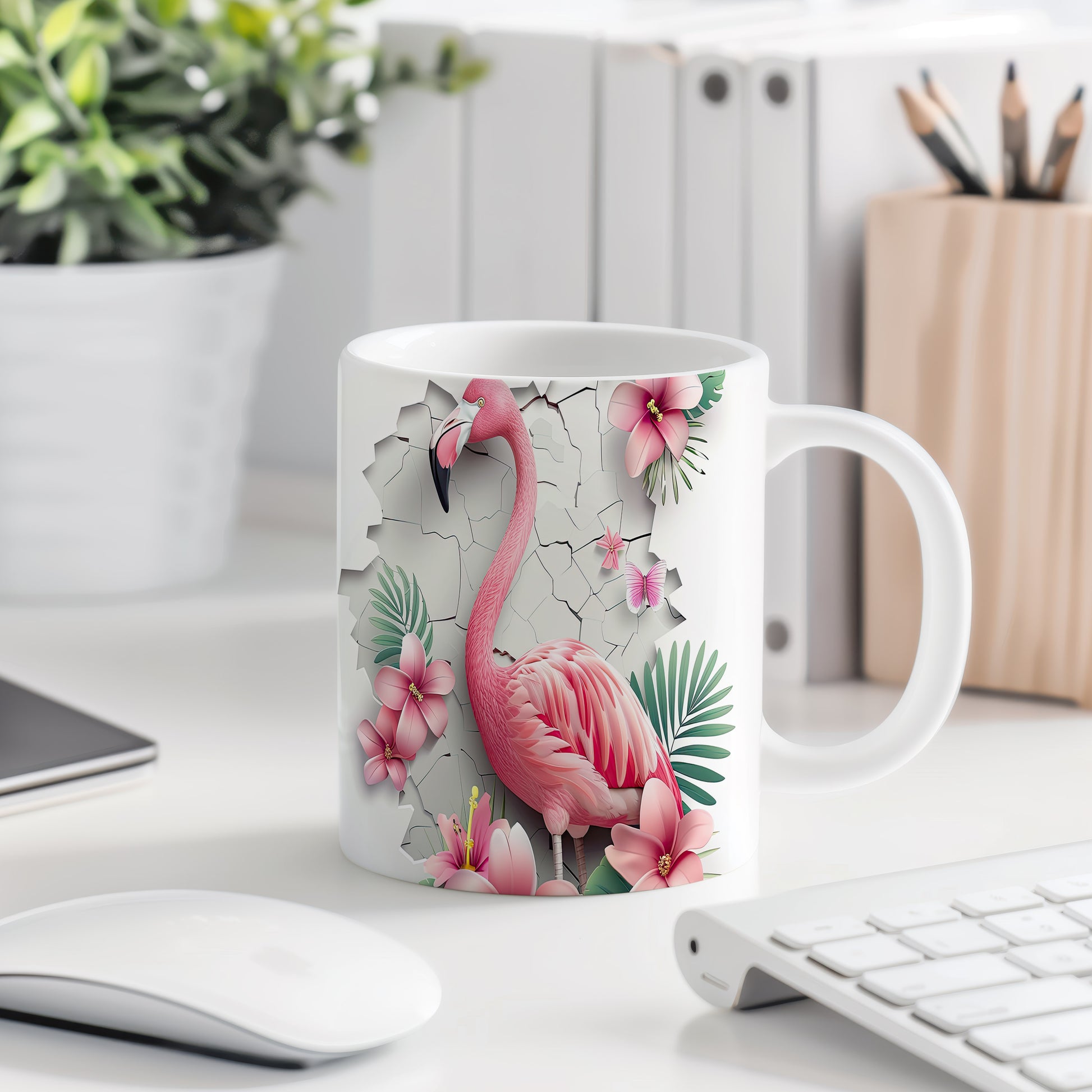 Tento hrnek zdobí krásný motiv plameňáka obklopeného květinami. Je ideální pro milovníky přírody a skvělým dárkem pro přátele nebo rodinu. Materiál: keramika. Objem: 330 ml. Vhodné do myčky i mikrovlnky. Používání tohoto hrnku přináší radost a oživí každé pití.