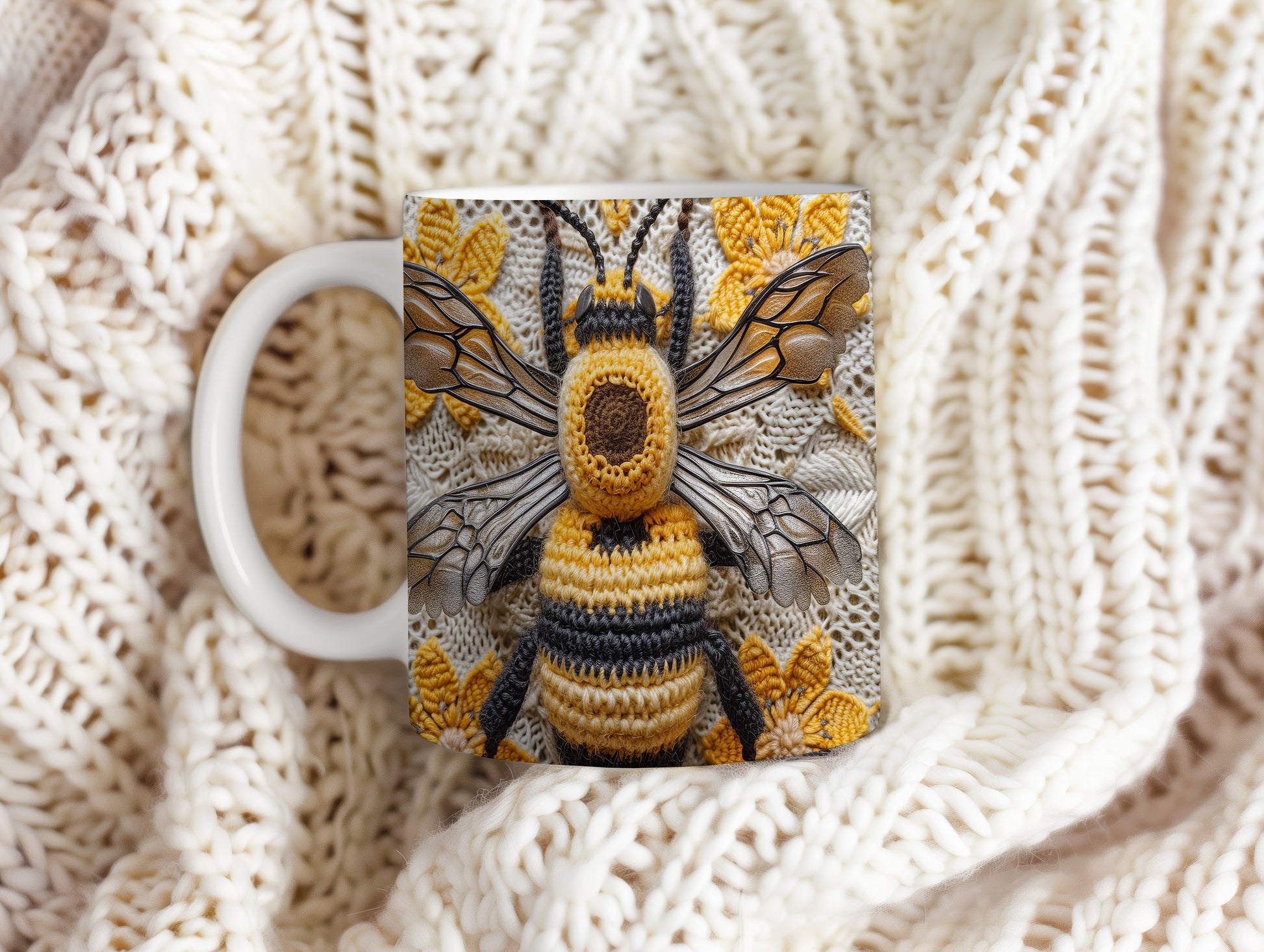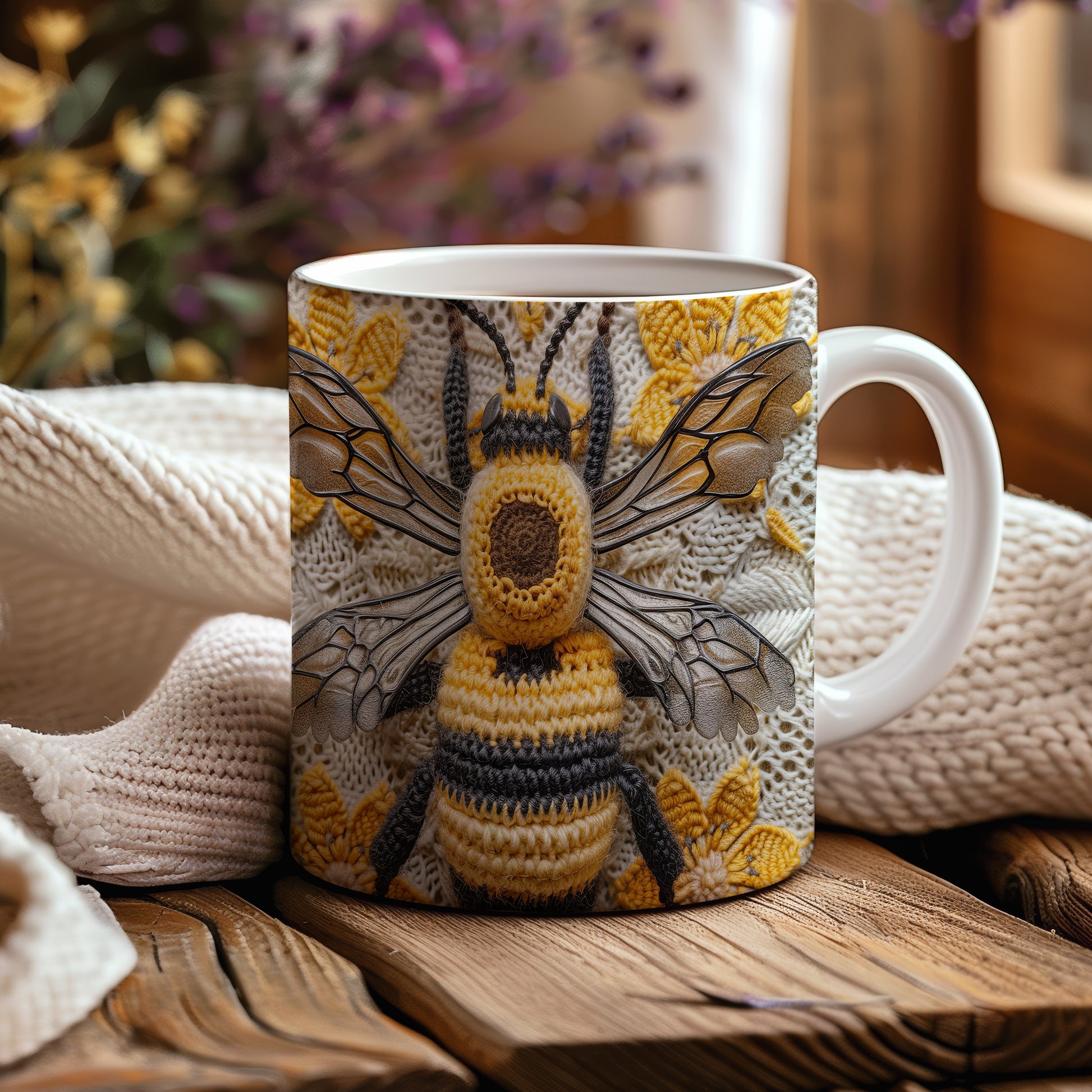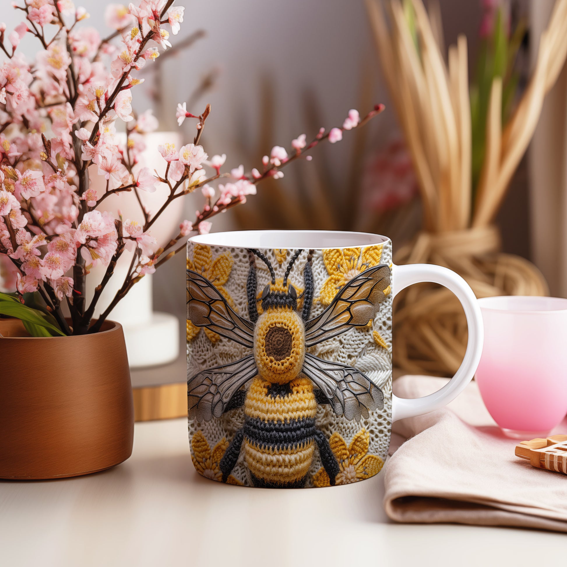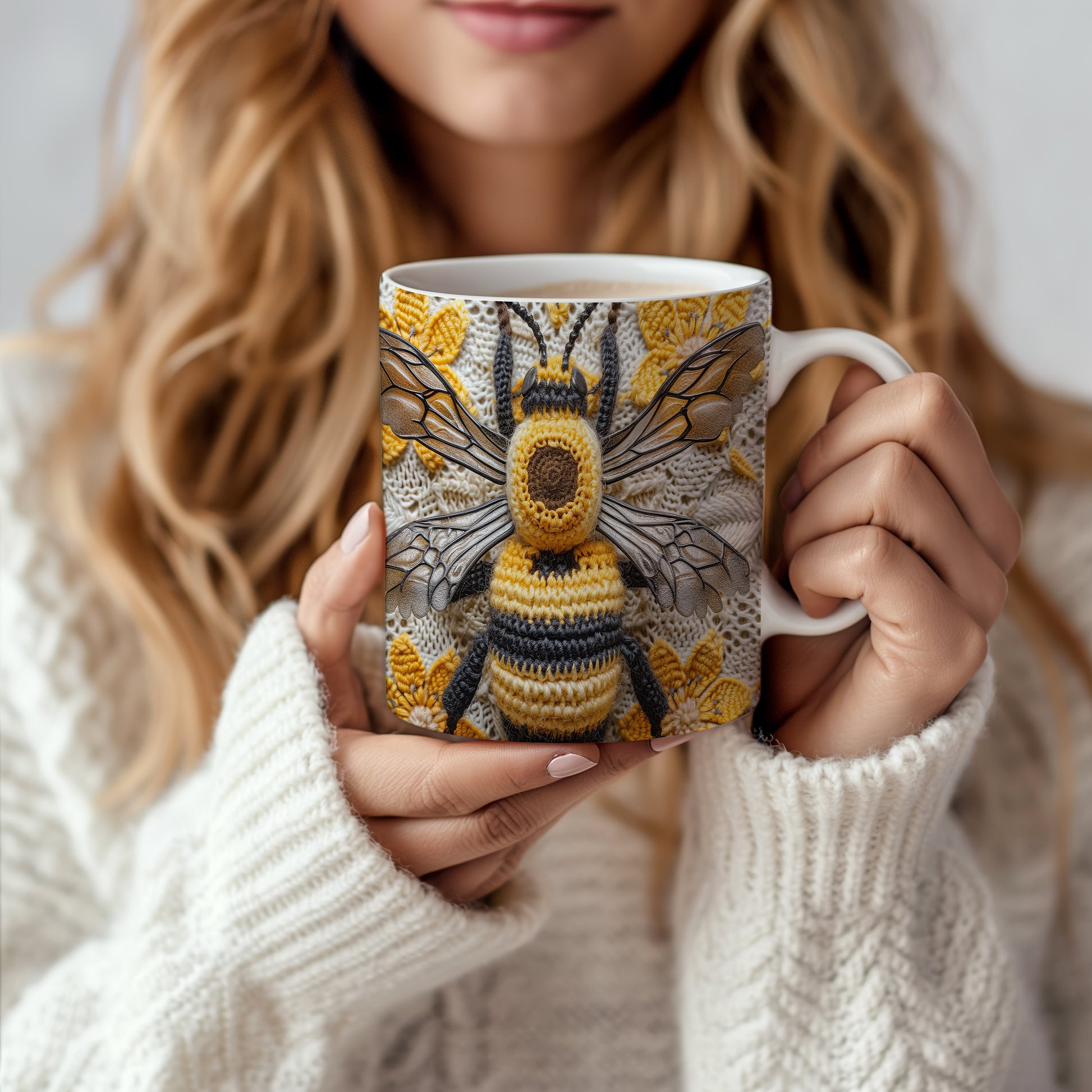 Hrnek s pletenou včelou