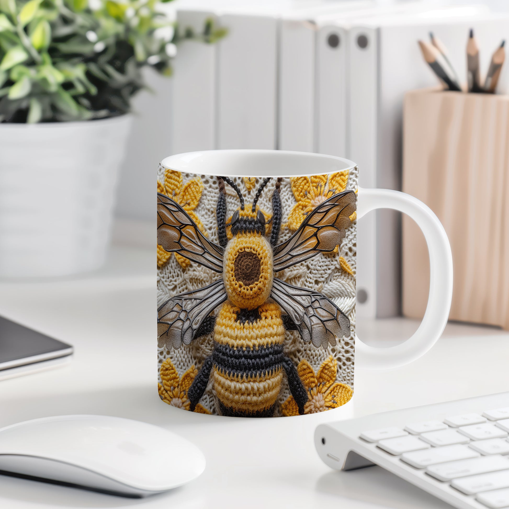 Hrnek s motivem pletené včely, který přináší přírodní a hravý styl. Tento hrnek je ideální pro milovníky včel a přírody, skvělý tip na dárek pro přátele nebo rodinu. Materiál: keramika. Objem: 330 ml. Vhodné do myčky i mikrovlnky. Používání tohoto hrnku přináší radost z každého doušku a oživí váš každodenní rituál pití.