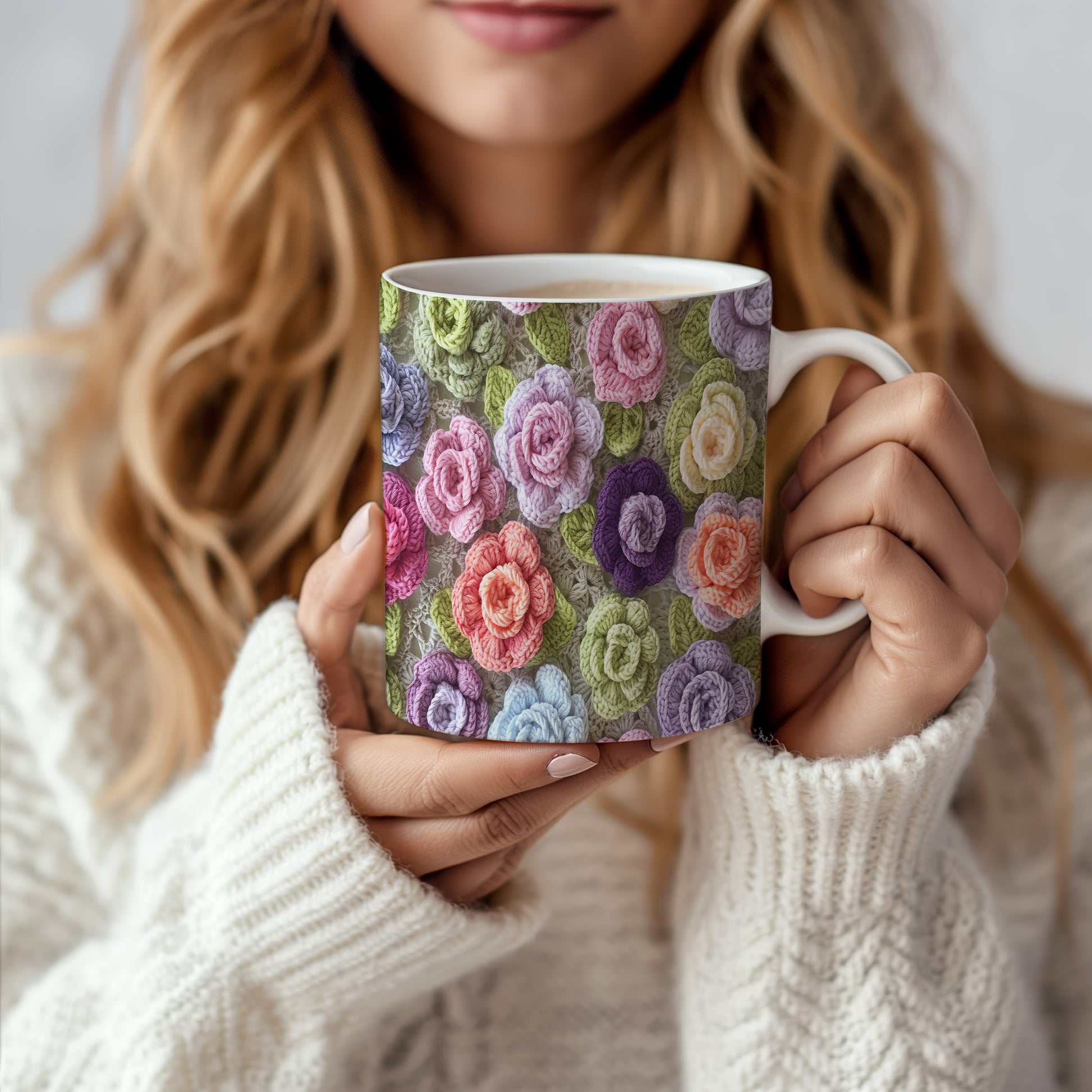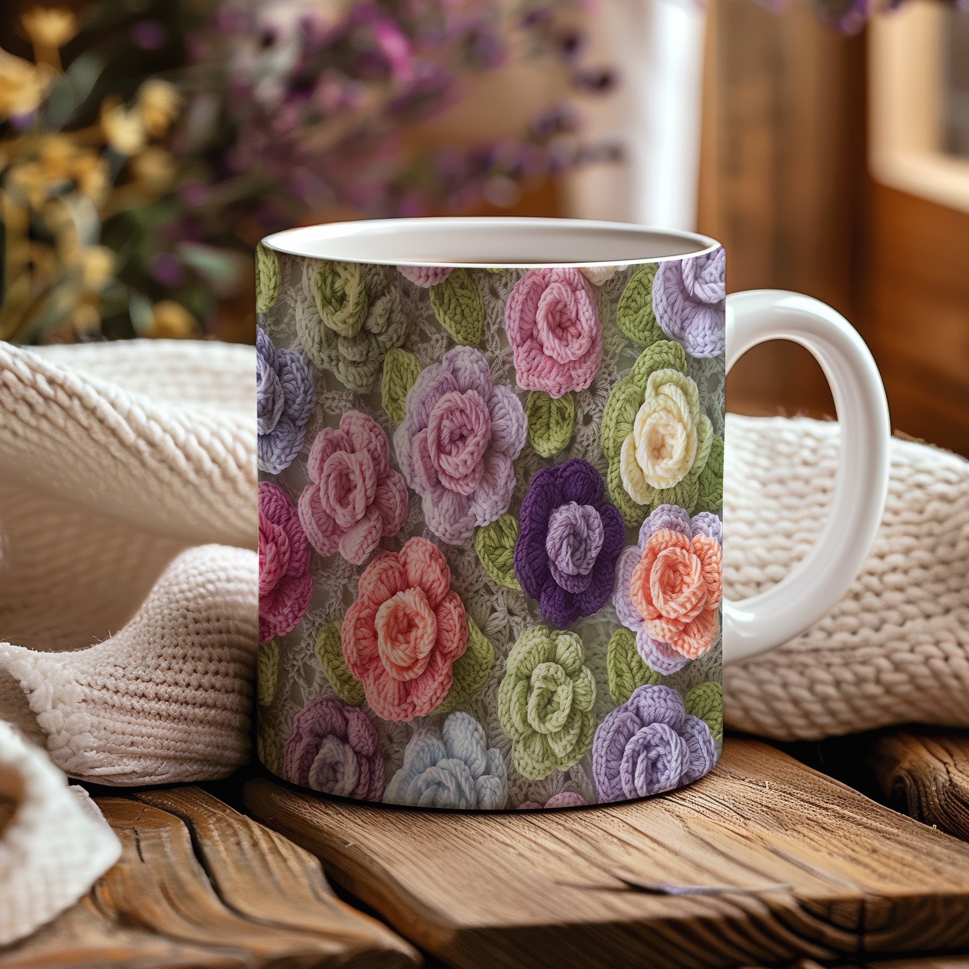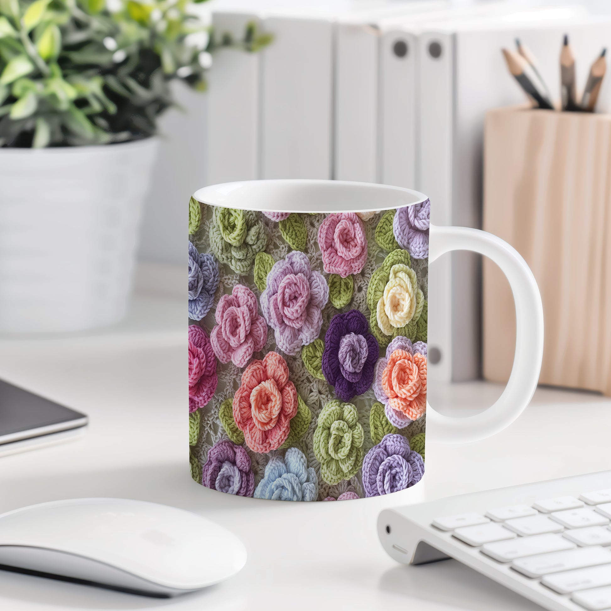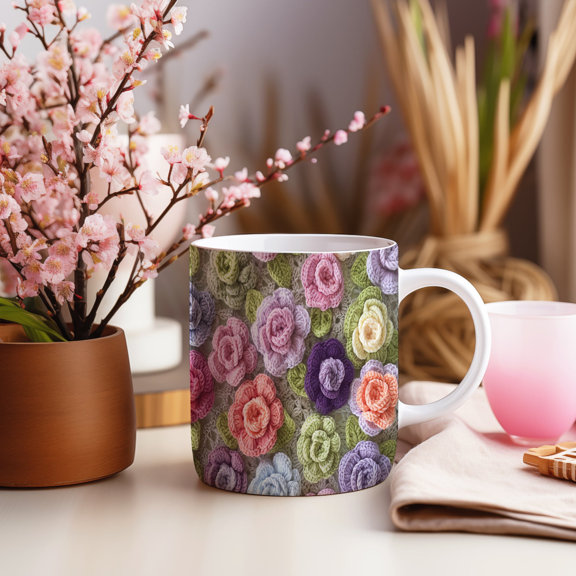 Hrnek s pletenými květinami
