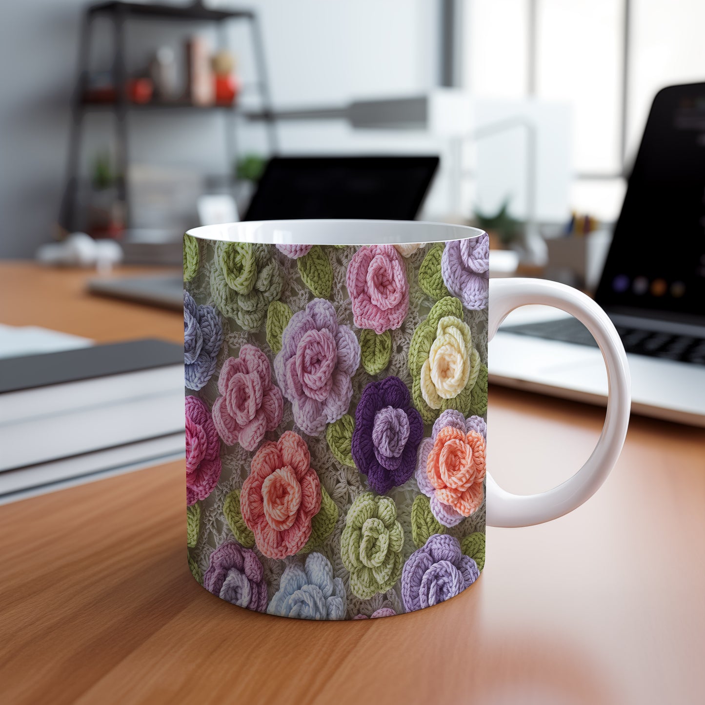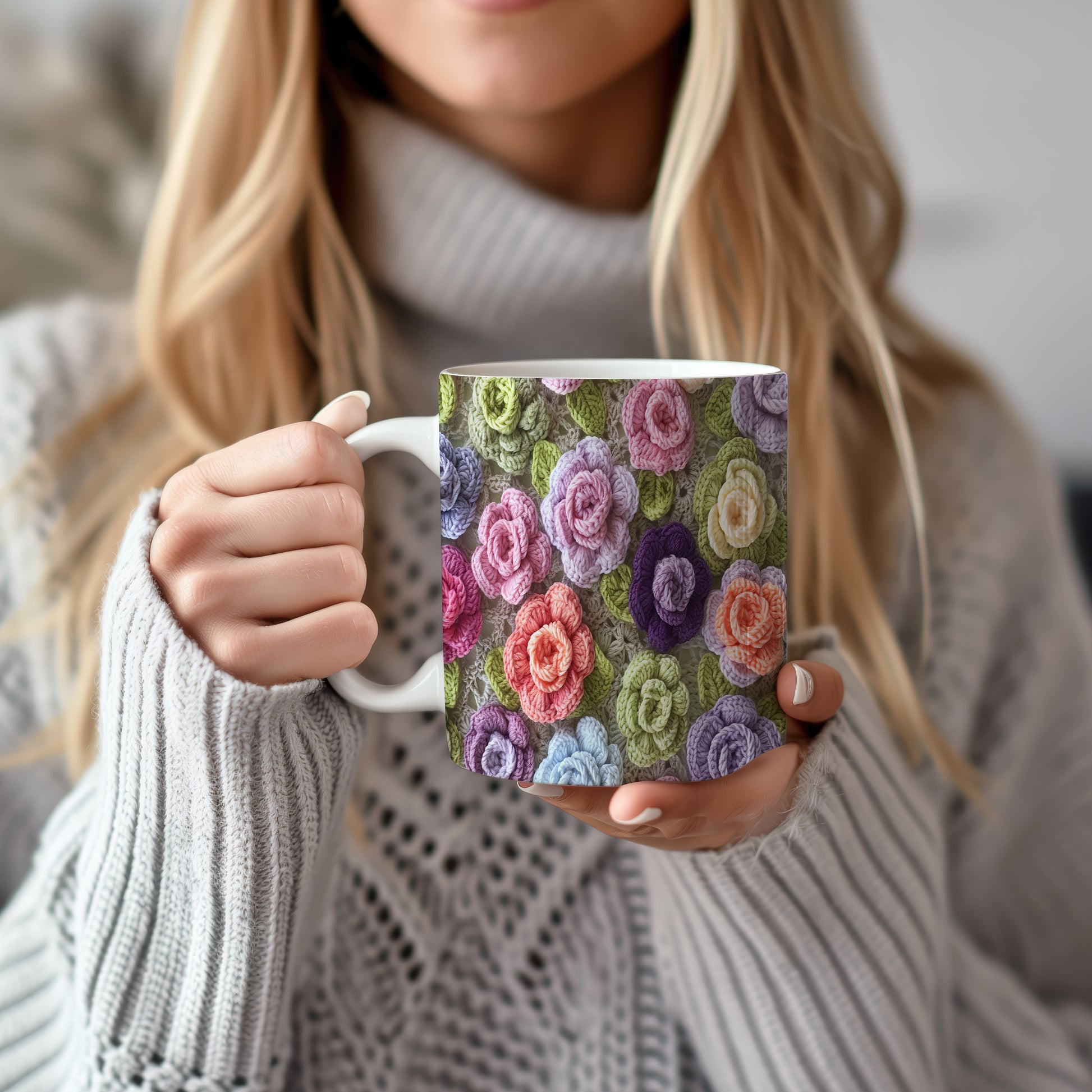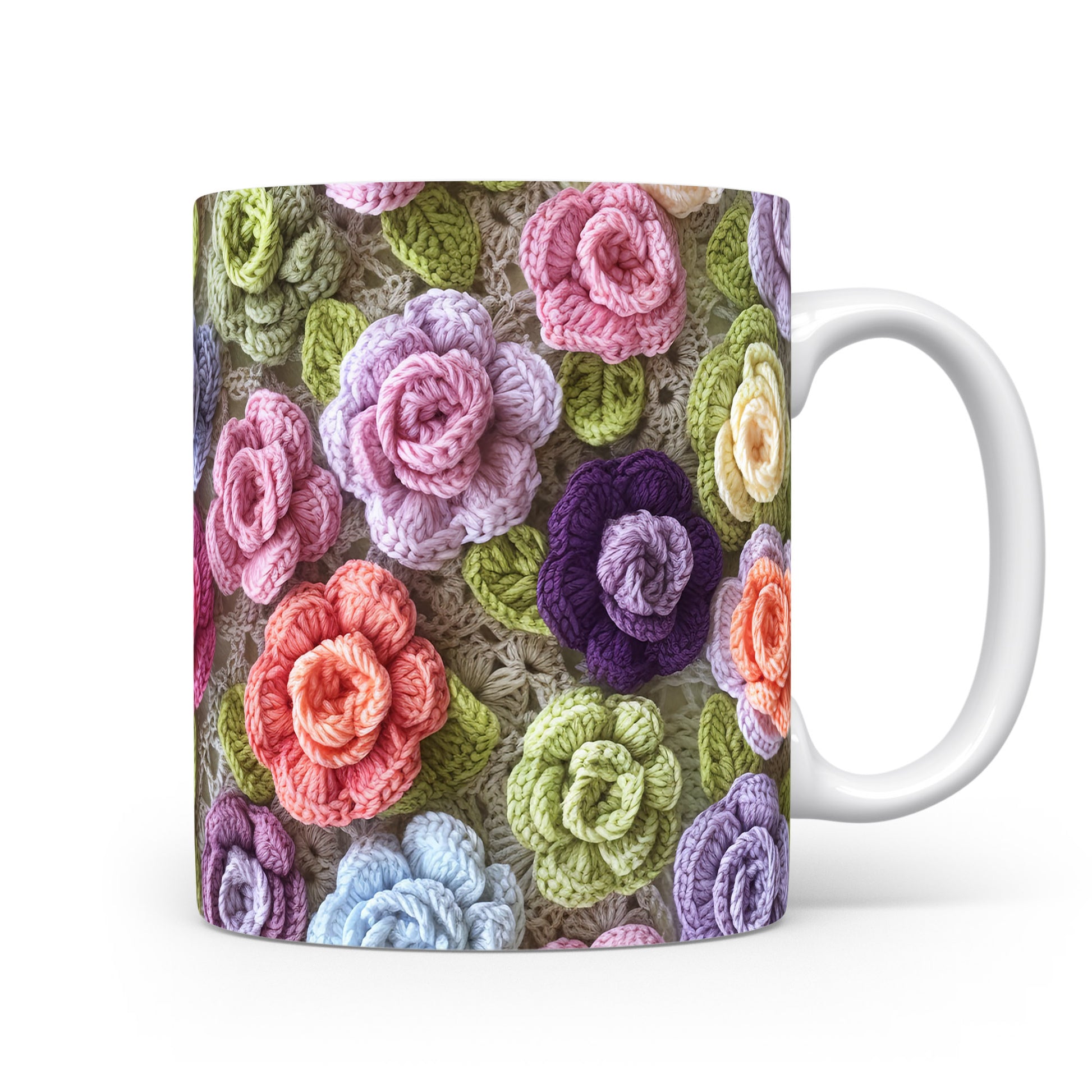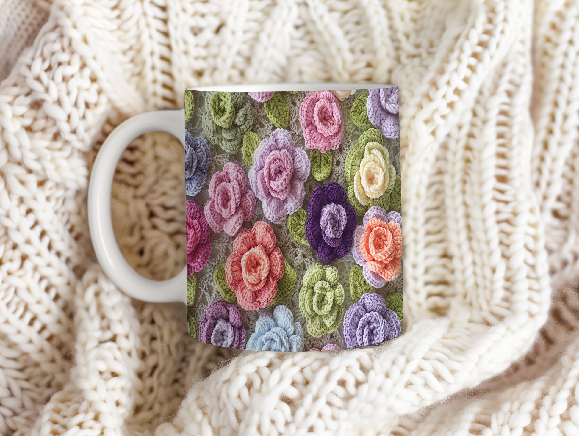 Hrnek s pletenými květinami