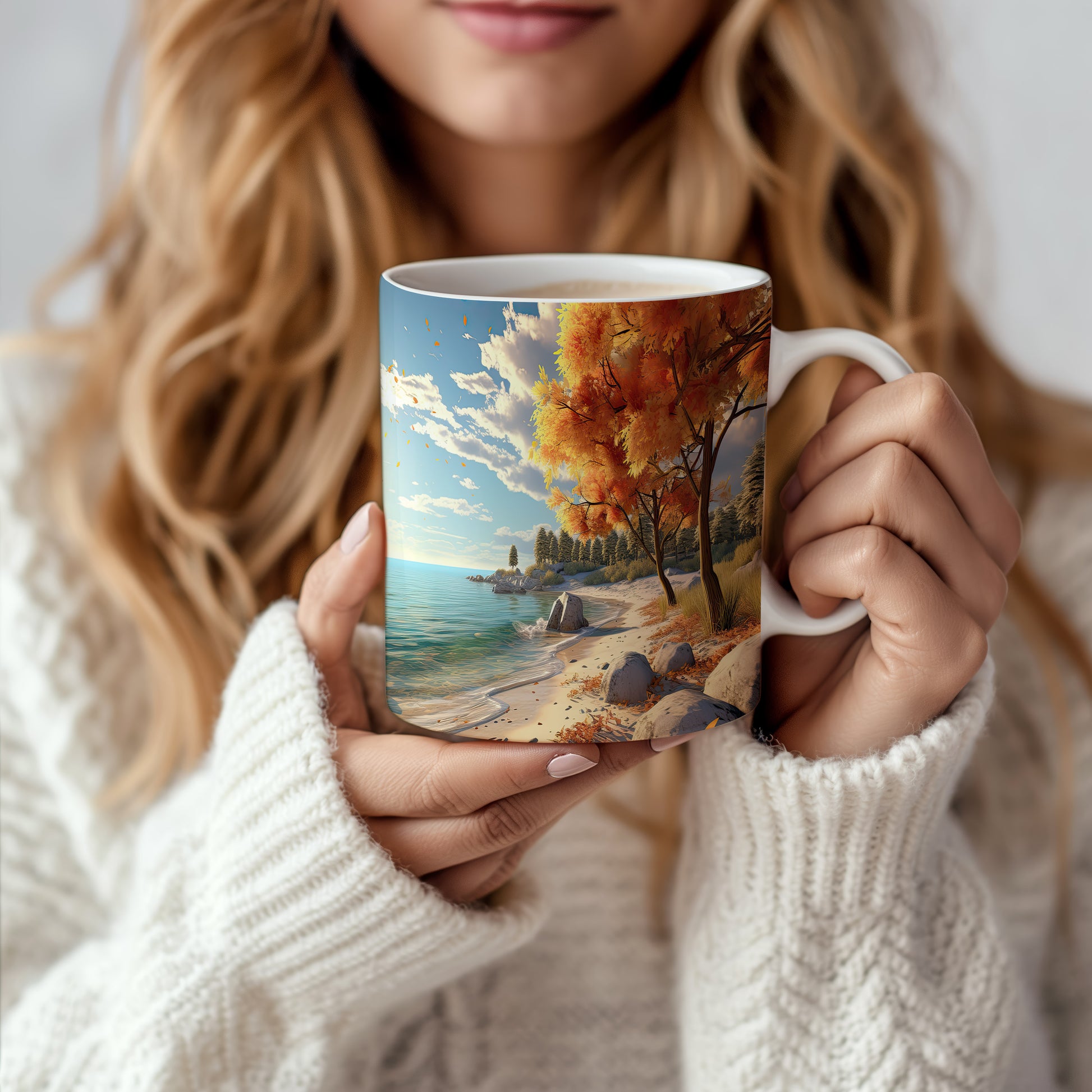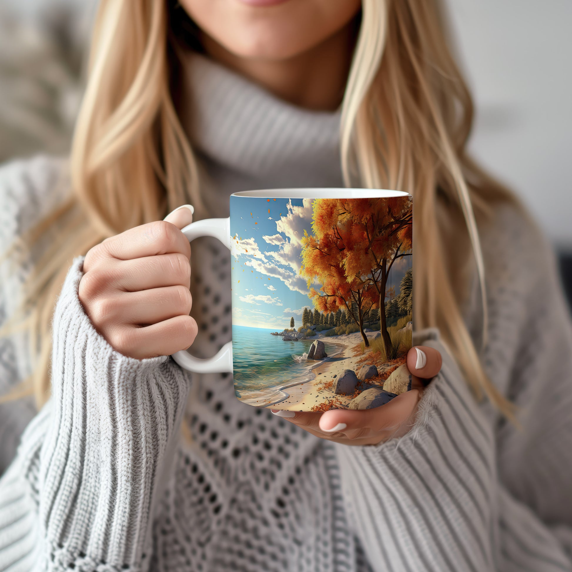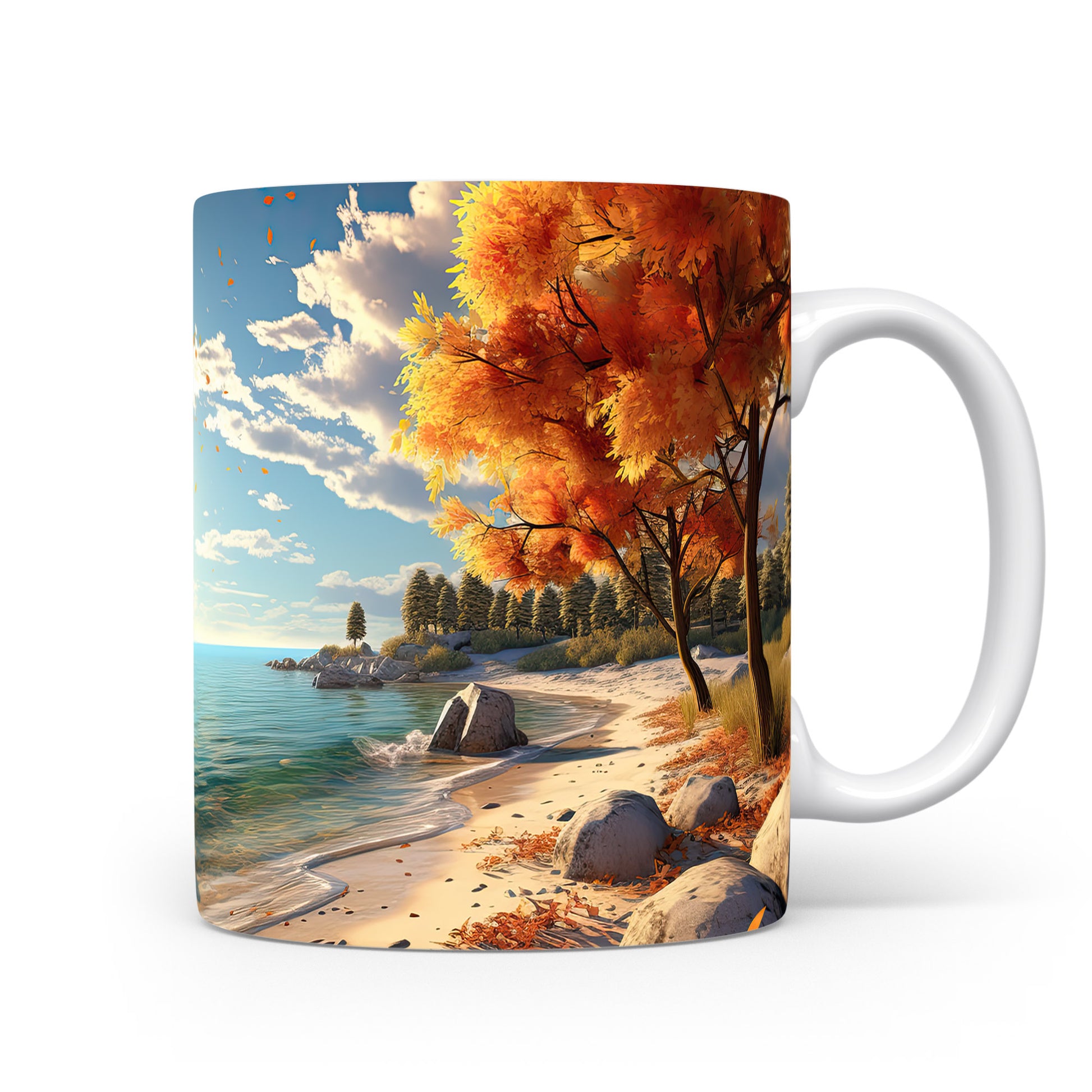 Tento hrnek s motivem podzimní krajiny a oranžovými stromy je ideální pro milovníky přírody. Skvěle se hodí jako dárek pro přátele nebo rodinu, kteří ocení krásu přírody. Materiál: keramika. Objem: 330 ml. Vhodné do myčky i mikrovlnky. Užívejte si kávu nebo čaj s pohledem na klidnou hladinu jezera.