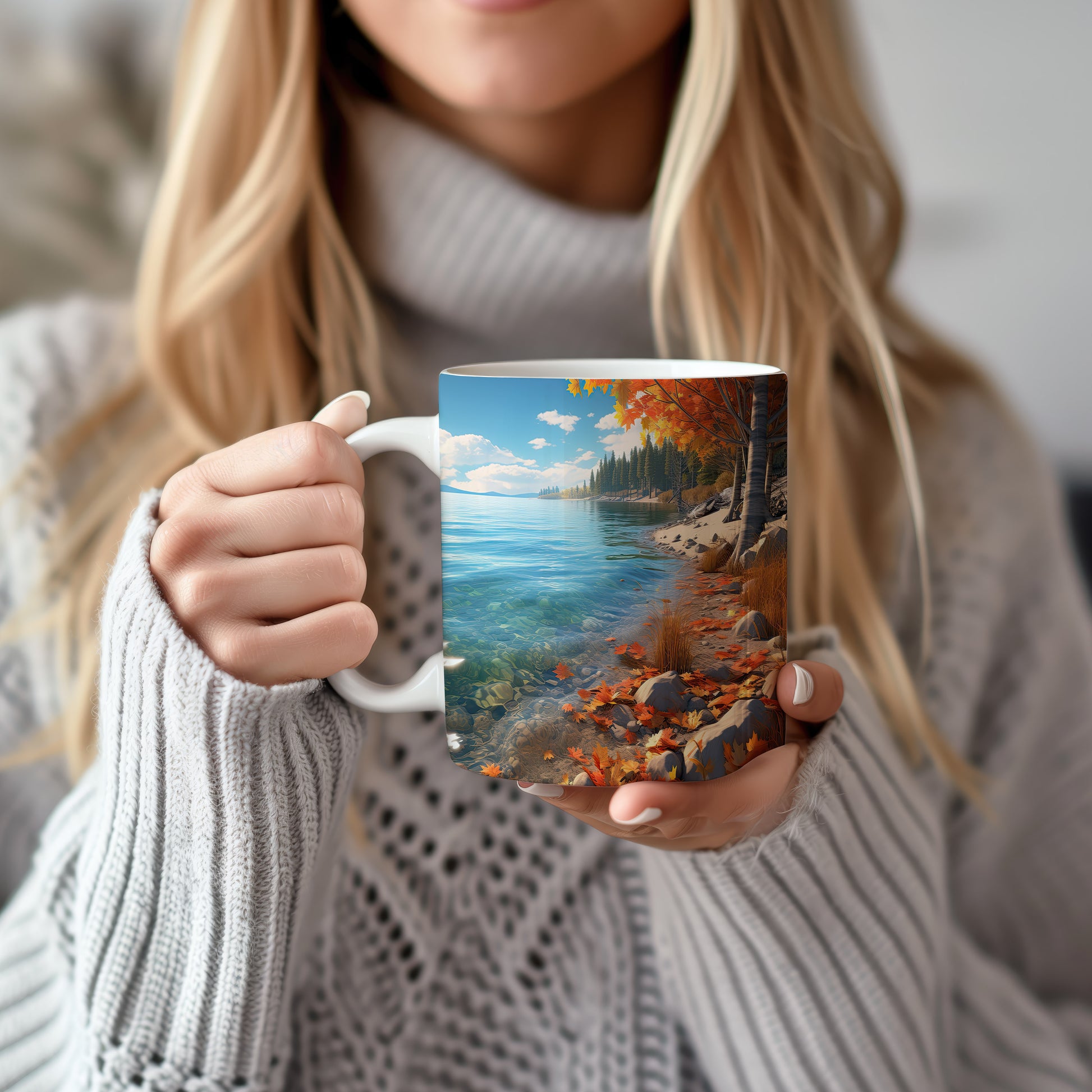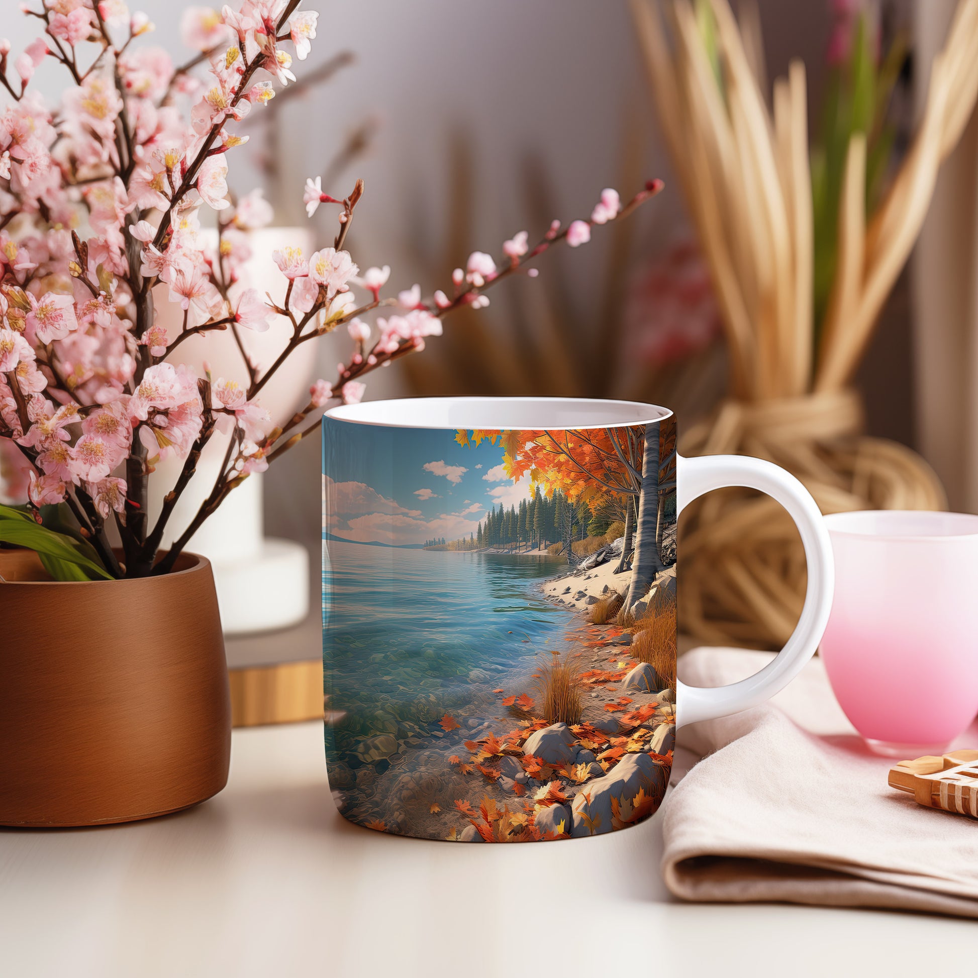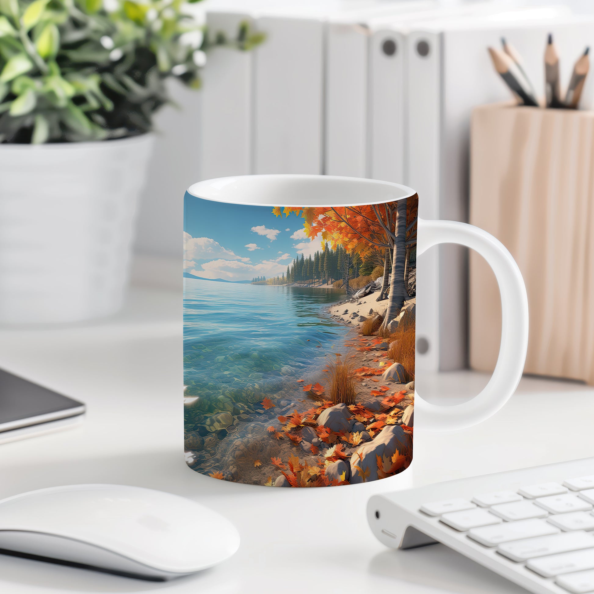 Hrnek s motivem podzimní krajiny u jezera přináší klidnou atmosféru a přírodní krásu. Je ideální pro milovníky přírody a skvělým dárkem pro ty, kteří si rádi vychutnávají kávu nebo čaj v příjemném prostředí. Materiál: keramika. Objem: 330 ml. Vhodné do myčky i mikrovlnky. Tento hrnek vám umožní si užít každodenní chvíle pohody a relaxace.