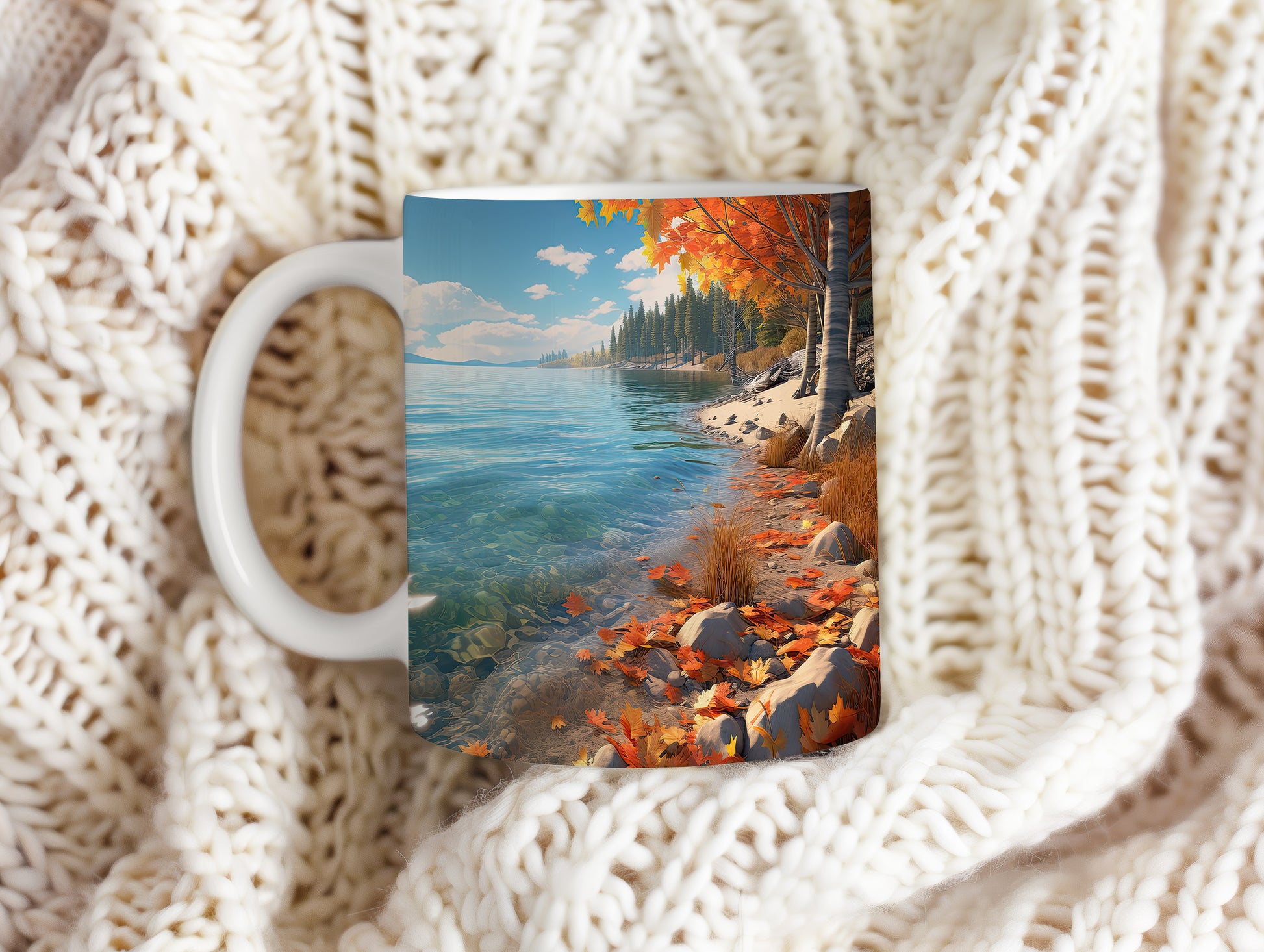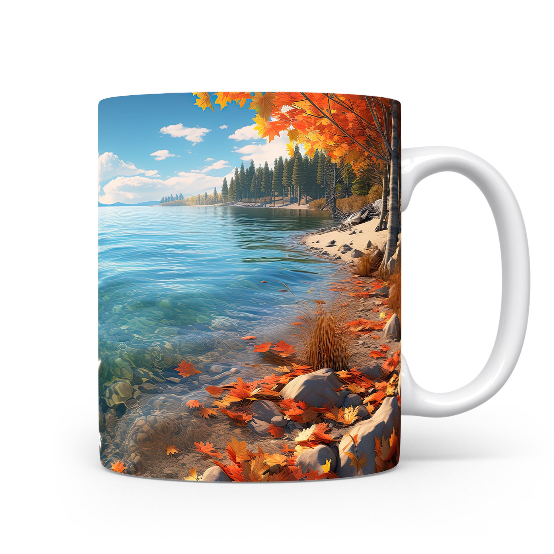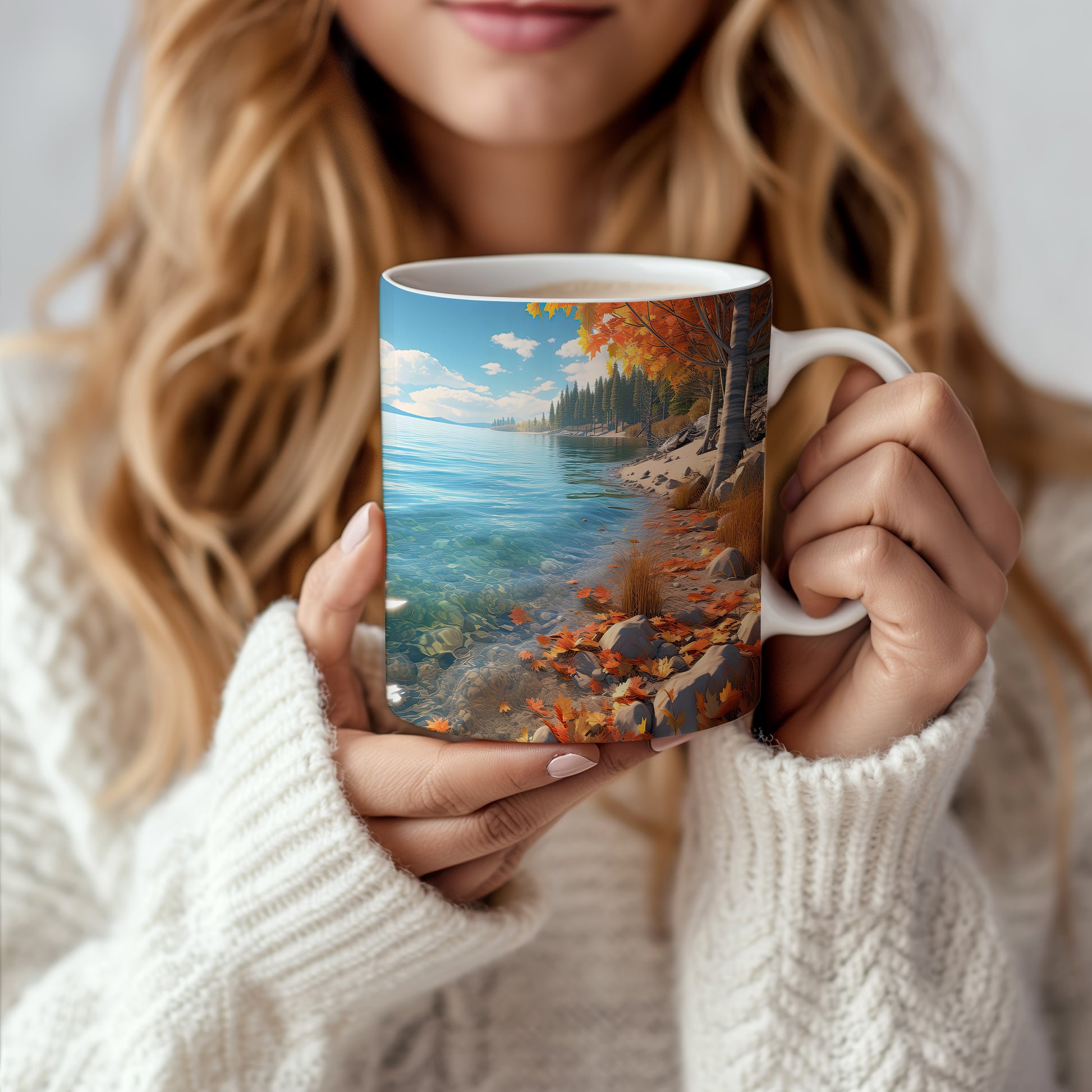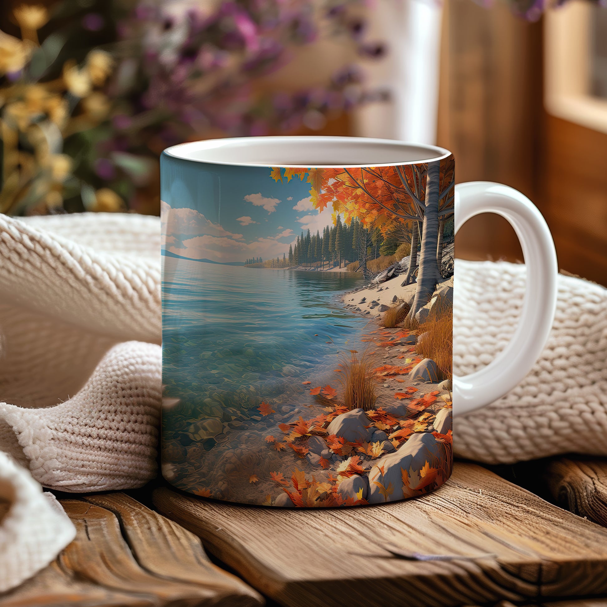 Hrnek s motivem podzimní krajiny u jezera přináší klidnou atmosféru a přírodní krásu. Je ideální pro milovníky přírody a skvělým dárkem pro ty, kteří si rádi vychutnávají kávu nebo čaj v příjemném prostředí. Materiál: keramika. Objem: 330 ml. Vhodné do myčky i mikrovlnky. Tento hrnek vám umožní si užít každodenní chvíle pohody a relaxace.