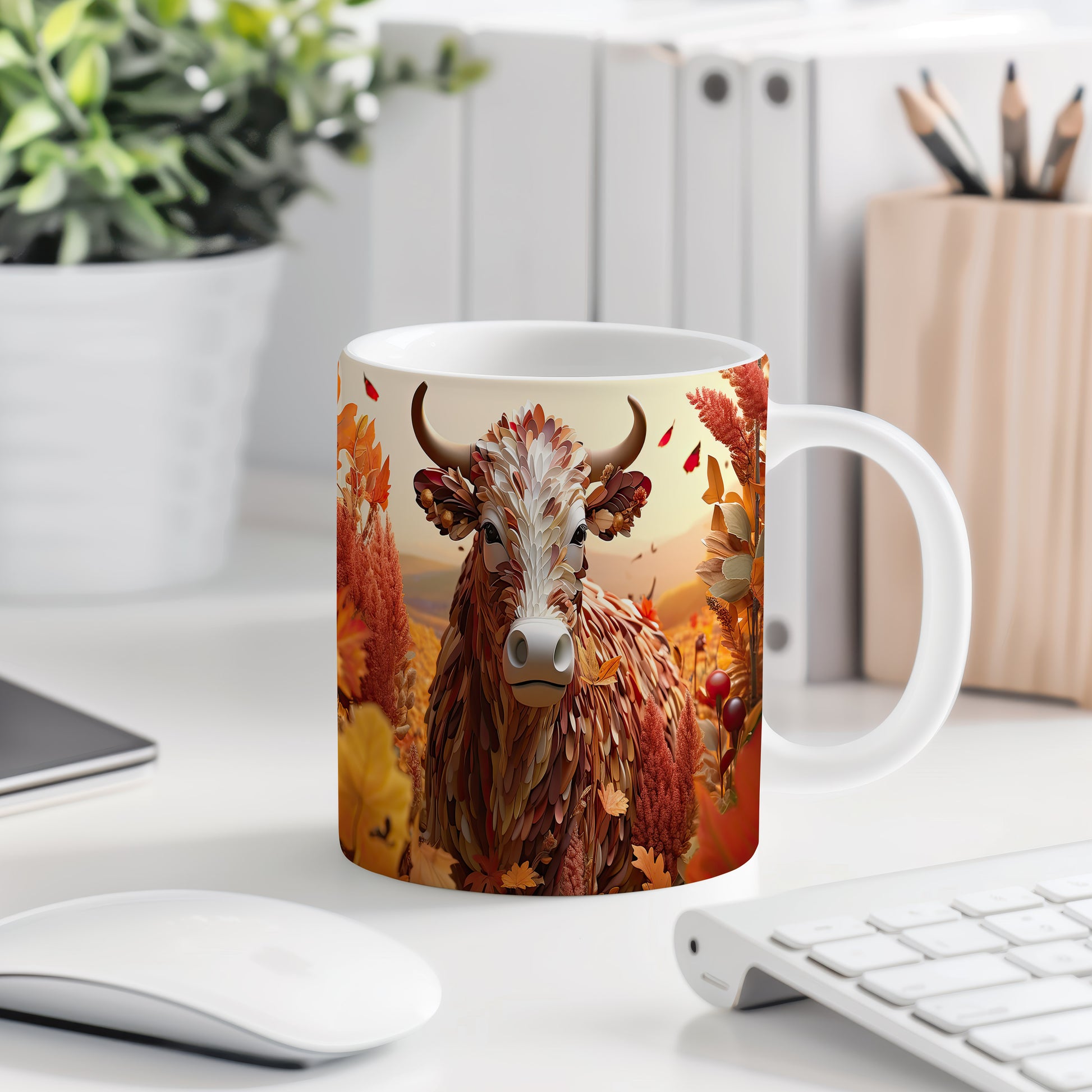 Hrnek s podzimním motivem a stylizovanou kravou přináší příjemnou atmosféru. Je ideální pro milovníky přírody a zvířat, skvělý tip na dárek pro přátele nebo rodinu. Materiál: keramika. Objem: 330 ml. Vhodné do myčky i mikrovlnky. Tento hrnek vám zpříjemní každé ráno a dodá šmrnc vašim oblíbeným nápojům.