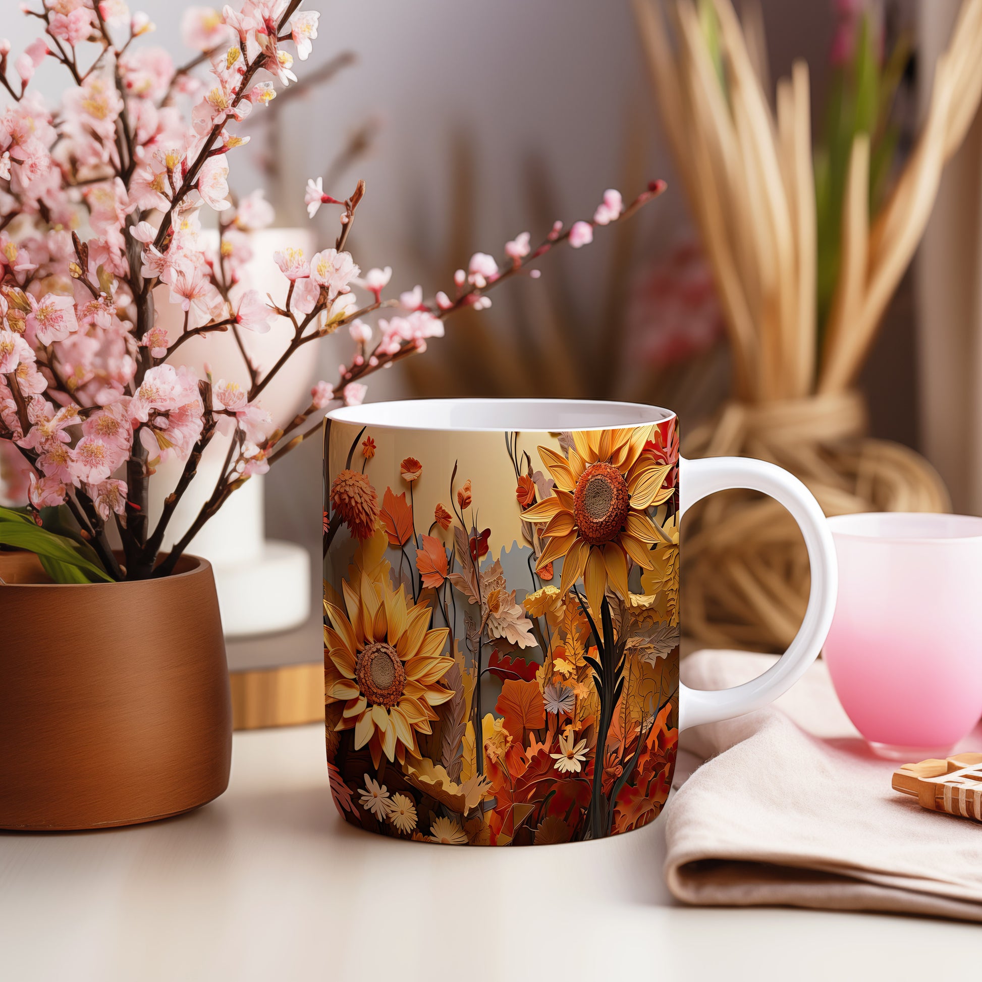 Hrnek s podzimními květinami