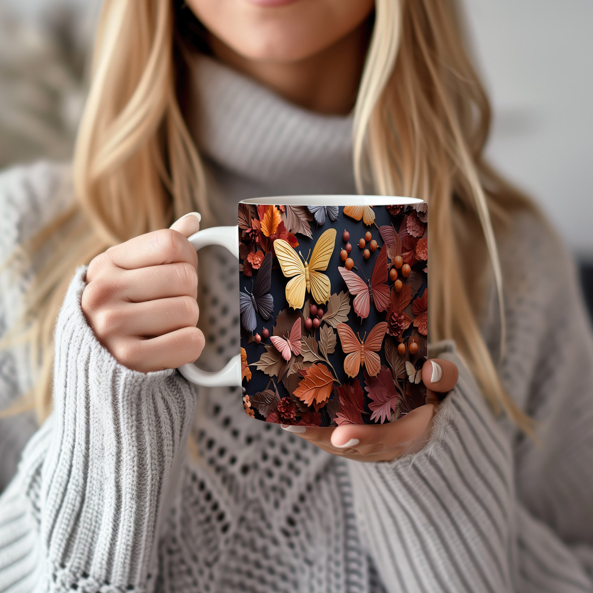 Hrnek s motivem podzimních motýlů a barevných listů je skvělou volbou pro milovníky přírody a podzimního období. Tento hrnek potěší jako dárek pro přátele či rodinu, kteří si rádi vychutnávají teplé nápoje. Materiál: keramika. Objem: 330 ml. Vhodné do myčky i mikrovlnky. Díky svému designu přináší do každodenního pití radost a útulnost.