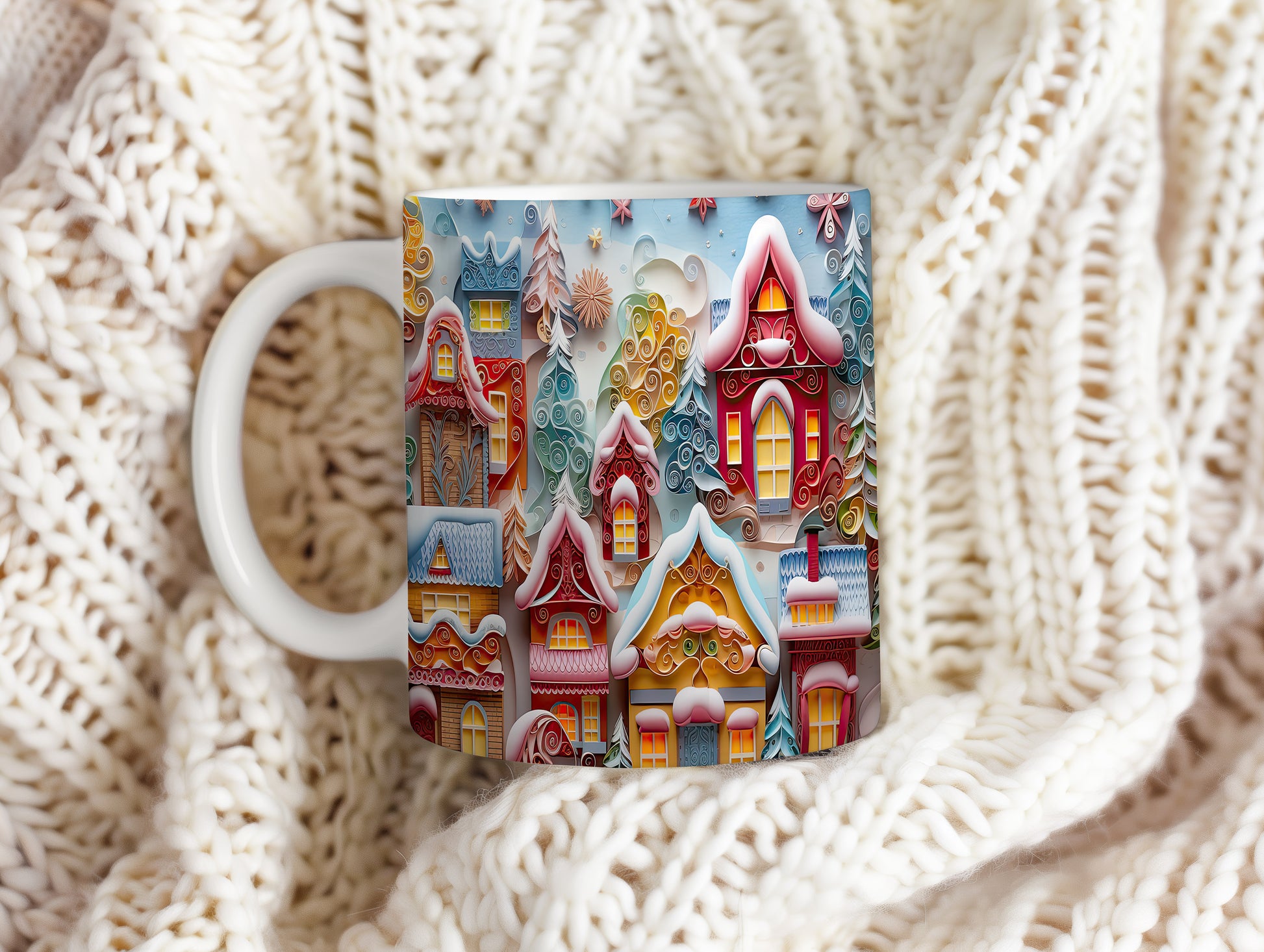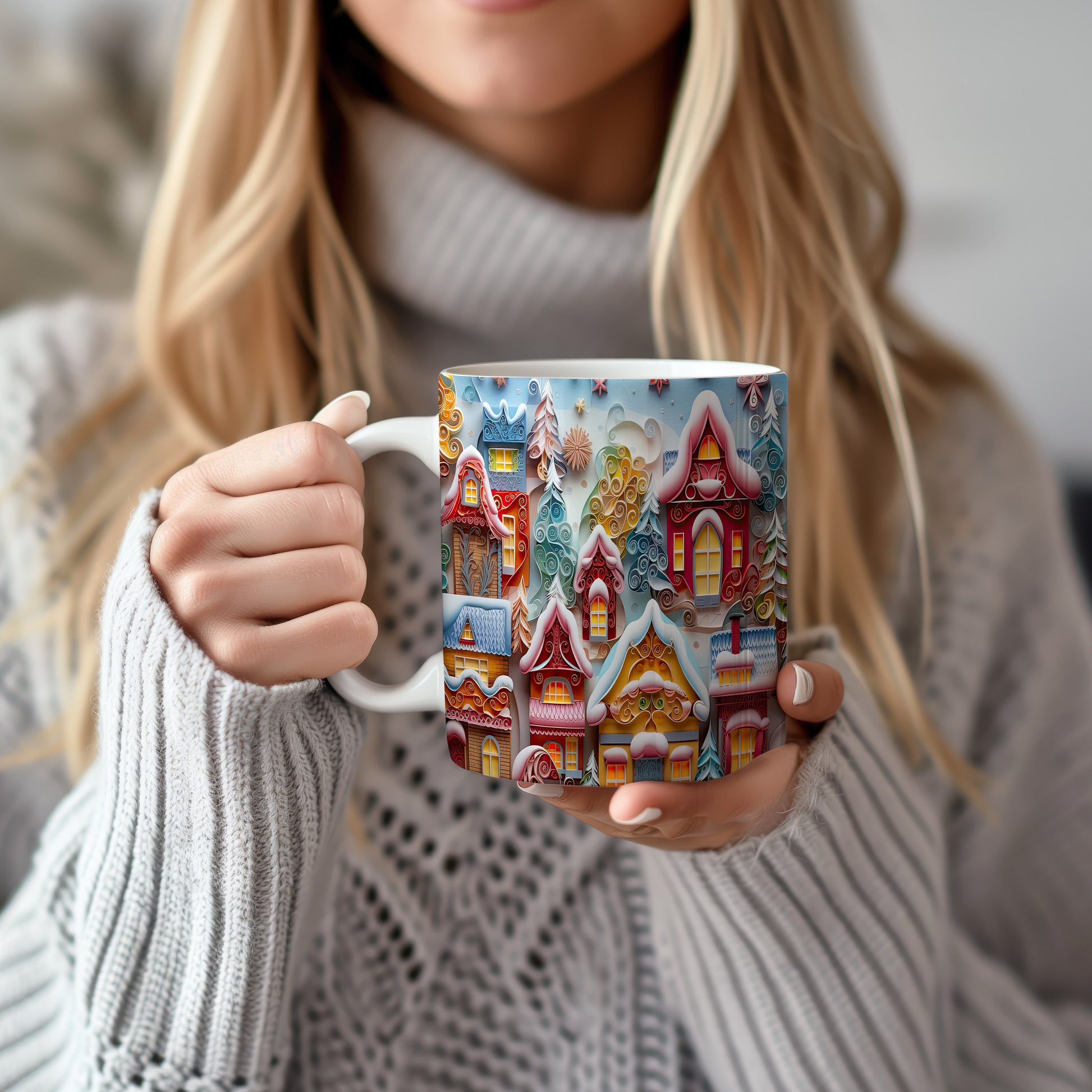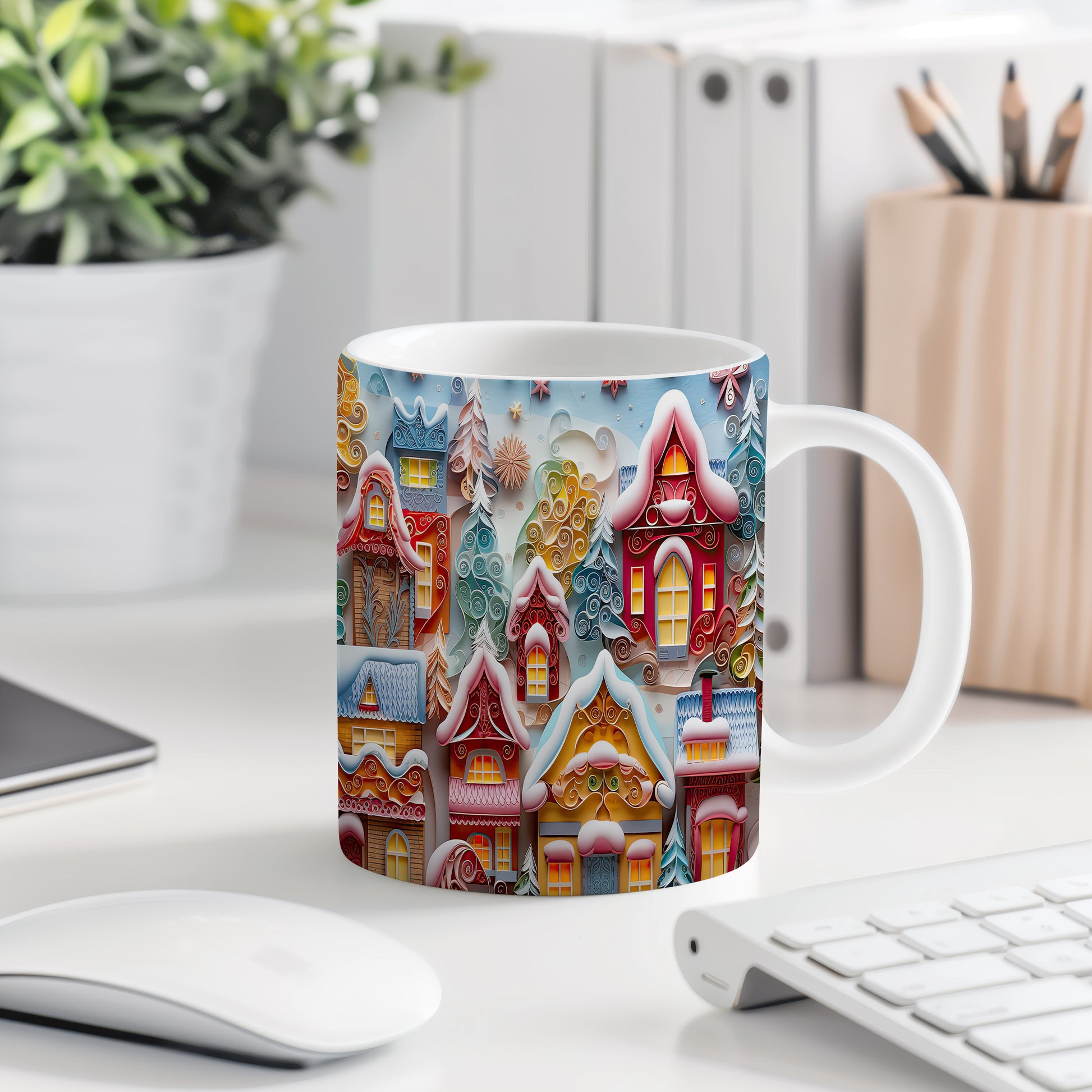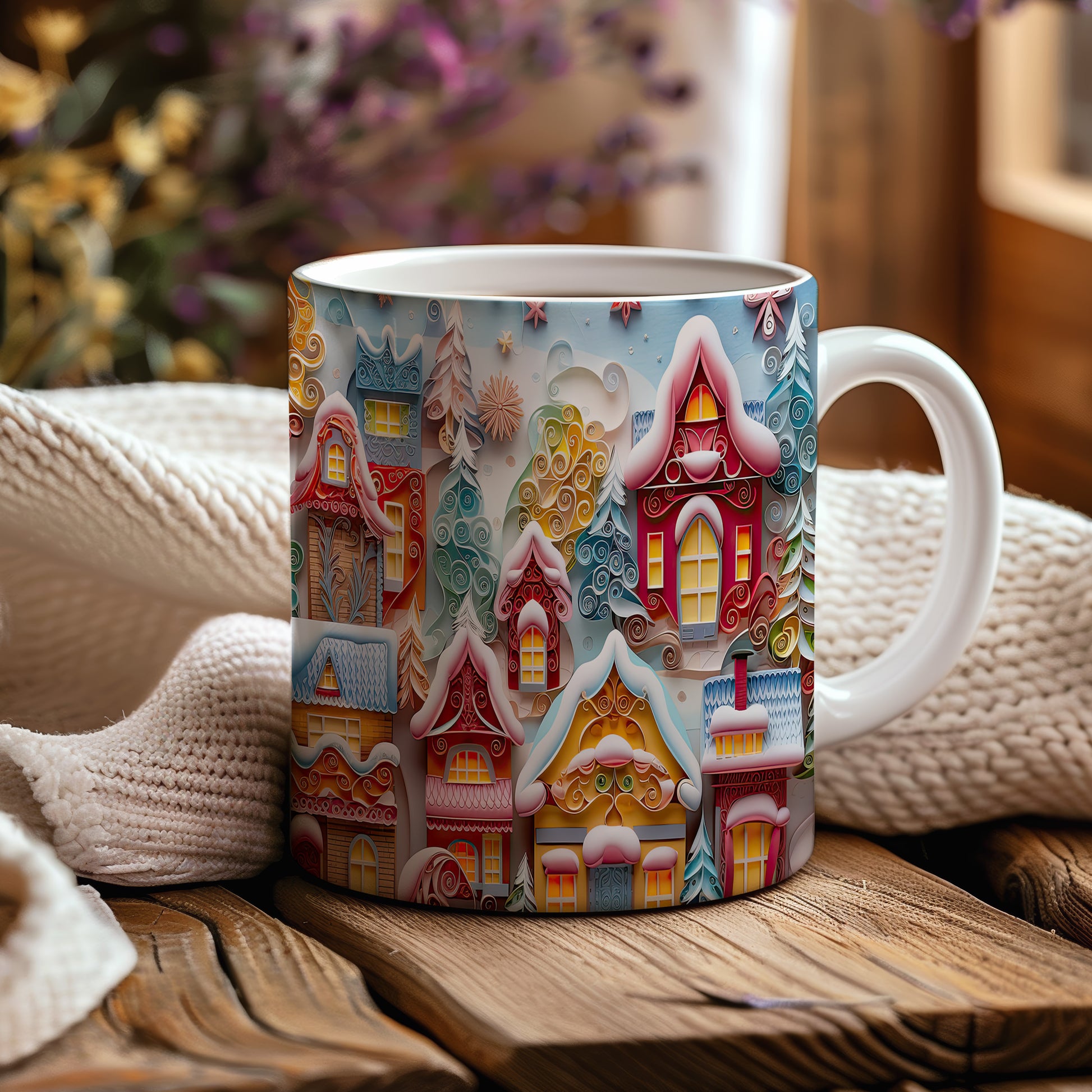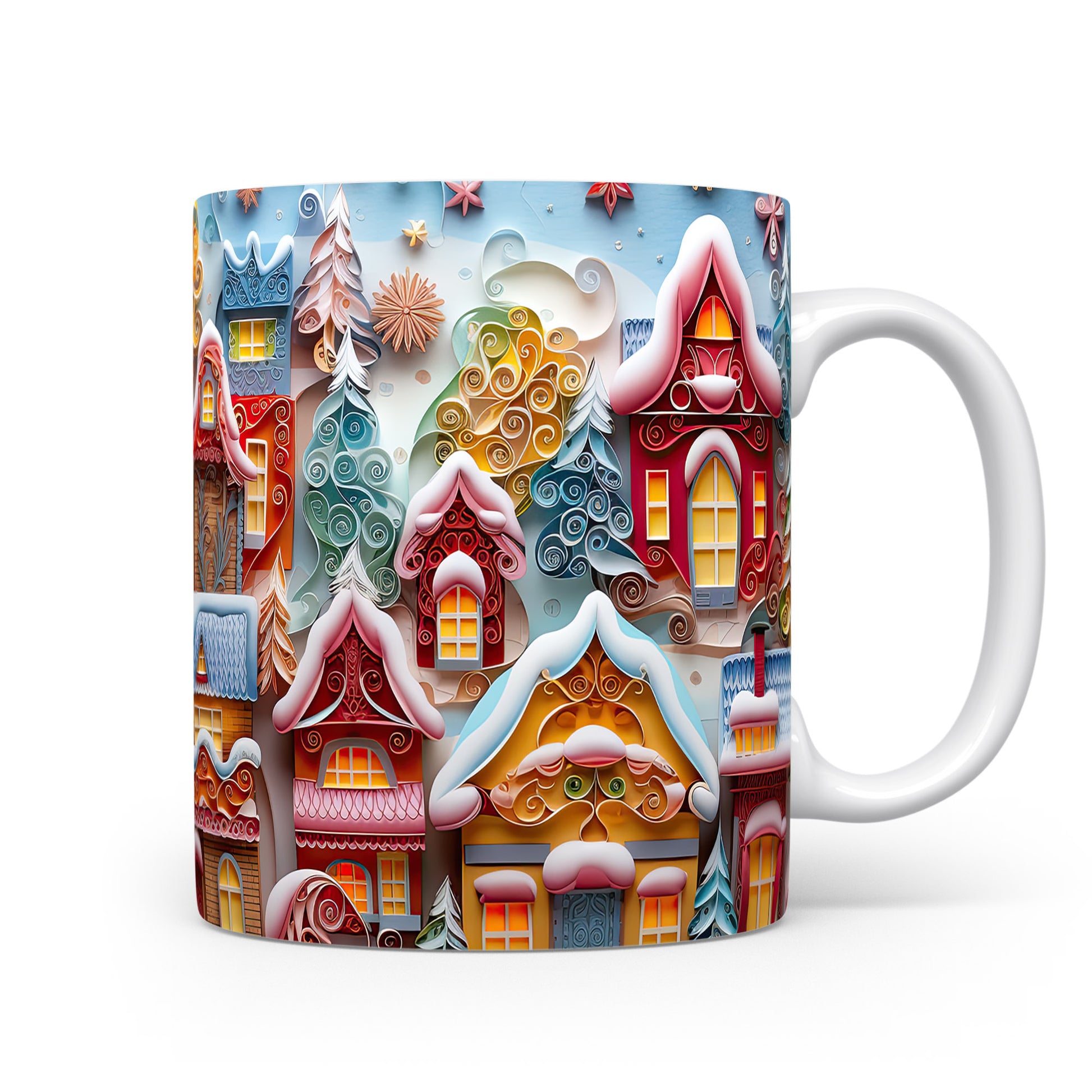 Tento keramický hrnek zobrazuje pohádkové domky pokryté sněhem, evokující zimní atmosféru. Je ideální pro milovníky pohádek a zimních večerů, skvělý tip na dárek pro přátele nebo rodinu. Materiál: keramika. Objem: 330 ml. Vhodné do myčky i mikrovlnky. Užívejte si teplé nápoje s tímto hrnkem a přeneste se do kouzelného světa.