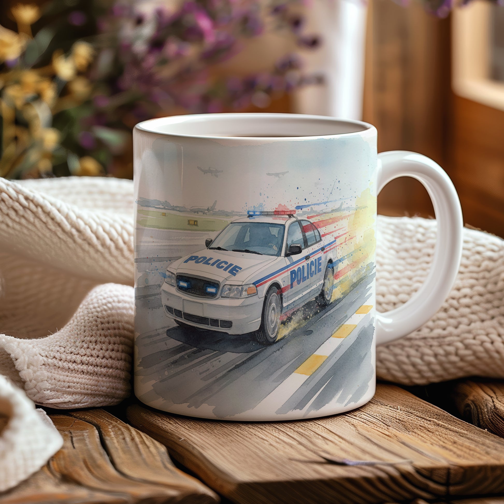 Zažijte dynamiku a rychlost s hrnkem, na kterém je akvarelový motiv policejního auta na vzletové dráze. Perfektní pro milovníky adrenalinu. Hrnek 330 ml – vhodný do myčky i mikrovlnky.