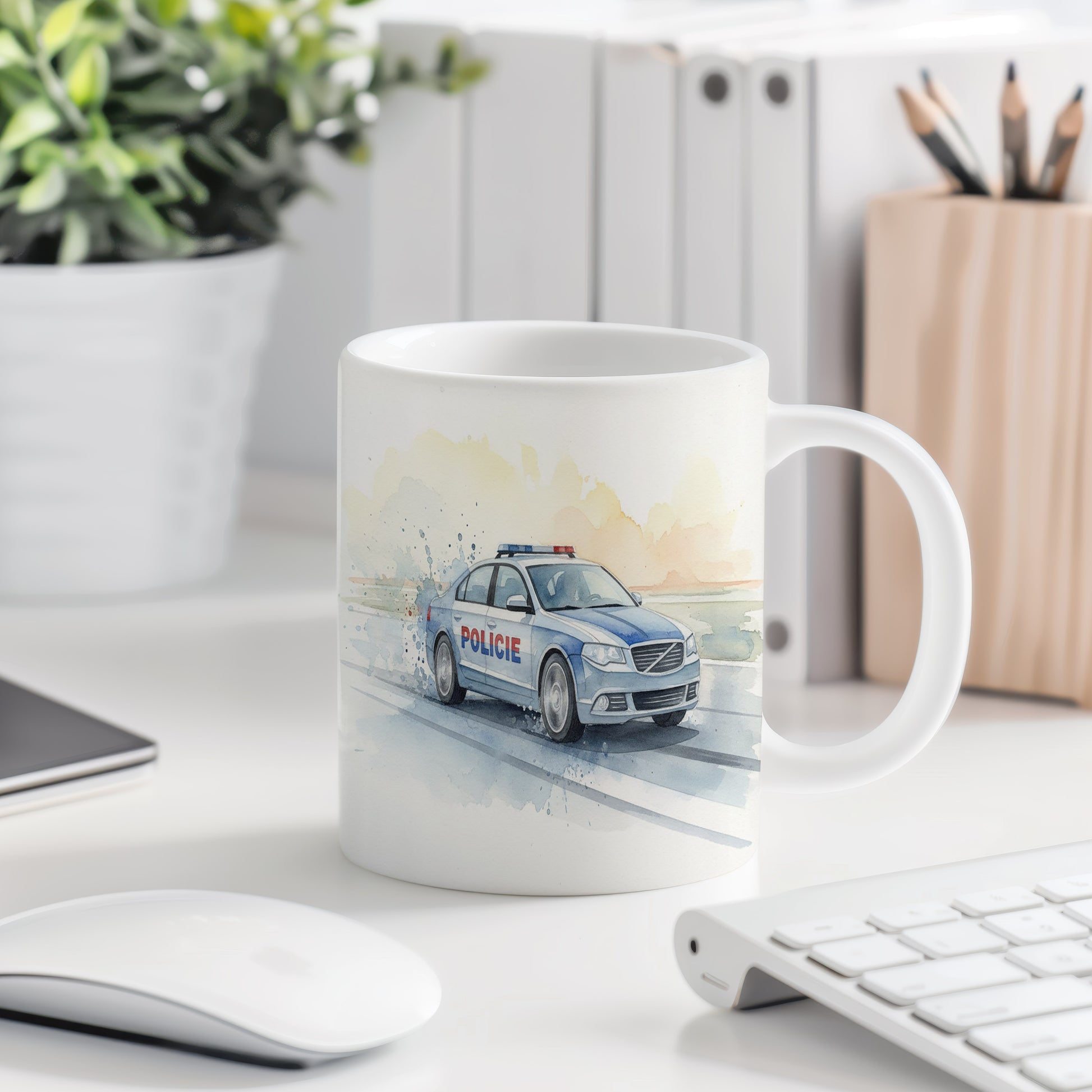 Užijte si rychlost a akci s tímto hrnkem, na kterém je zachycen policejní vůz v akvarelovém stylu. Ideální pro milovníky adrenalinu. Hrnek 330 ml – vhodný do myčky i mikrovlnky.